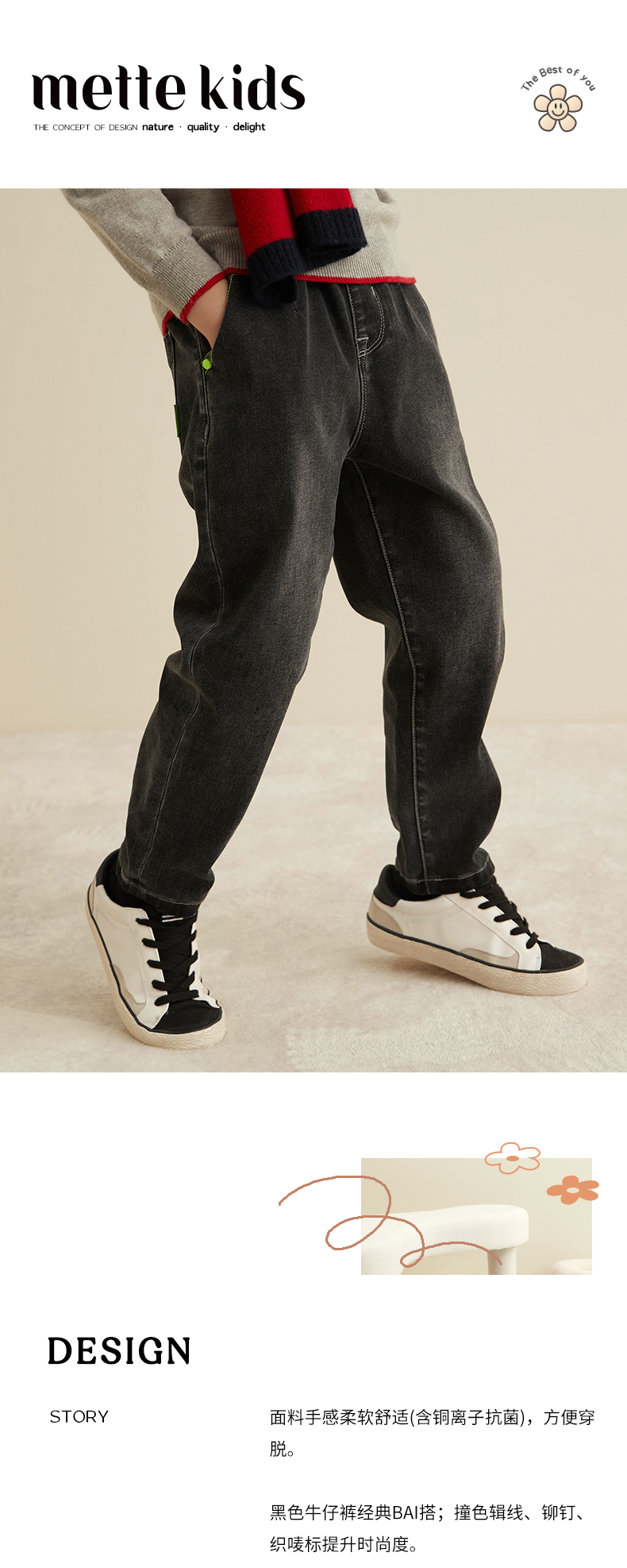 【童装黑色牛仔裤】21年秋冬男童黑色牛仔裤时尚小直筒休闲裤子