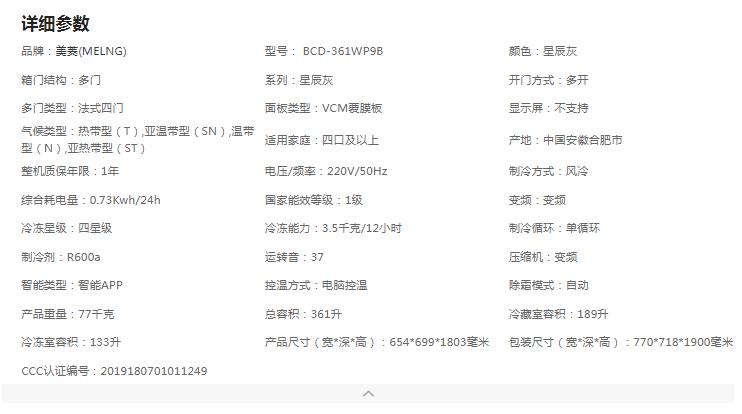 美菱 冰箱 BCD-361WP9B 星辰灰 法式多门 风冷