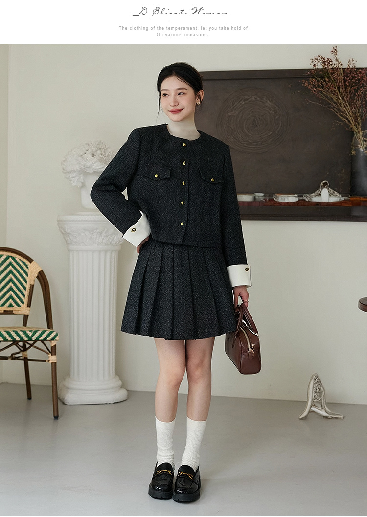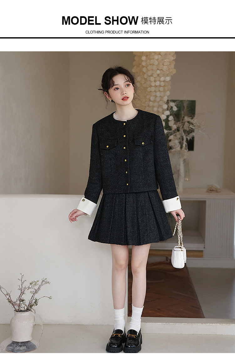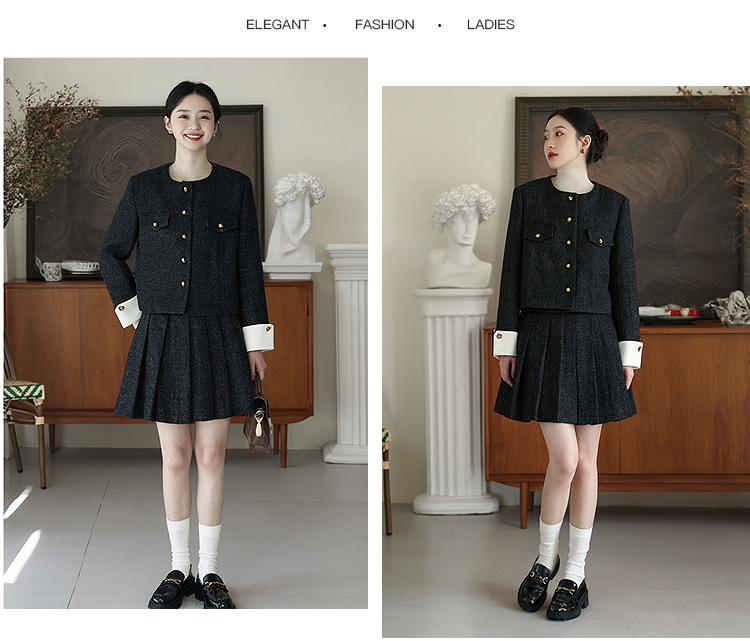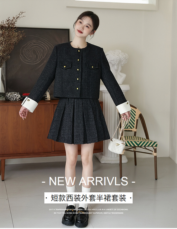 奢姿大码女装小香风套装秋冬胖妹妹时尚通勤短款西装外套半裙套装9954953885