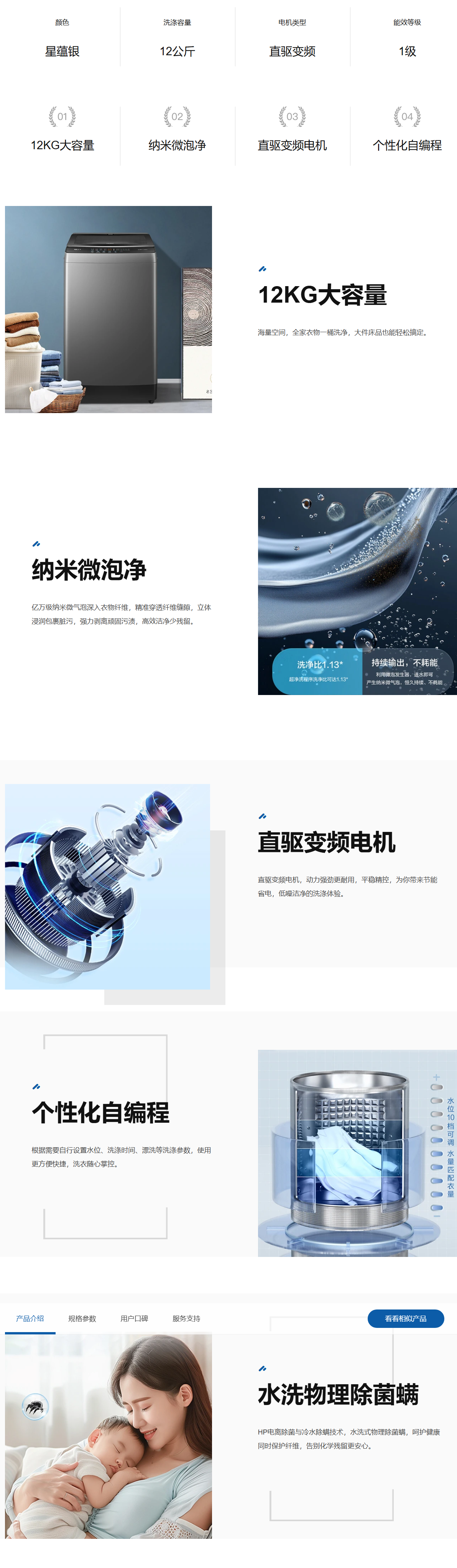 海尔 洗衣机 XQB120-BZ628 12KG 变频 波轮 一级能效 星蕴银 直驱变频技术