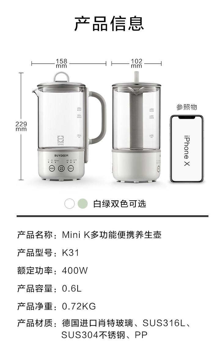 北鼎mini养生壶办公室多功能小型煮茶器迷你便携烧水壶花茶壶K31F