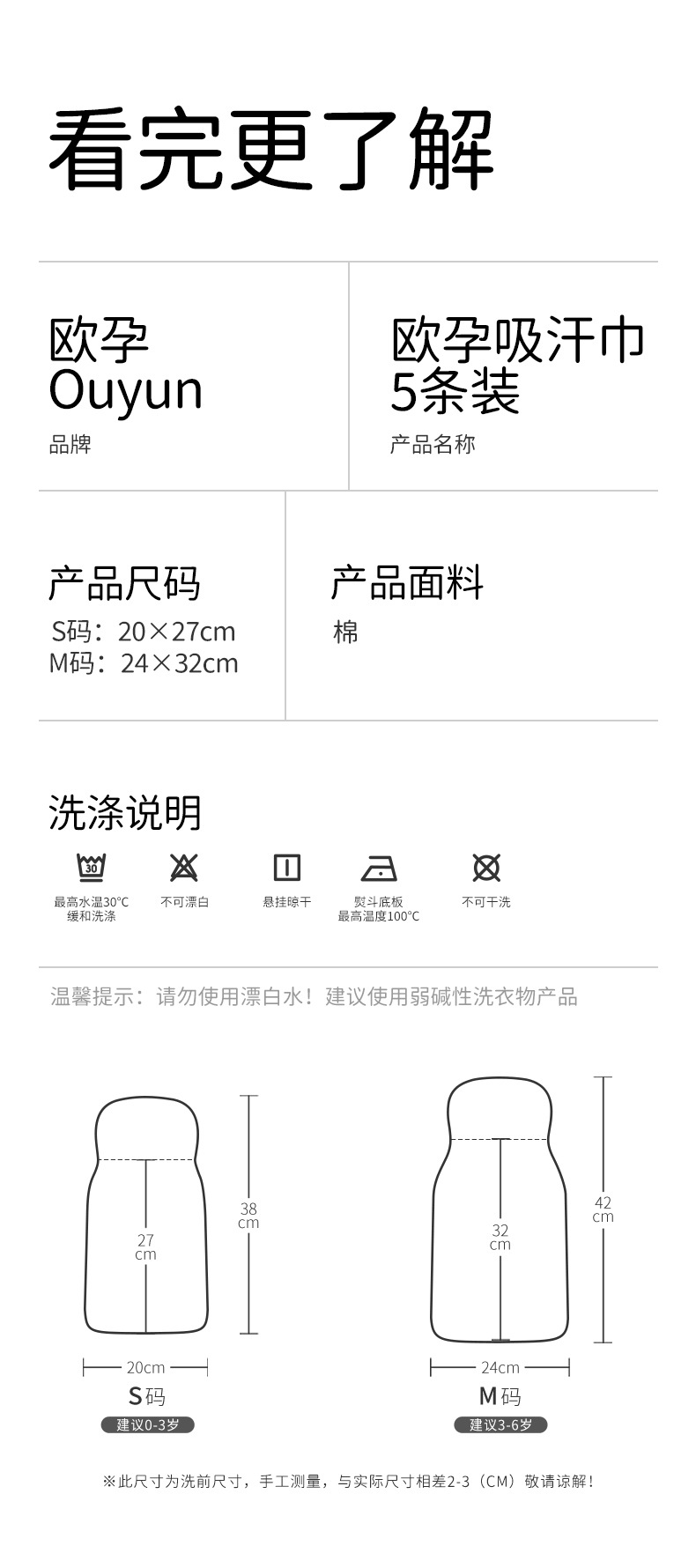 欧孕宝宝吸汗巾纯棉隔汗巾男童女童婴儿垫背儿童全棉止汗巾幼儿园