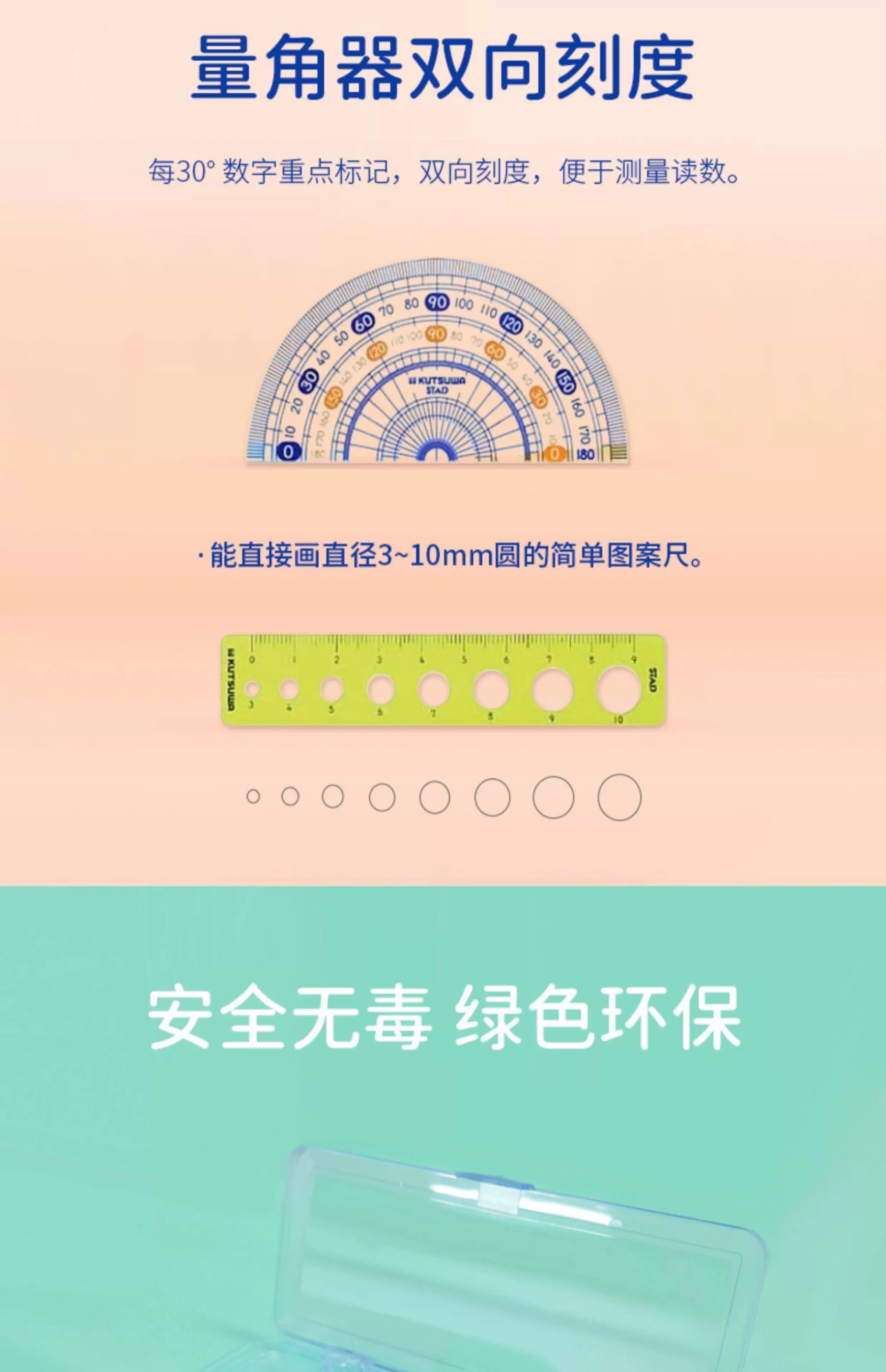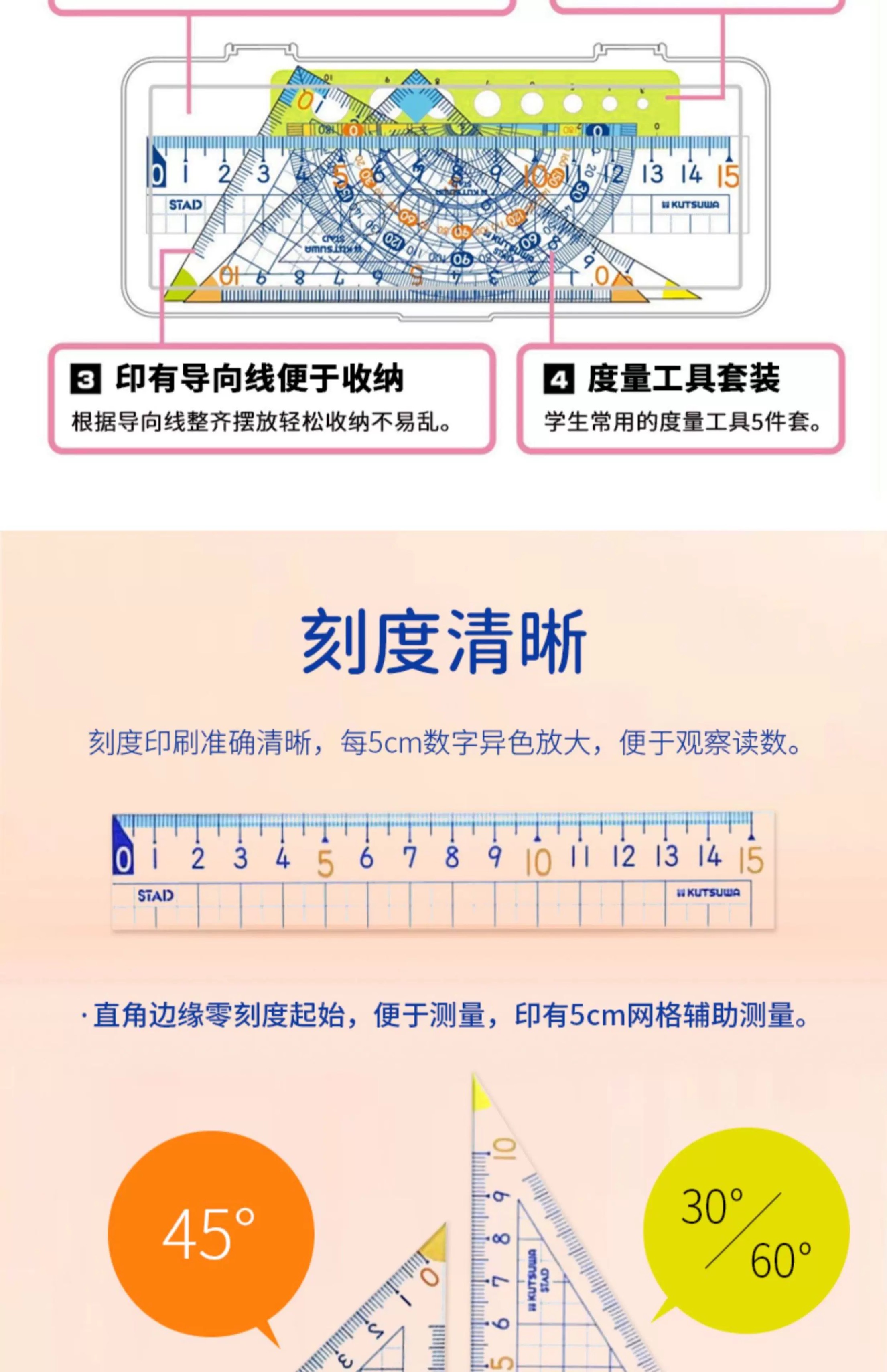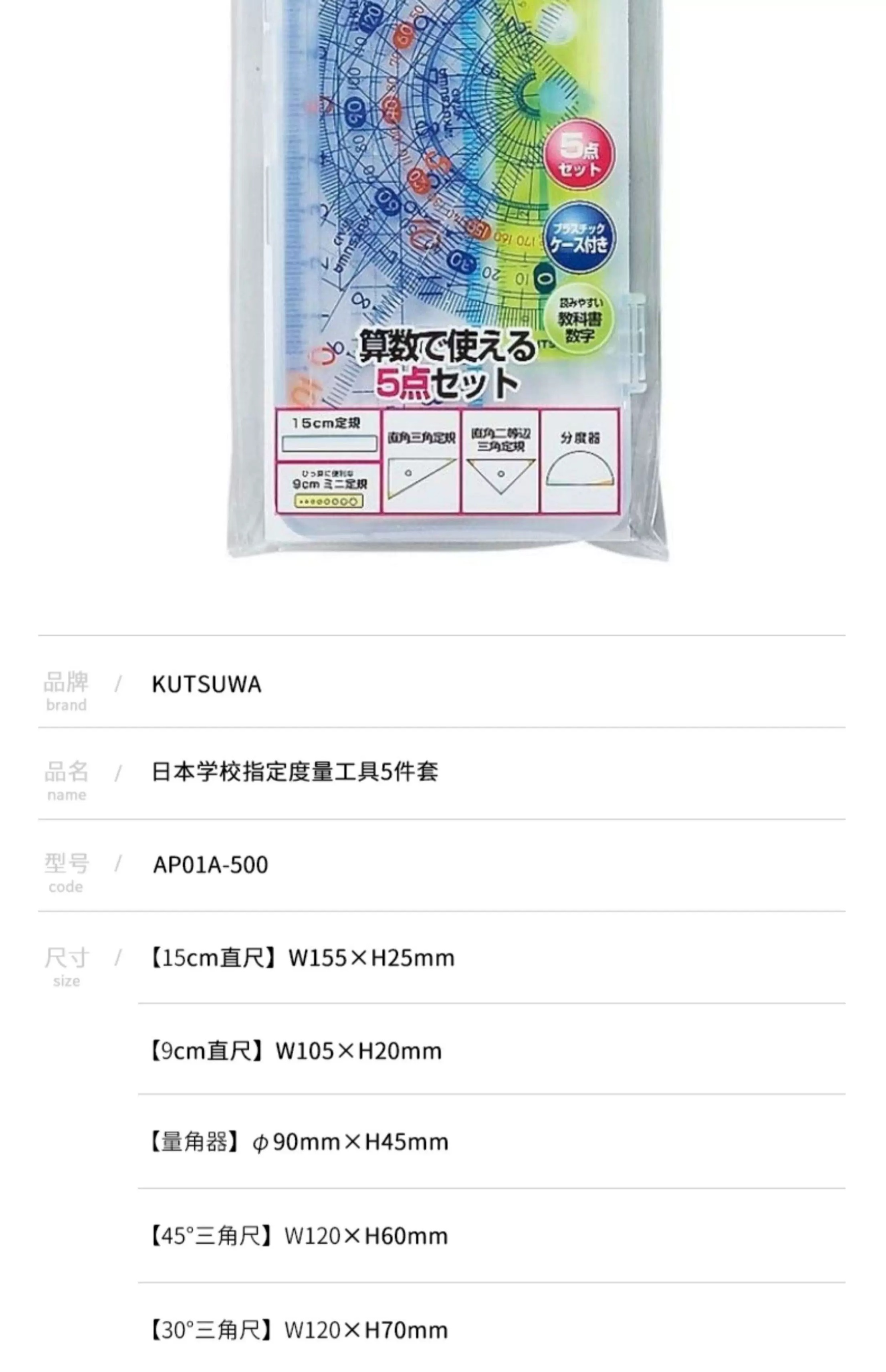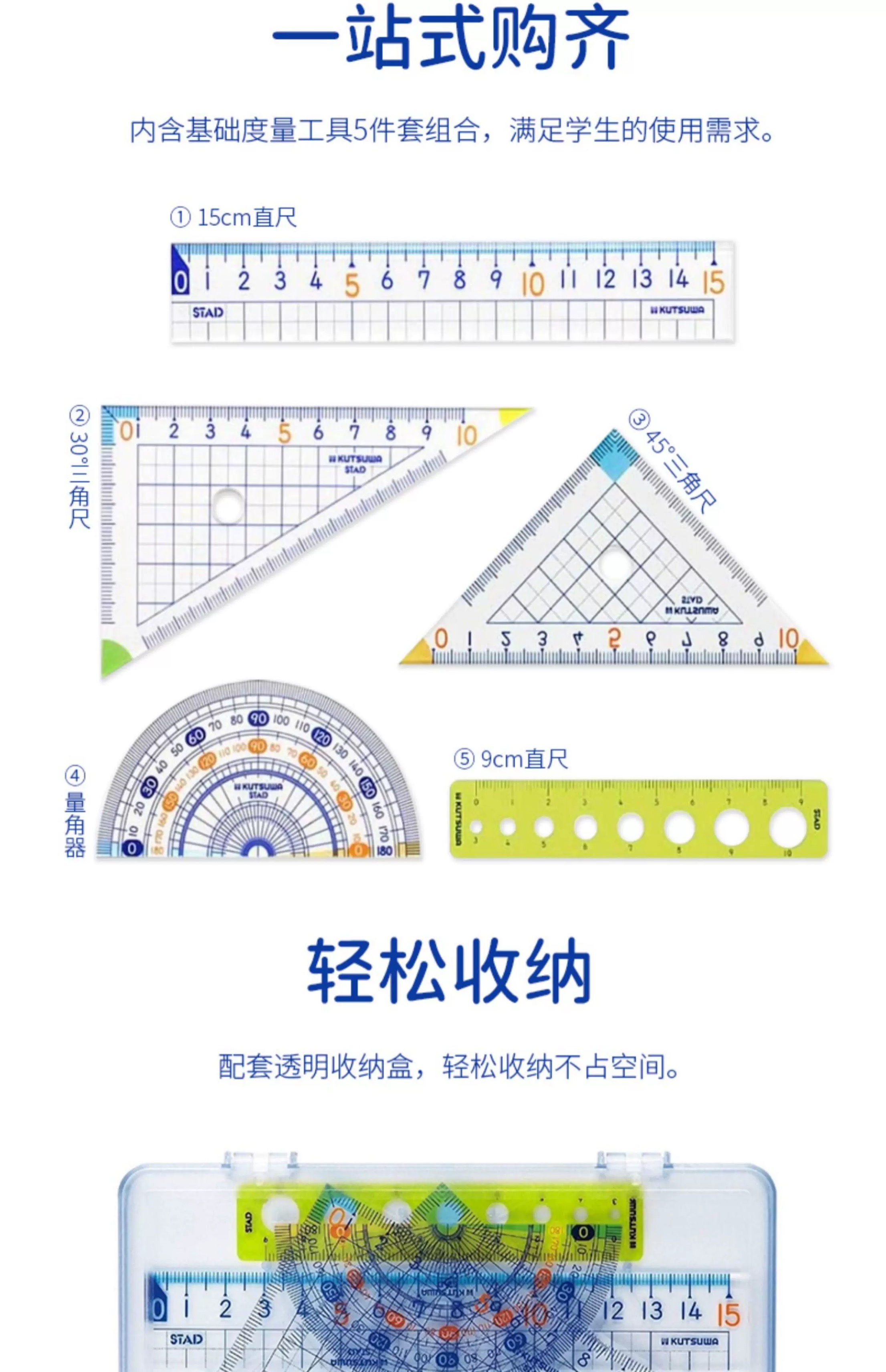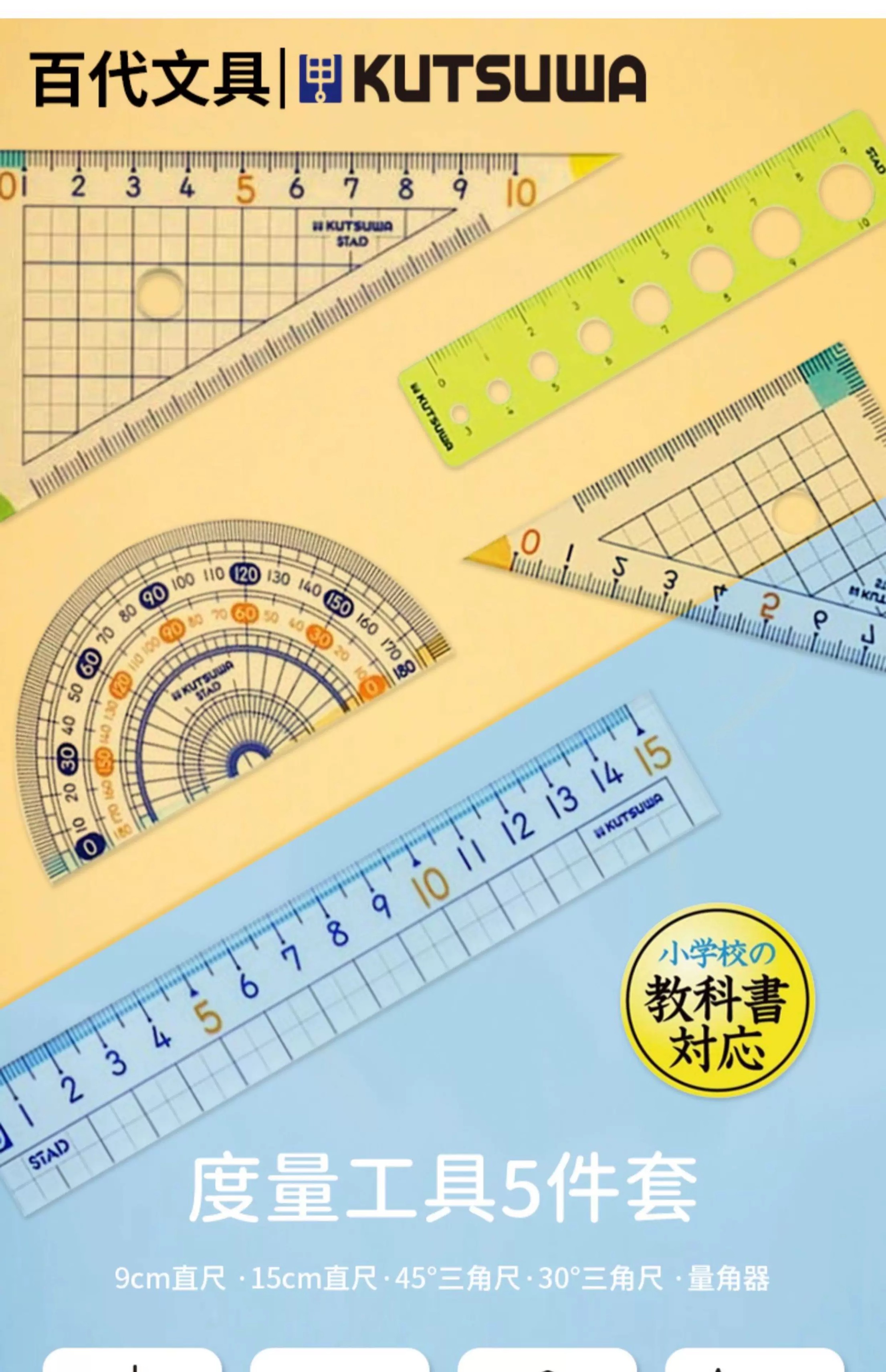 日本KUTSUWA 教科书对应大数字易读0刻度起始透明直尺