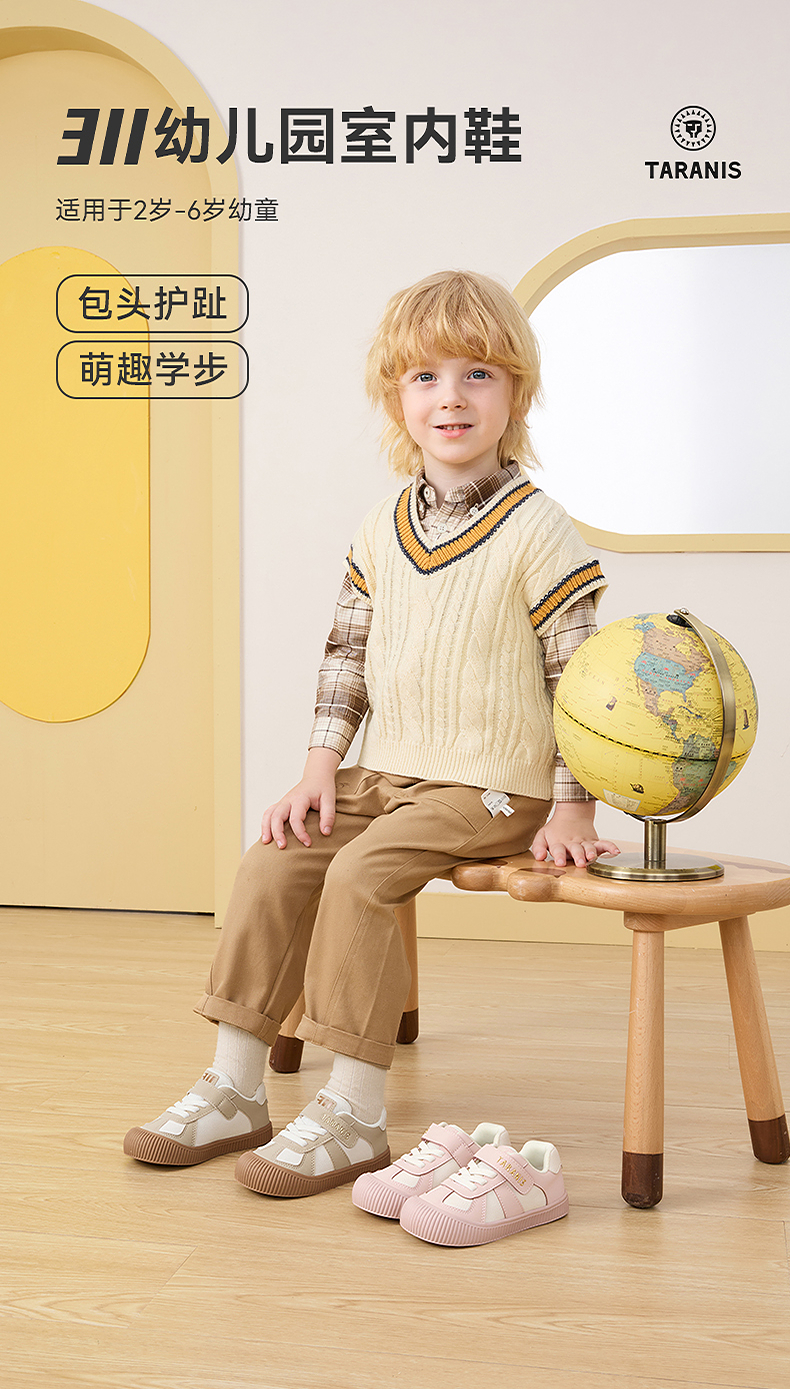 泰兰尼斯童鞋2025秋季新款男童包头软底幼儿园室内鞋女童入园板鞋 T02X5C6884