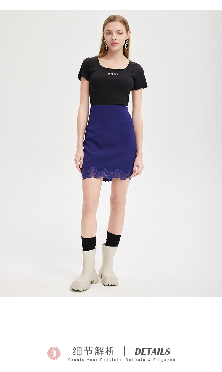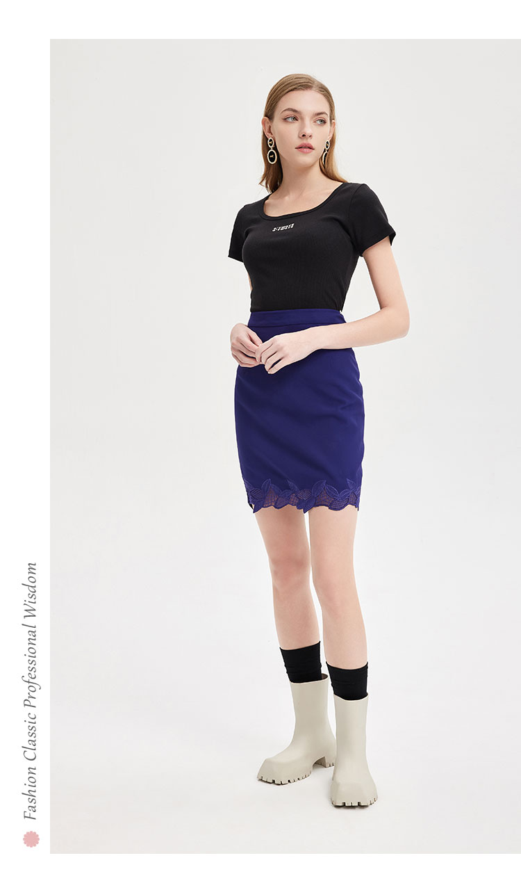 PE5A1瑟俪 新款女修身百搭优雅气质春装绣花弹力半身裙