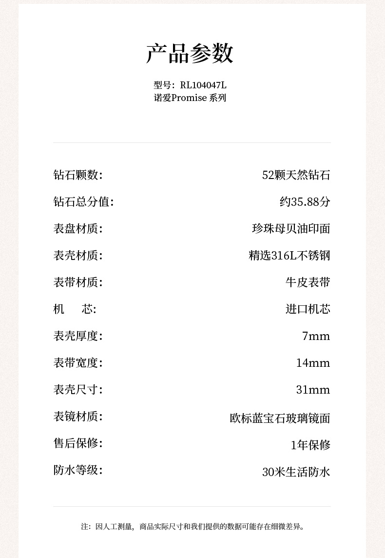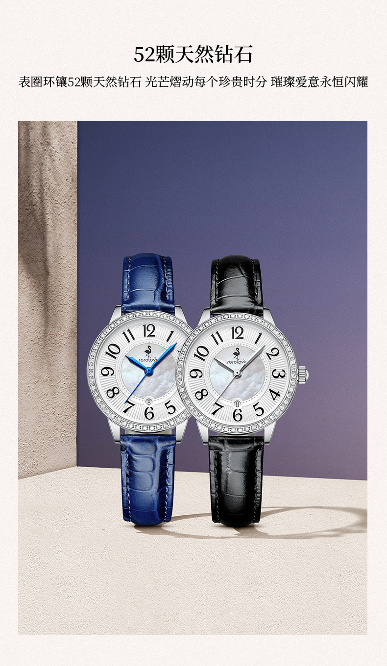 【ROROLOVE】宣爱Announce系列 天然钻石手表女轻奢小众女表正品女腕表(52颗钻石)