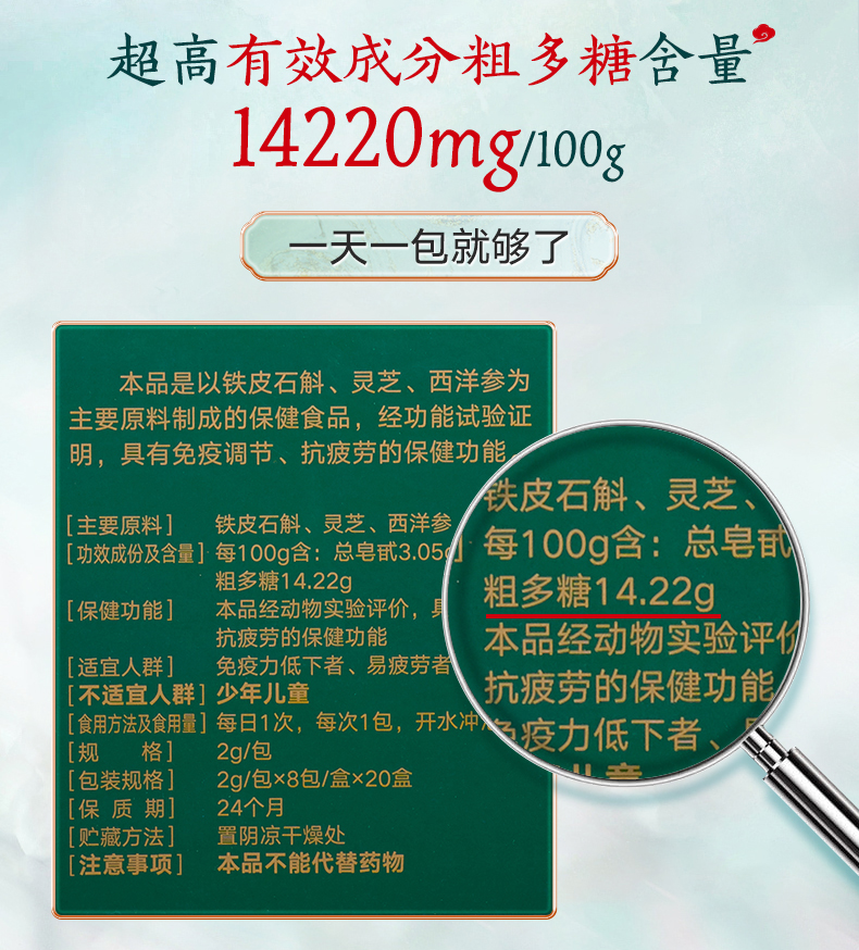 寿仙谷 铁皮枫斗颗粒礼盒8包*20盒无糖型套餐
