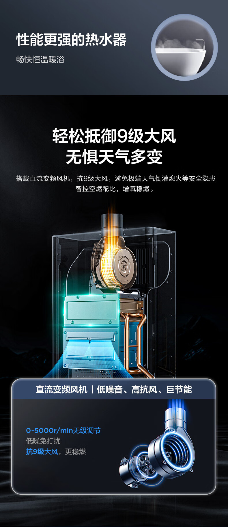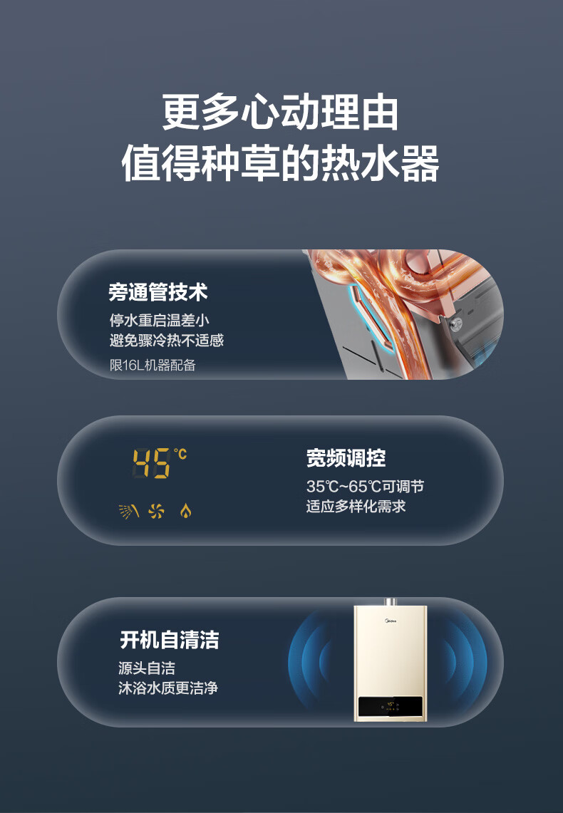 美的(Midea)16升燃气热水器 天然气 智能恒温 水气双调 低水压启动 多重安防 大屏显示 JSQ30-HWA