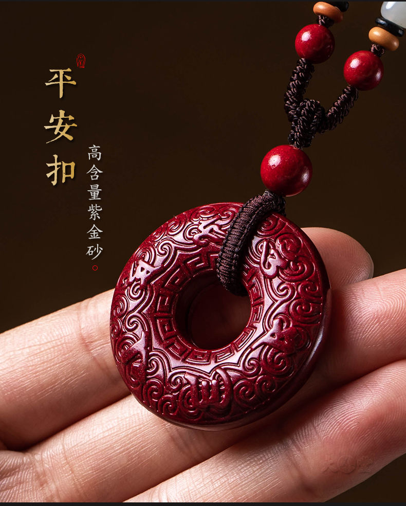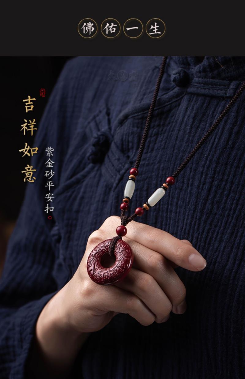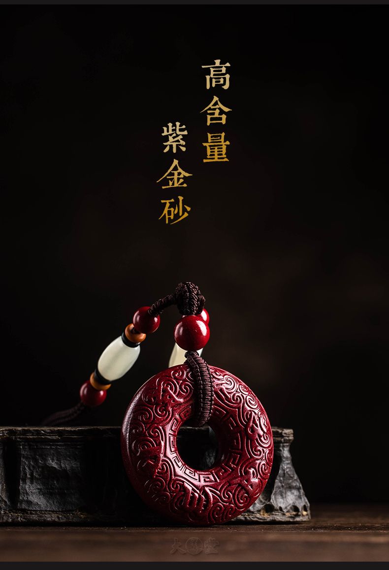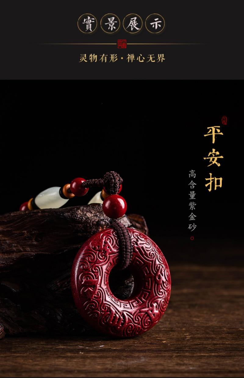 纯天然朱砂心经平安扣吊坠男女款挂件饰品项链97%高含量紫金砂