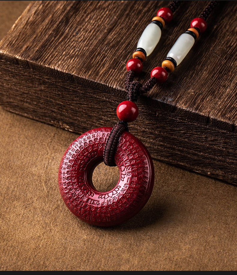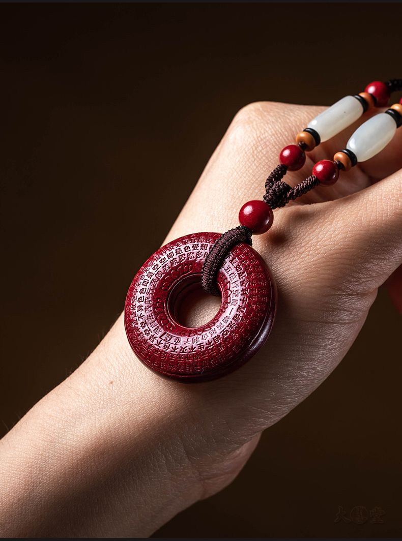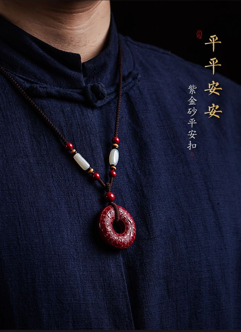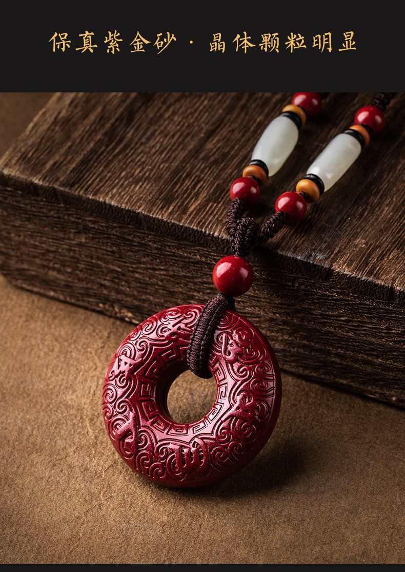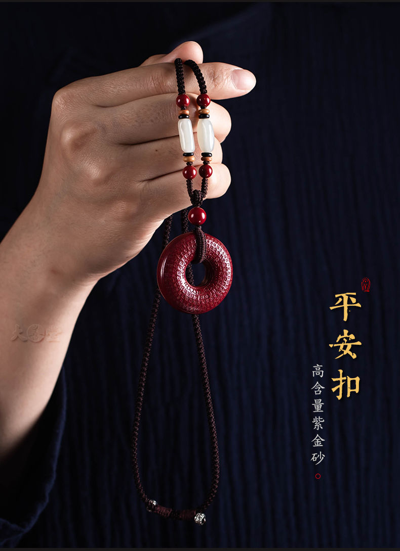 纯天然朱砂心经平安扣吊坠男女款挂件饰品项链97%高含量紫金砂
