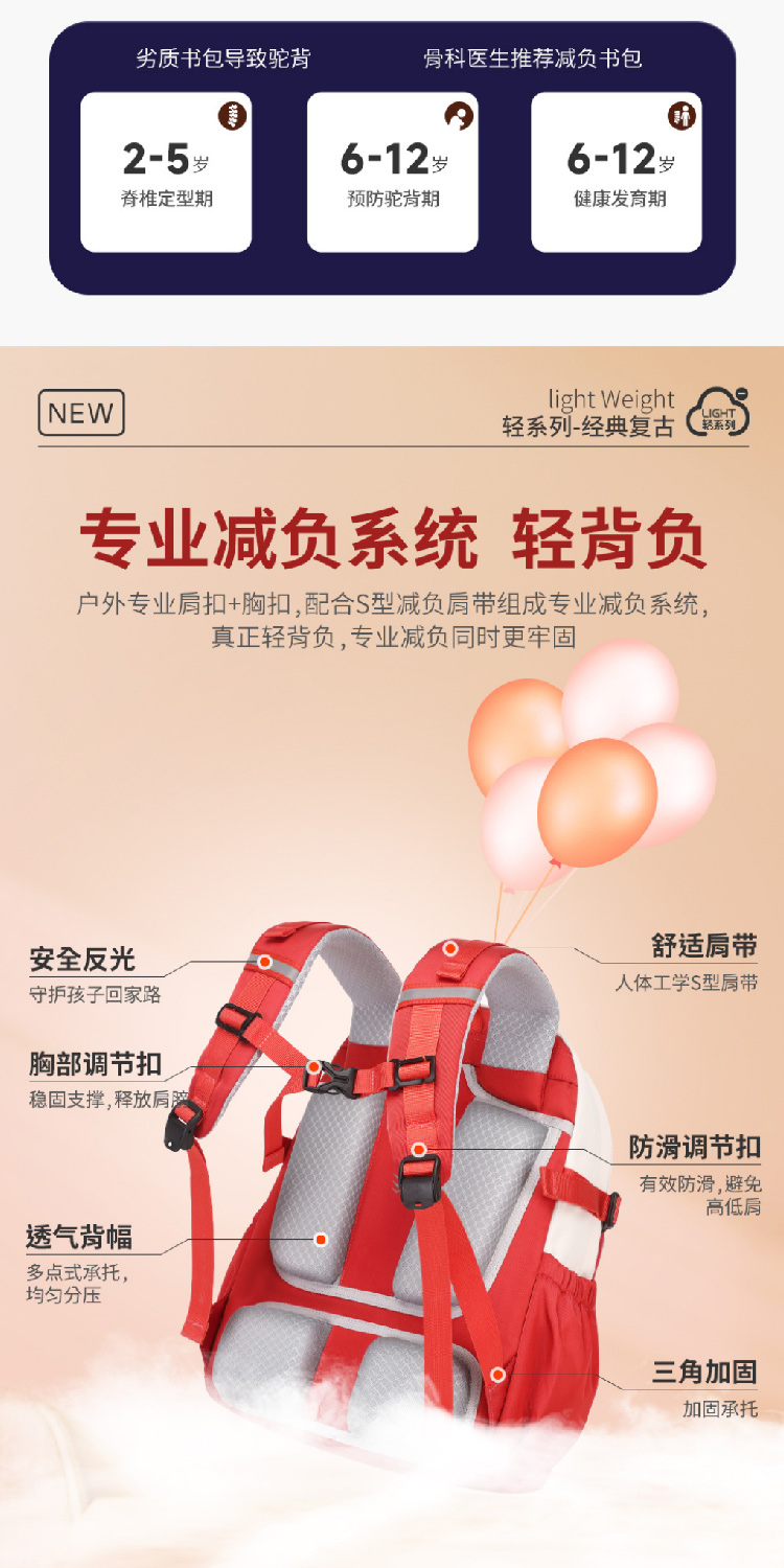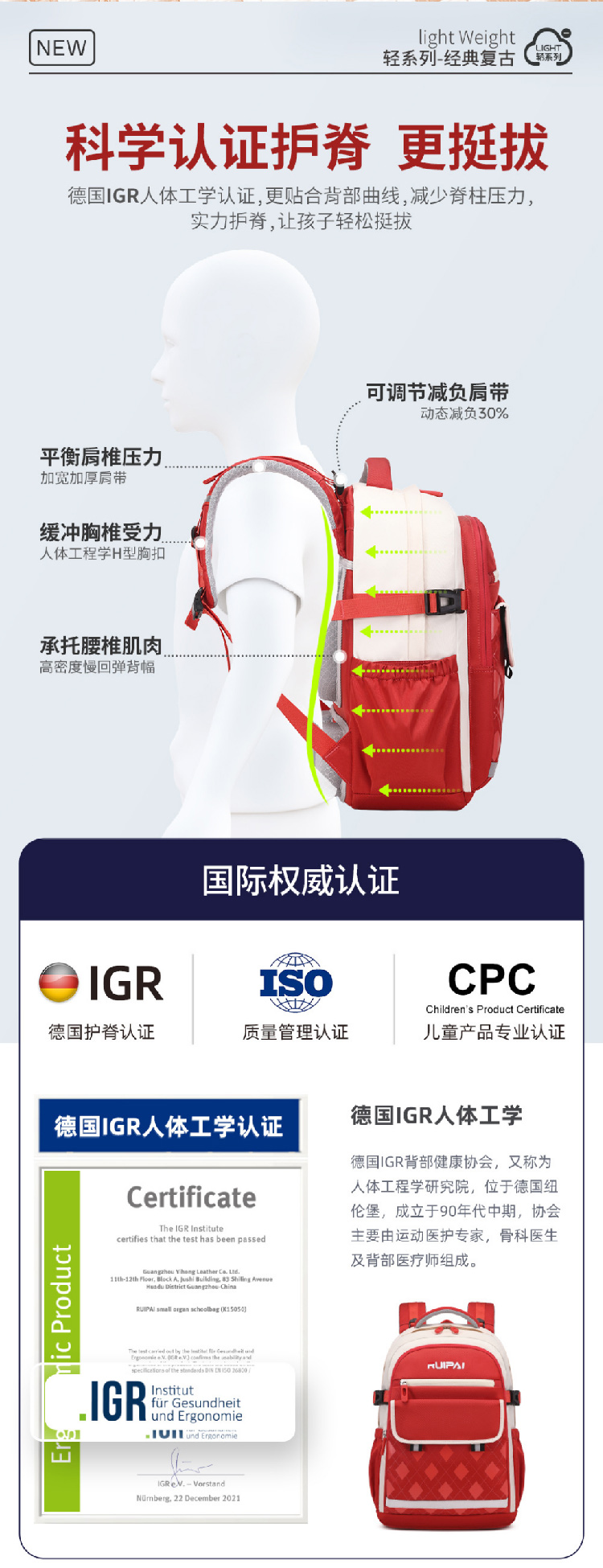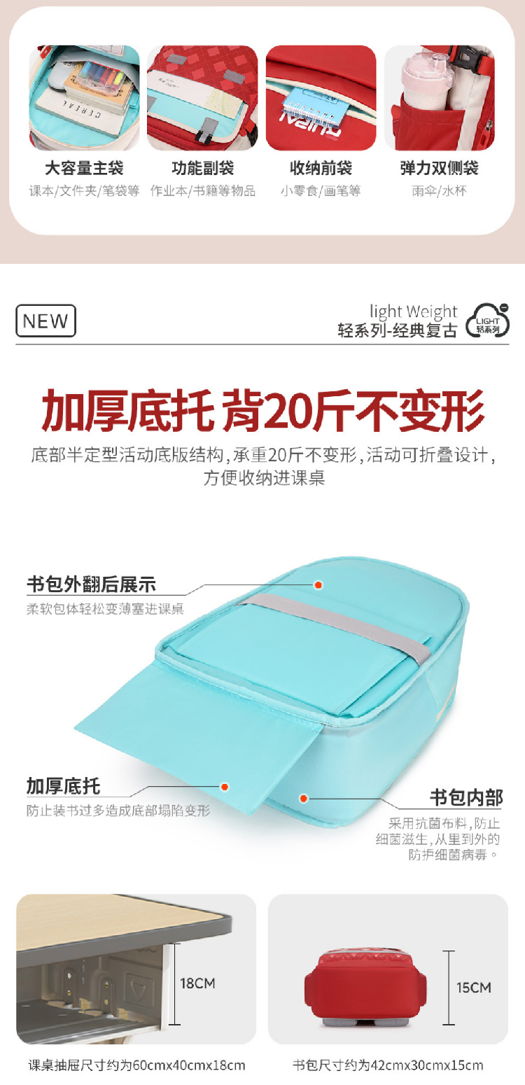 【开学季】新款减负护脊大容量书包 儿童小学初中书包男女童英伦风背包