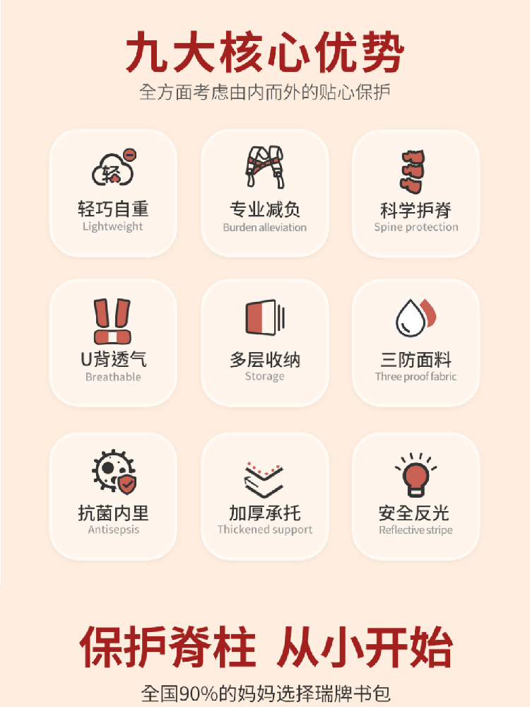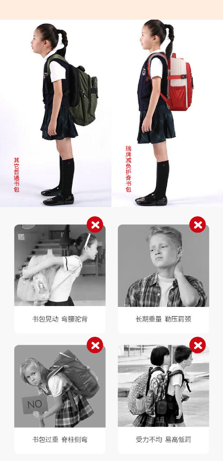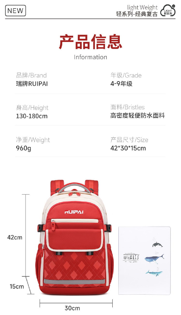 【开学季】新款减负护脊大容量书包 儿童小学初中书包男女童英伦风背包