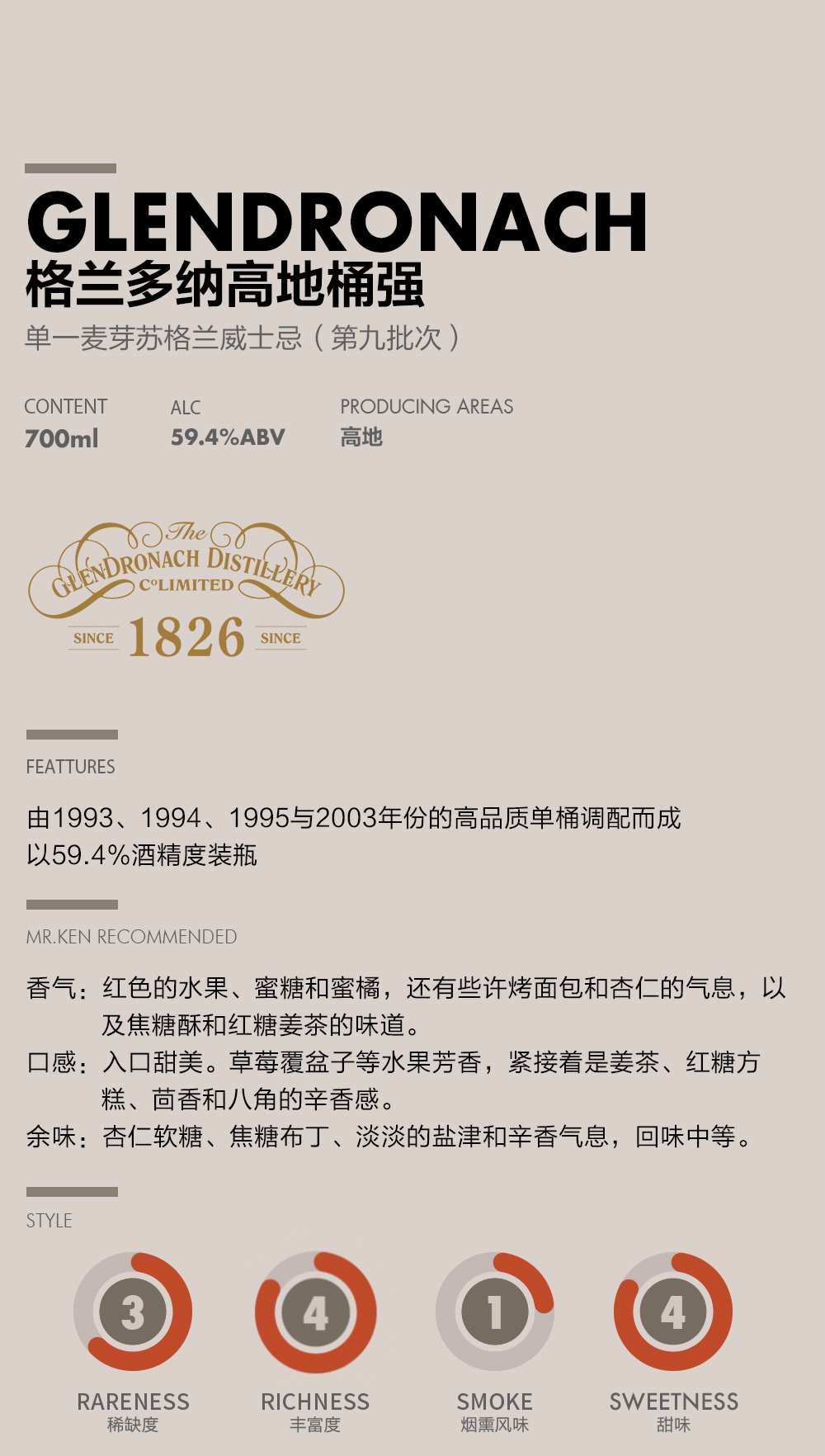 格兰多纳(Glendronach)高地桶强单一麦芽苏格兰威士忌(第九批次)