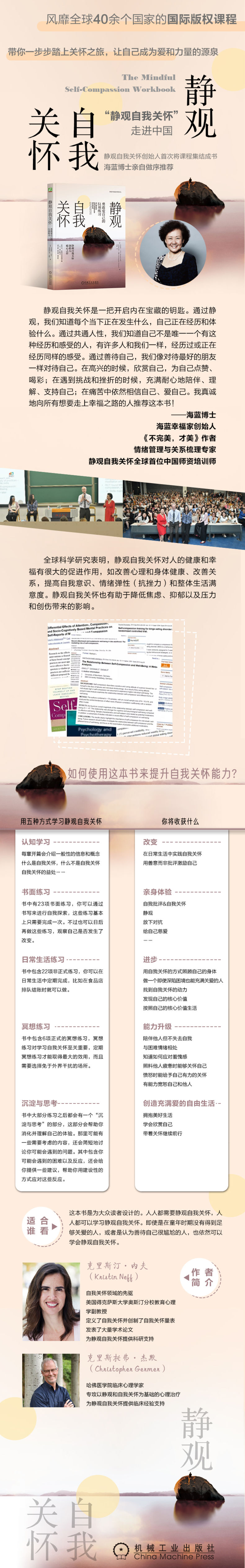 当我们逆境中静观自己的挣扎,用关怀、和善与支持的方式回应自己的时候,一切就开始改变了。学会拥抱自己和自己的不完美,能够让我们获得茁壮成长所需的心理弹性。