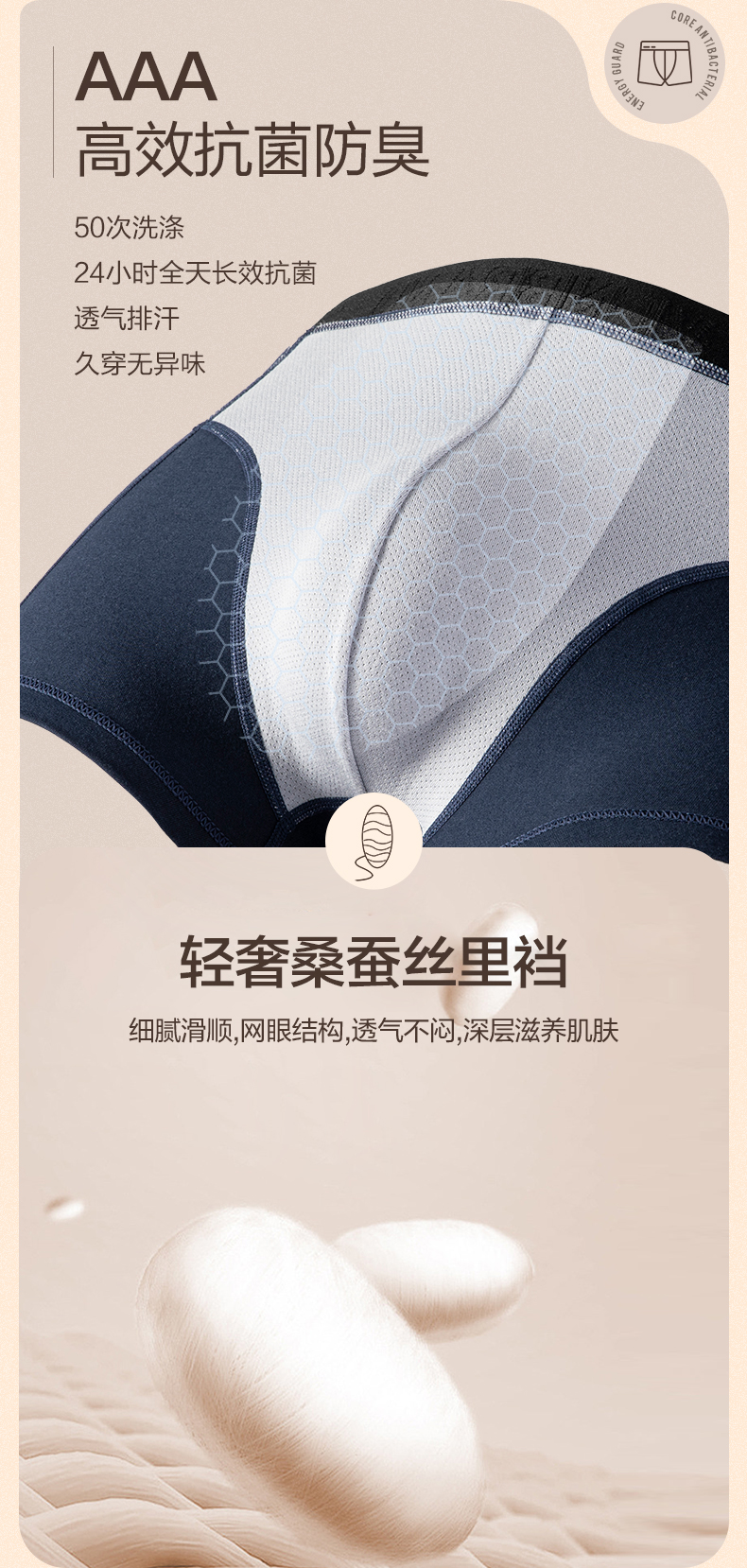 柒牌内裤四角裤男含桑蚕丝抗菌底档夏季薄款透气男生平角裤3条装 123F70370