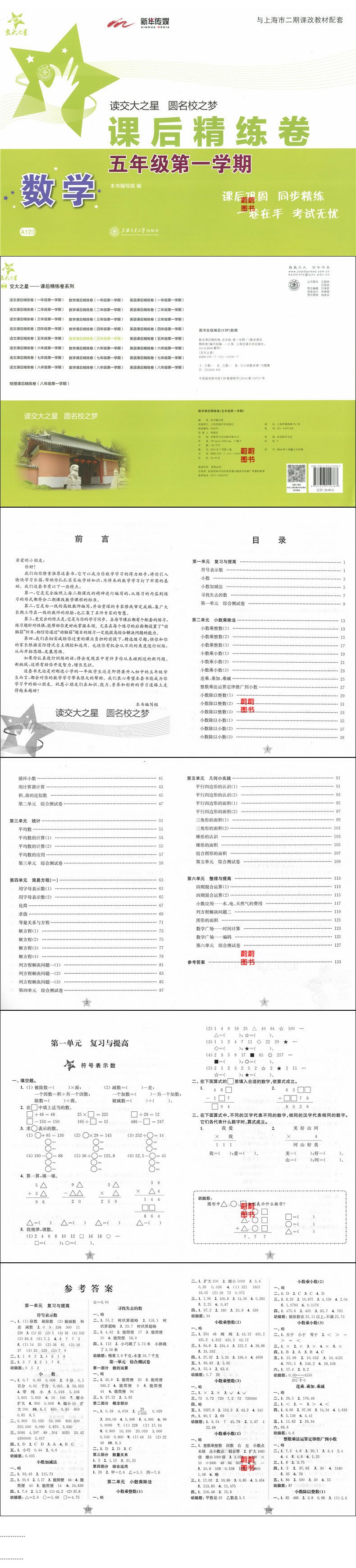 正版现货 新版 上海小学教材教辅 交大之星 课后精练卷 数学 五年级第一学期/5年级上 课后同步练习册 小学五年级数学课后练习A123