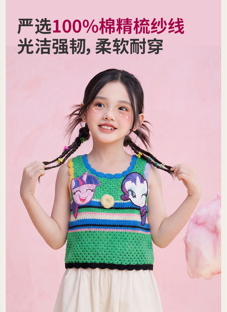 小马宝莉联名年衣童装背心2026年夏季新款女童卡通风针织吊带上衣
