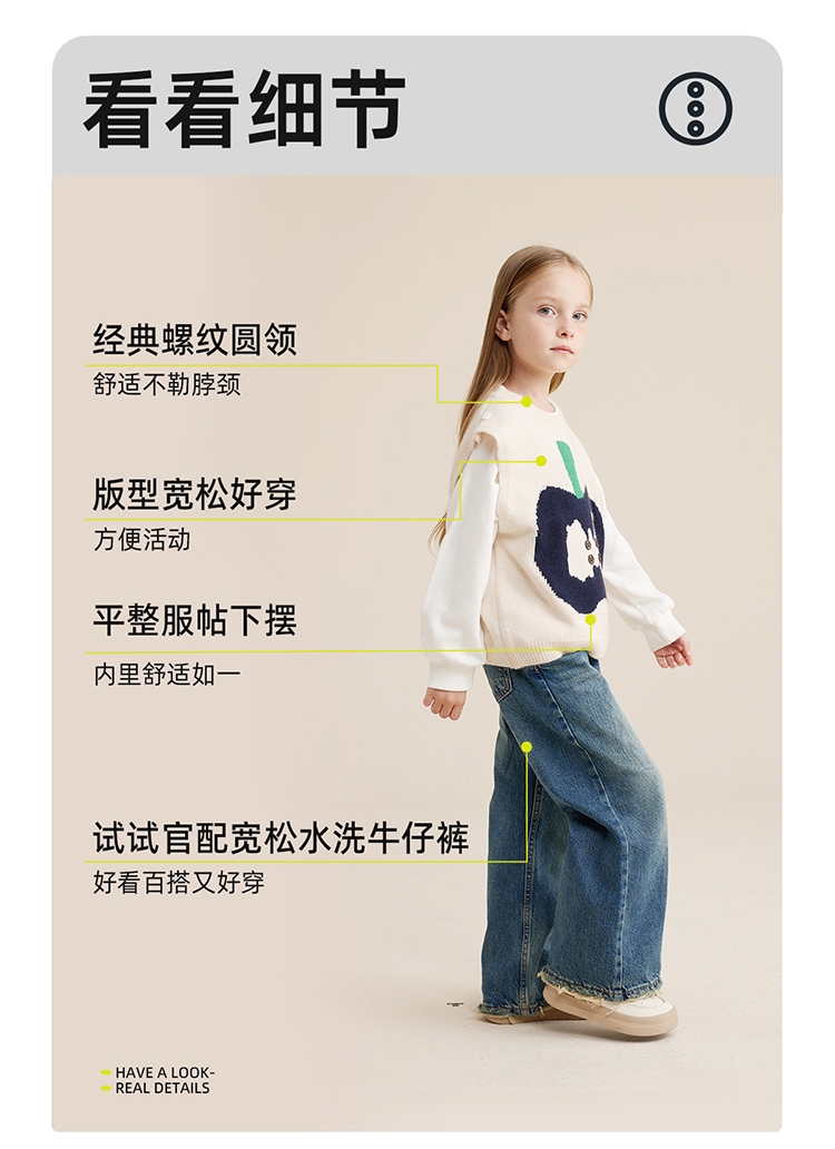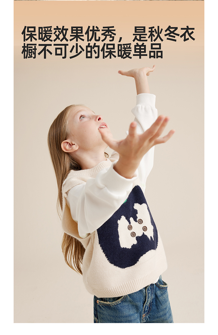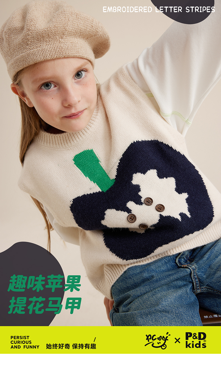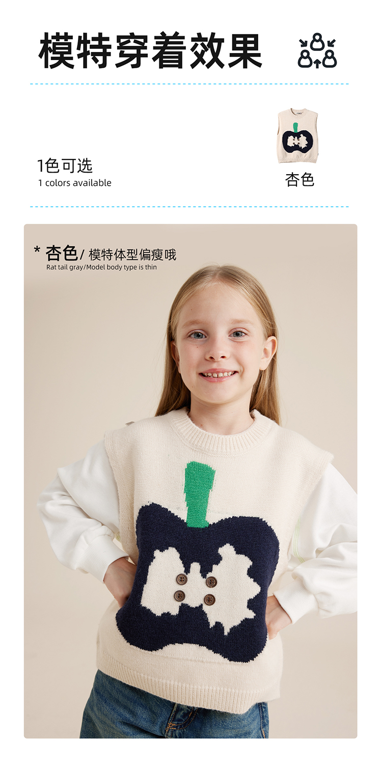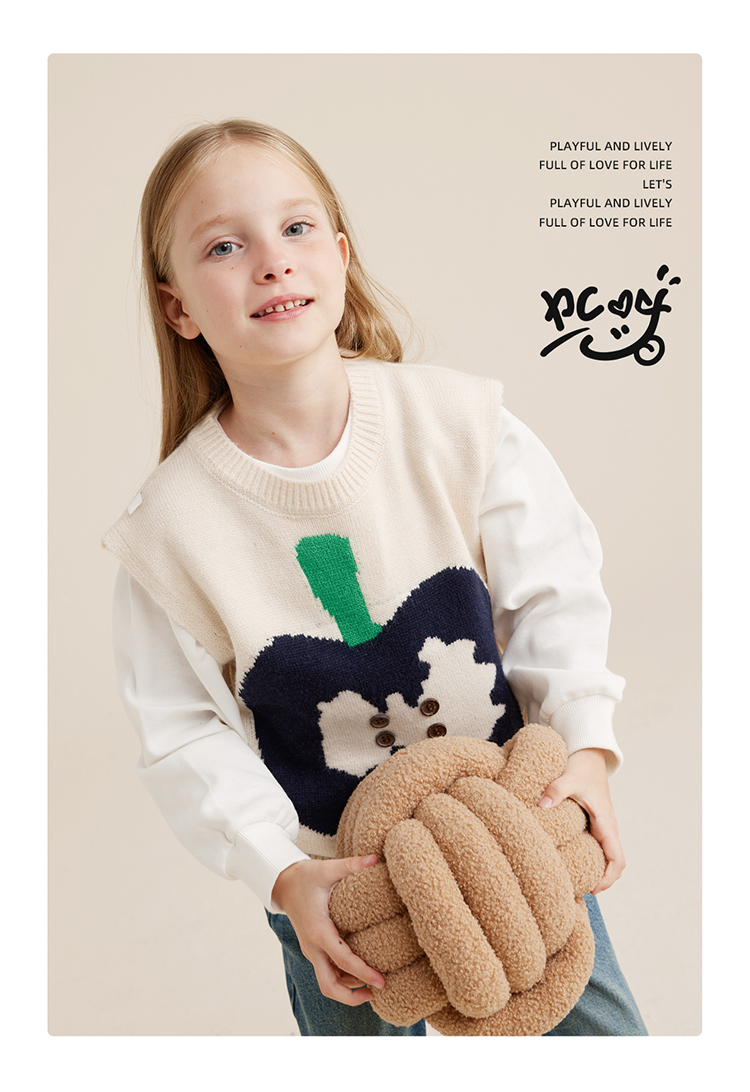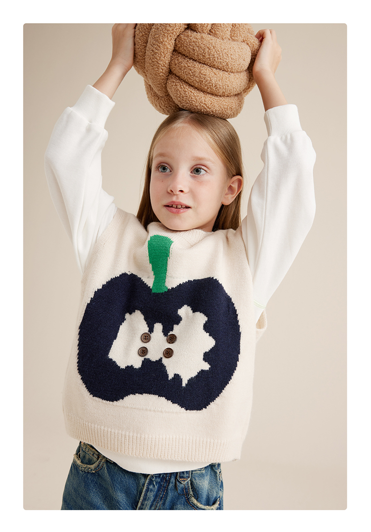 【软糯舒适安哥拉纤绒纱】儿童苹果提花背心毛衣PQMY2316