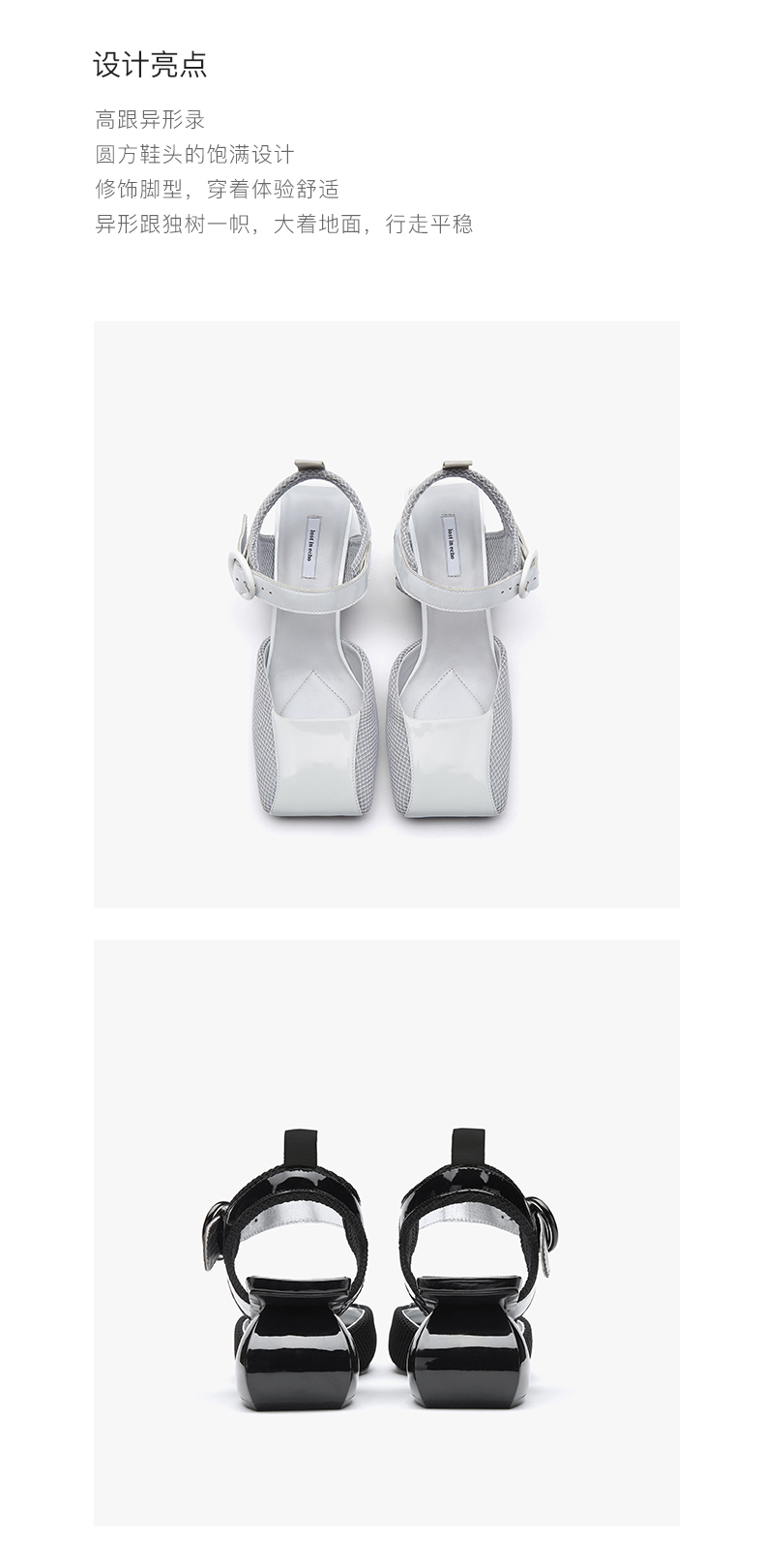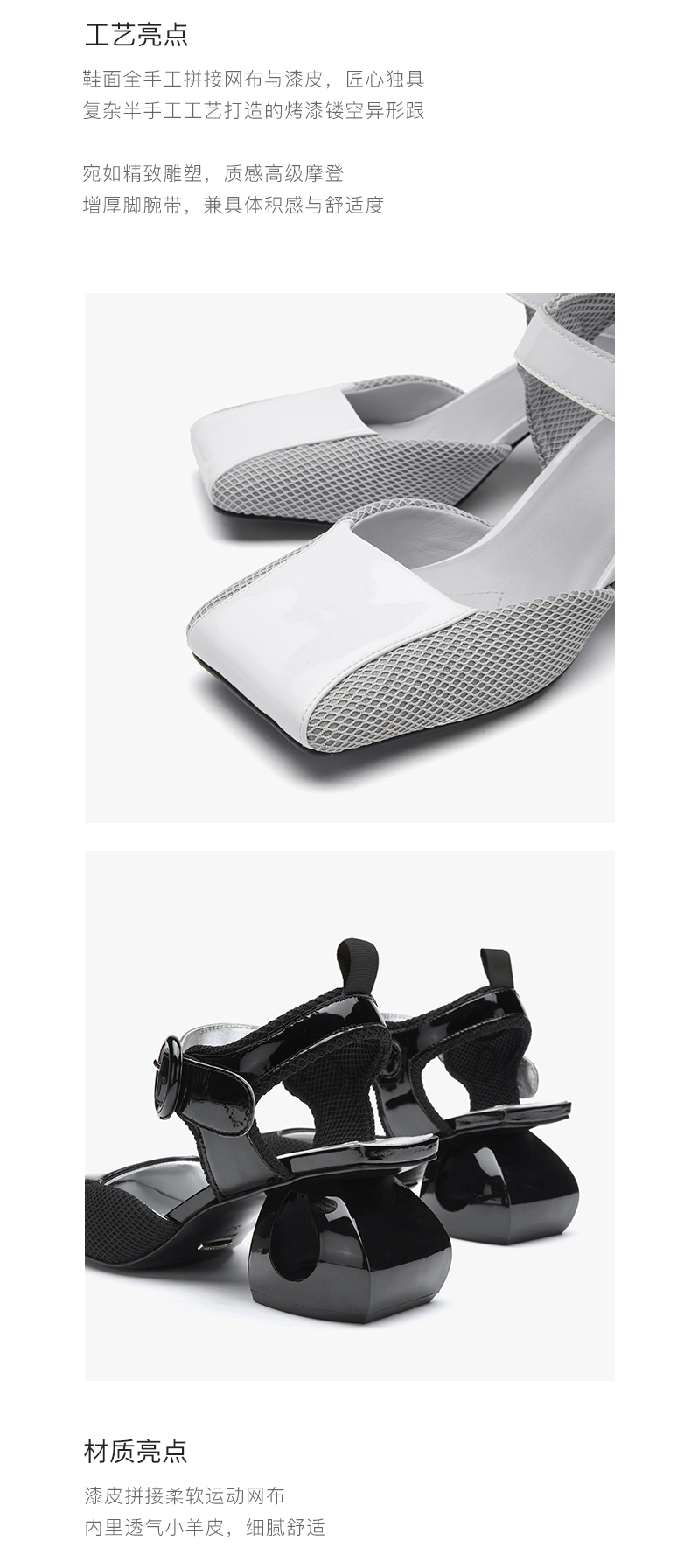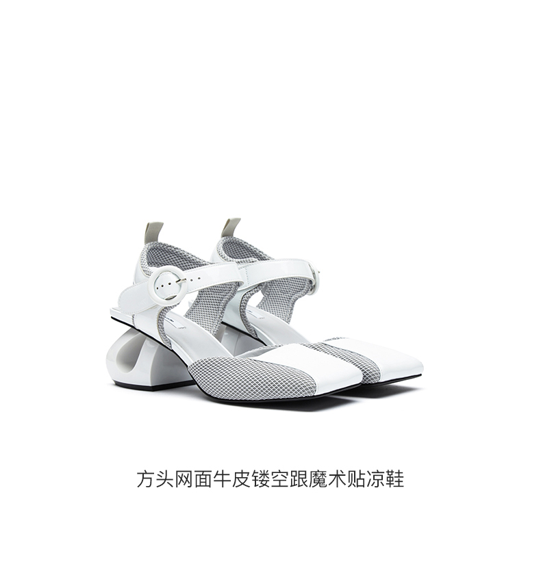 lost in echo 设计师21春夏新款 方头网面牛皮镂空跟魔术贴凉鞋