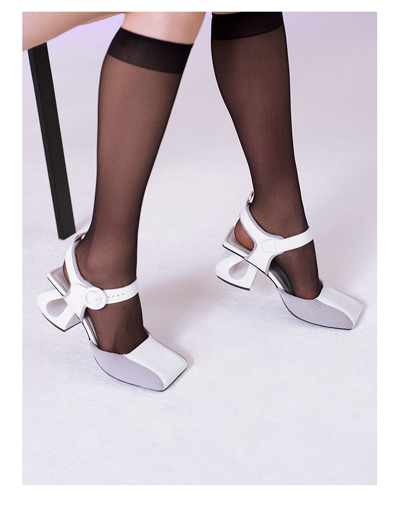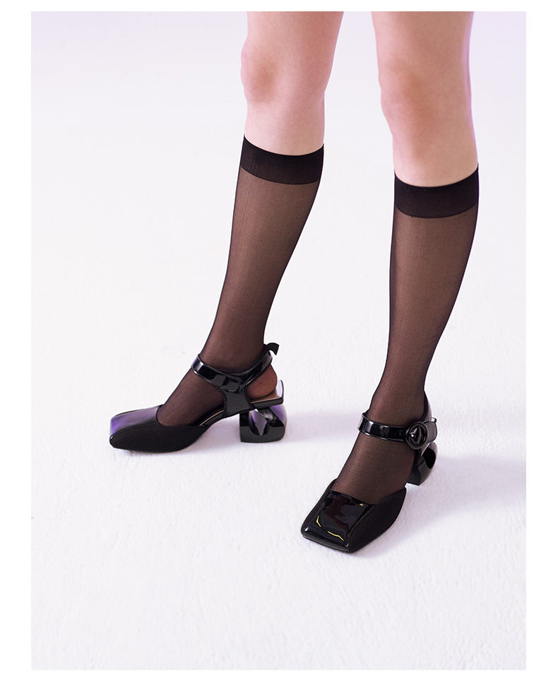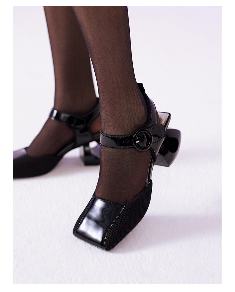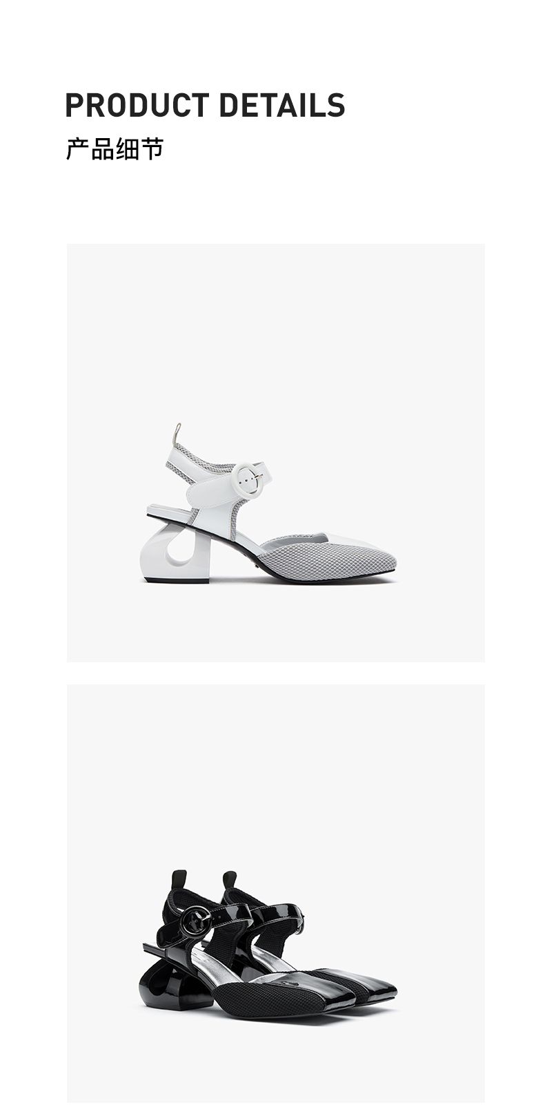 lost in echo 设计师21春夏新款 方头网面牛皮镂空跟魔术贴凉鞋