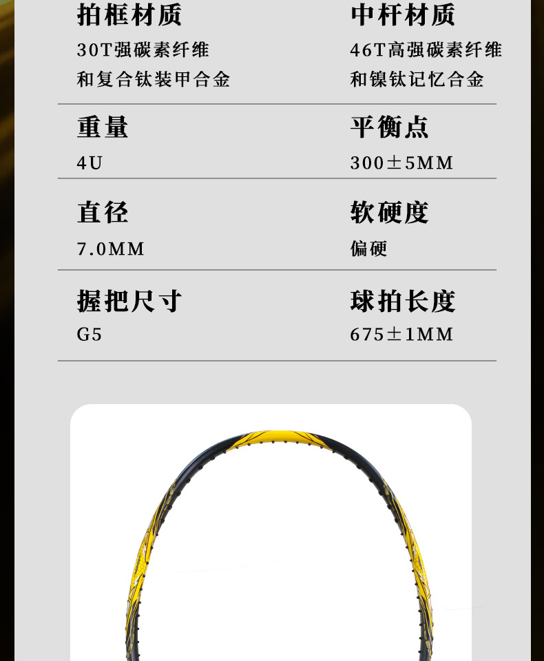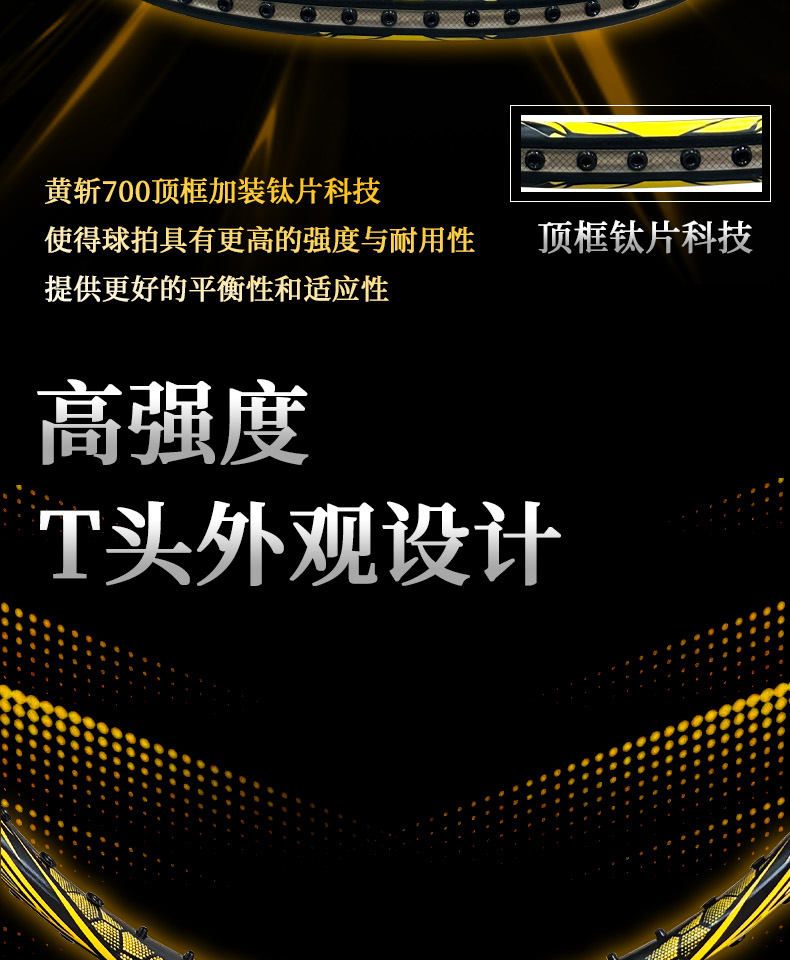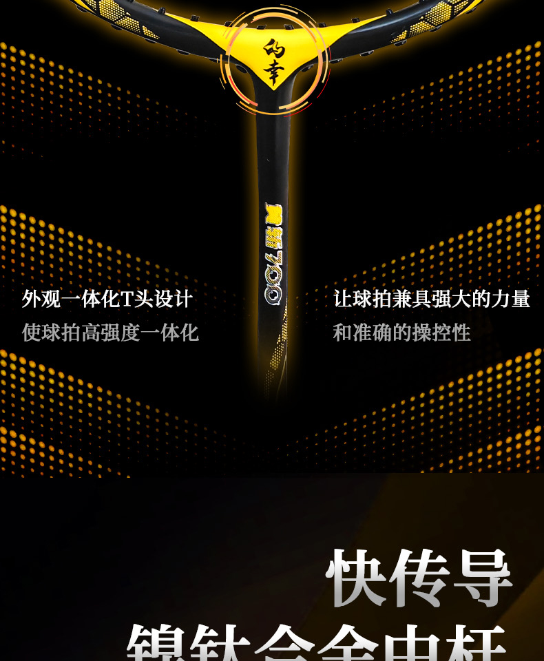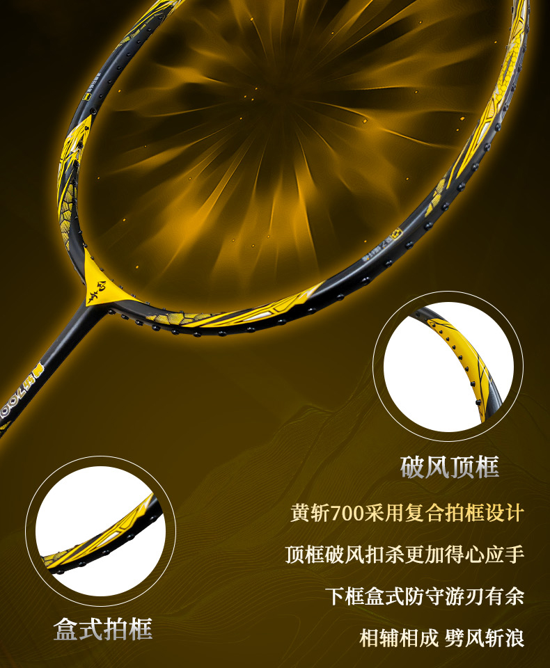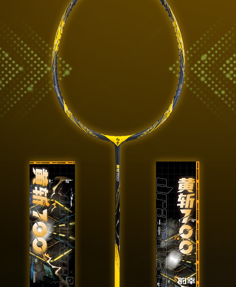 的幸黄斩700羽毛球拍碳钛合金破风框硬弹中杆暴力进攻单拍