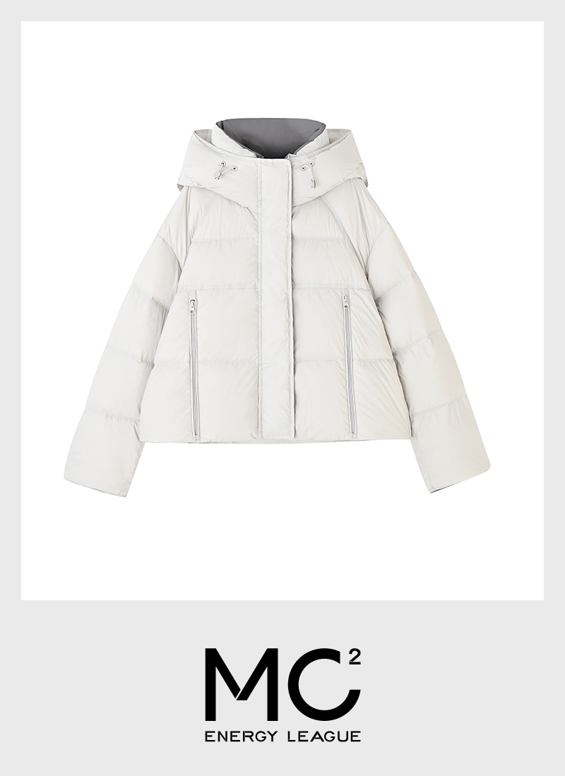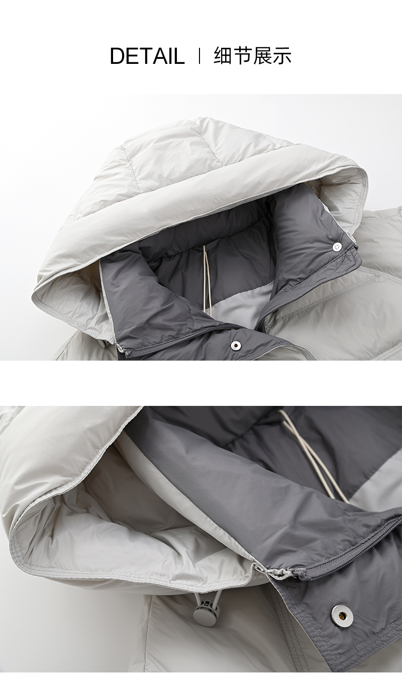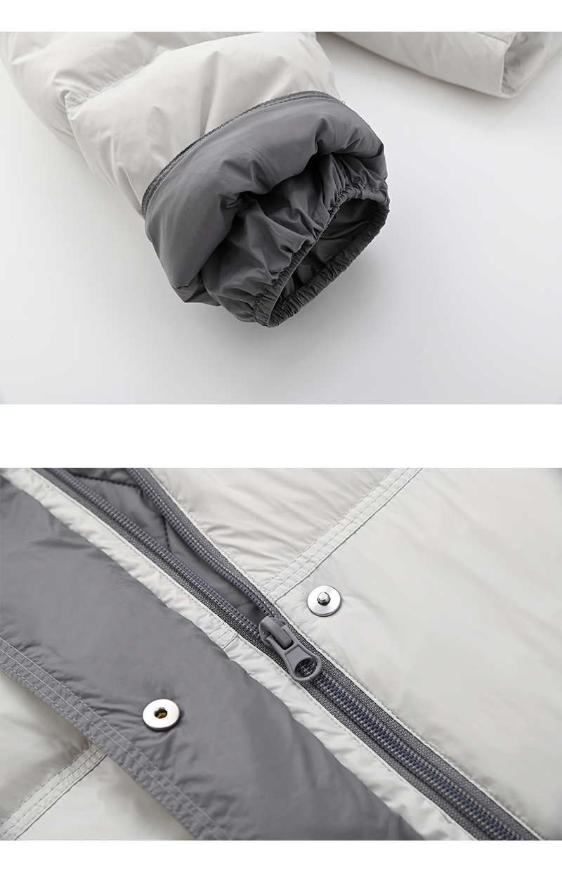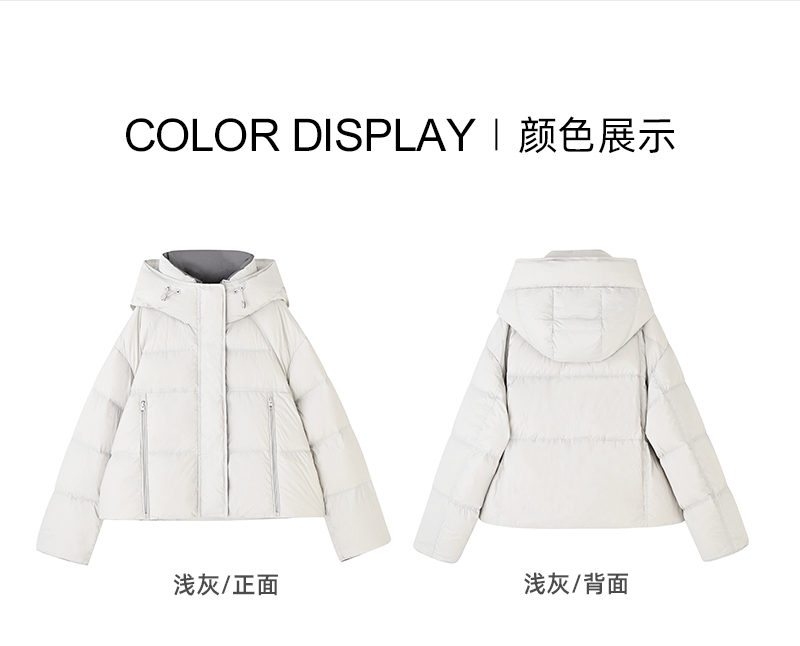女装撞色连帽下摆长拉链设计短款羽绒服-1277Y5242004