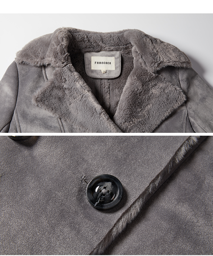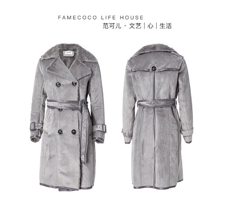 Famecoco范可儿保暖大衣冬季收腰加厚中长款外套F188AC014