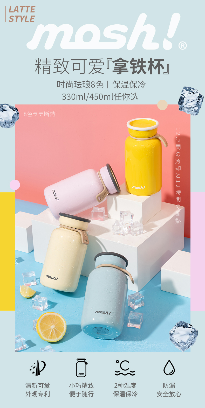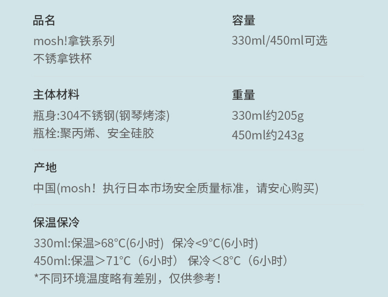 日本mosh简约可爱便携不锈钢拿铁迷你一口杯保温杯保冷杯200ml