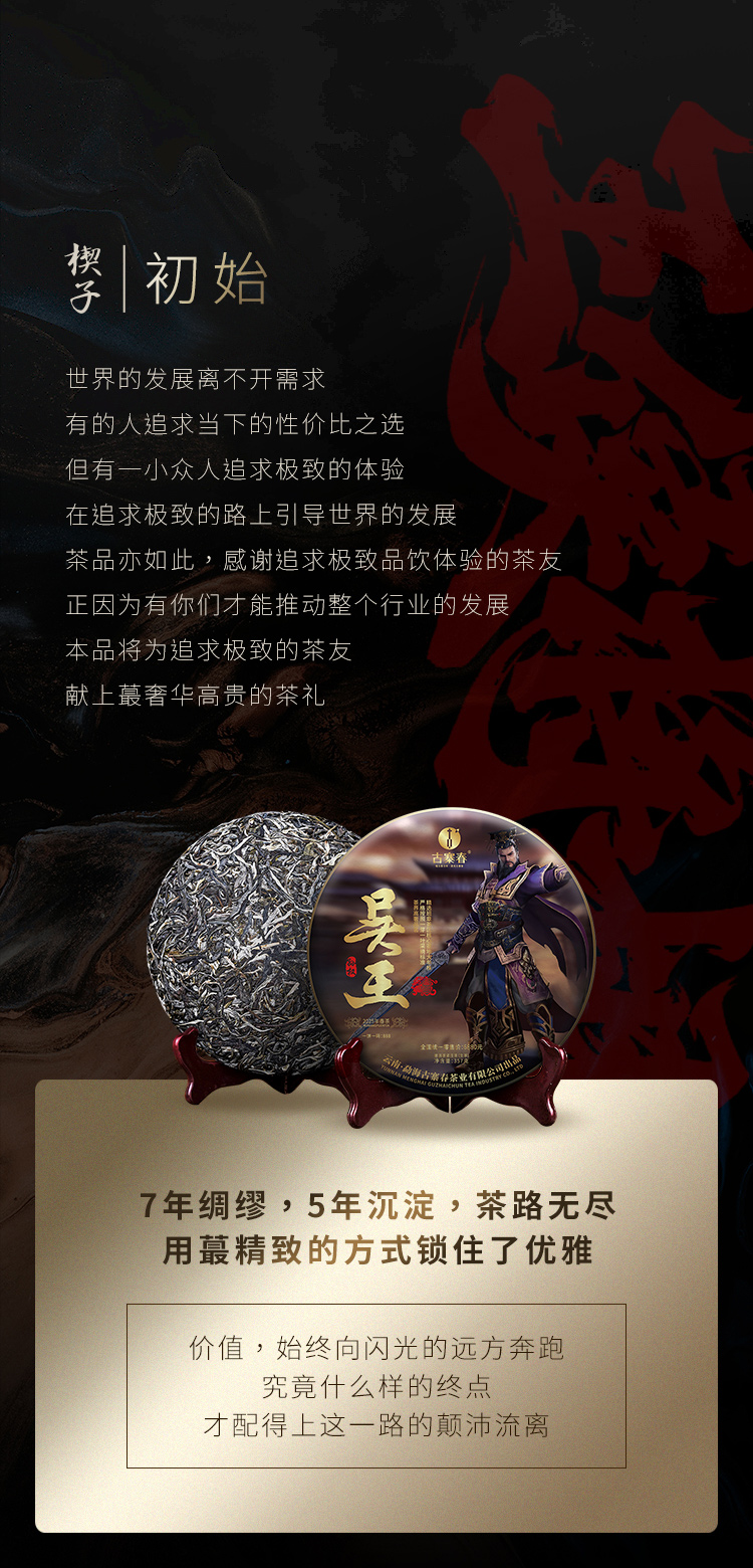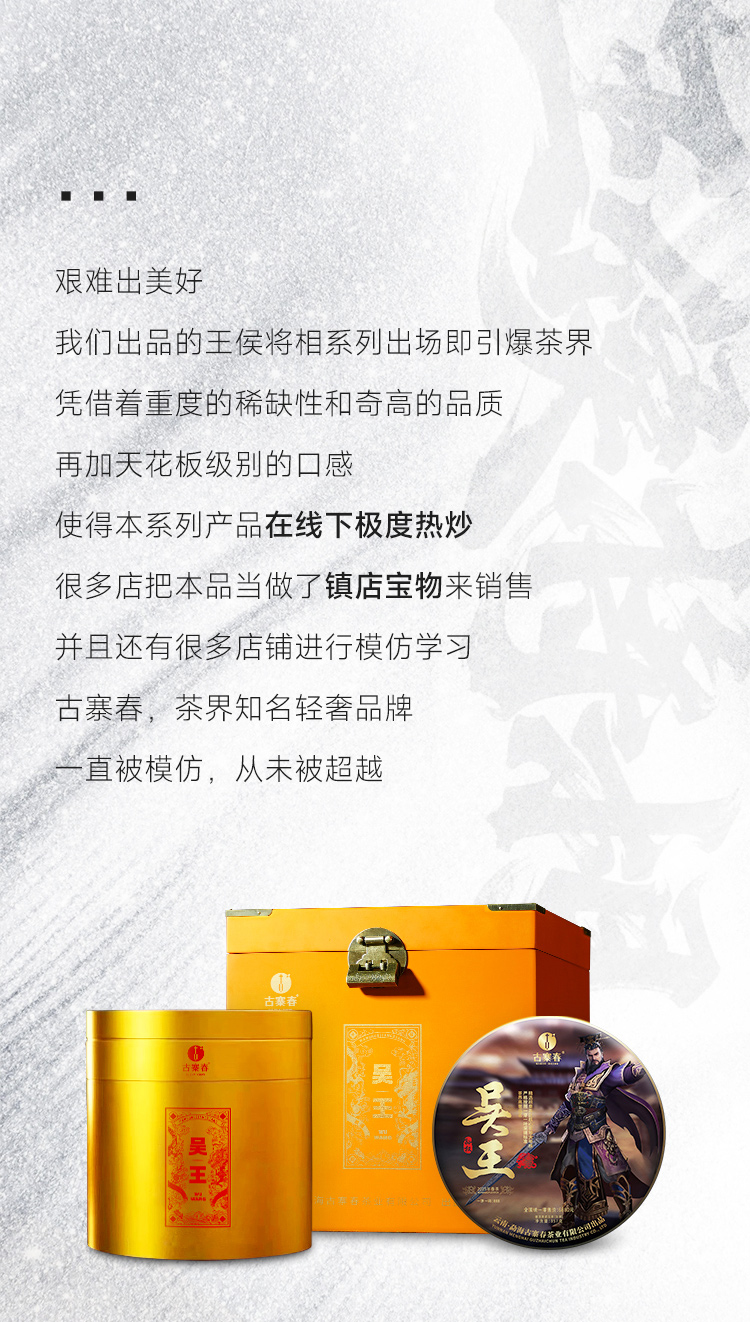 【王侯将相—吴王:孙权】王者中的王者,比老班章单株更稀有更奢华!挑战市面上的不可能 357g/饼 6饼/箱