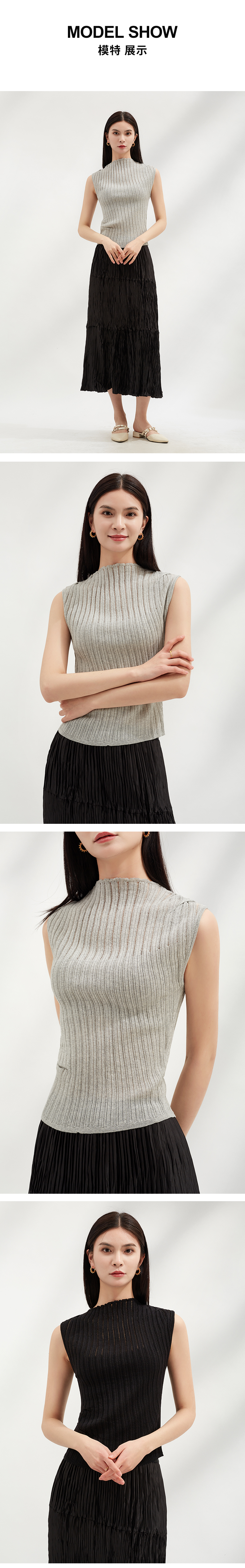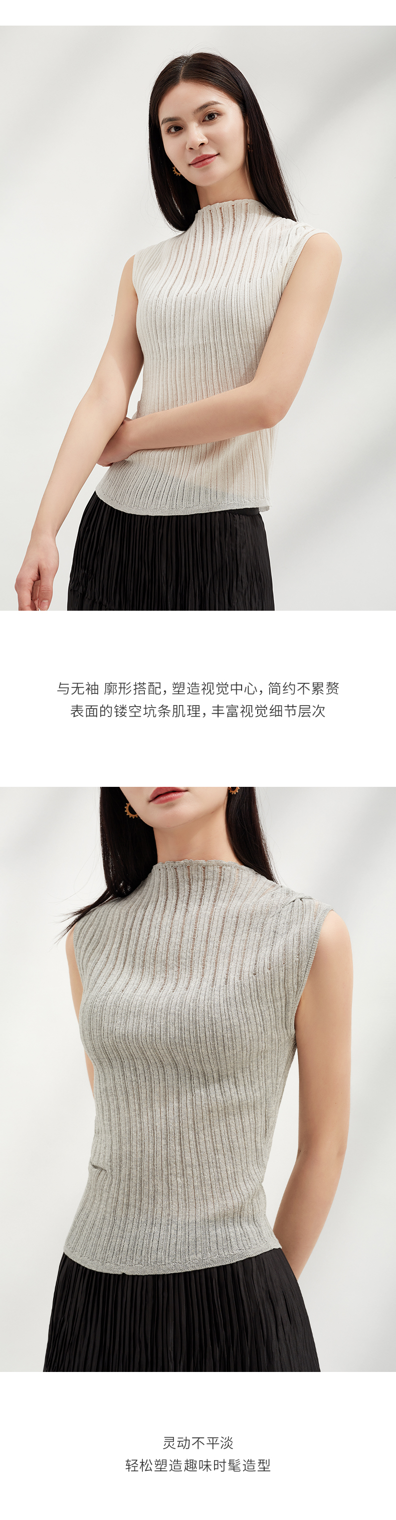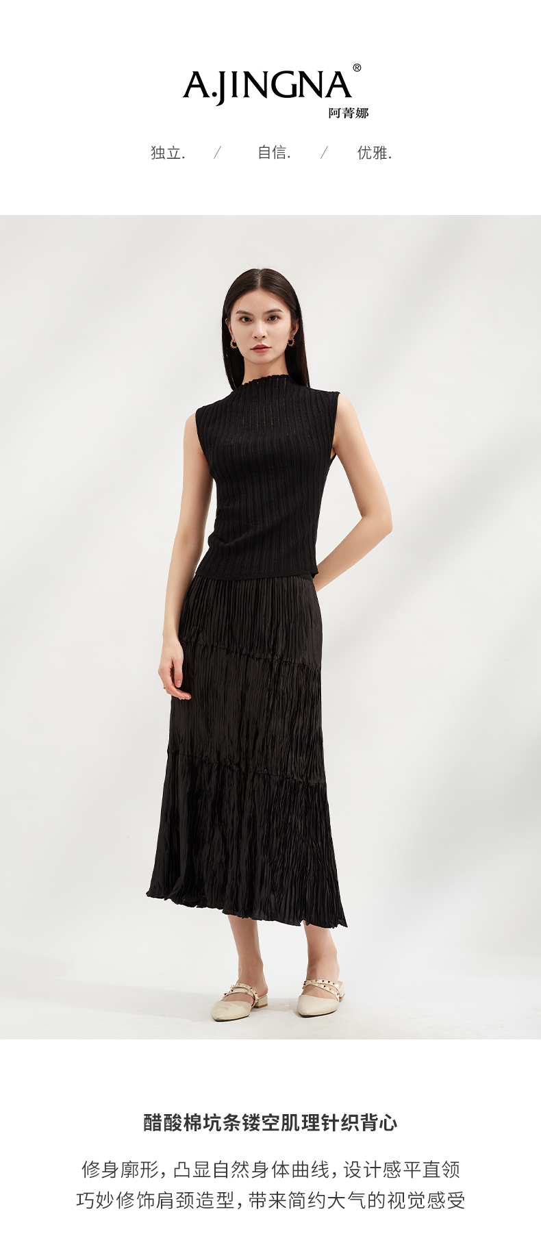 【修身廓形】阿菁娜醋酸棉坑条镂空肌理针织背心F30C301018