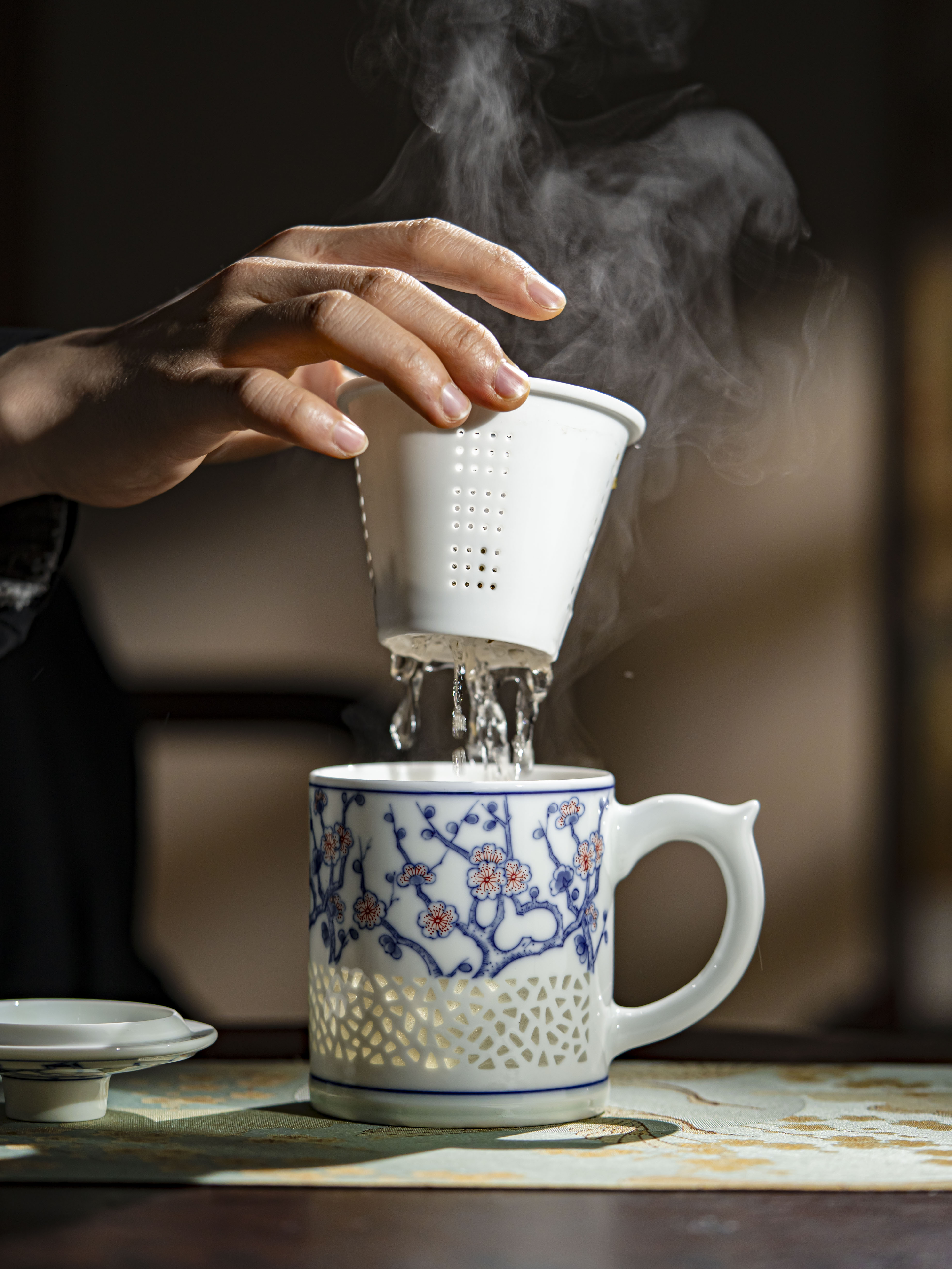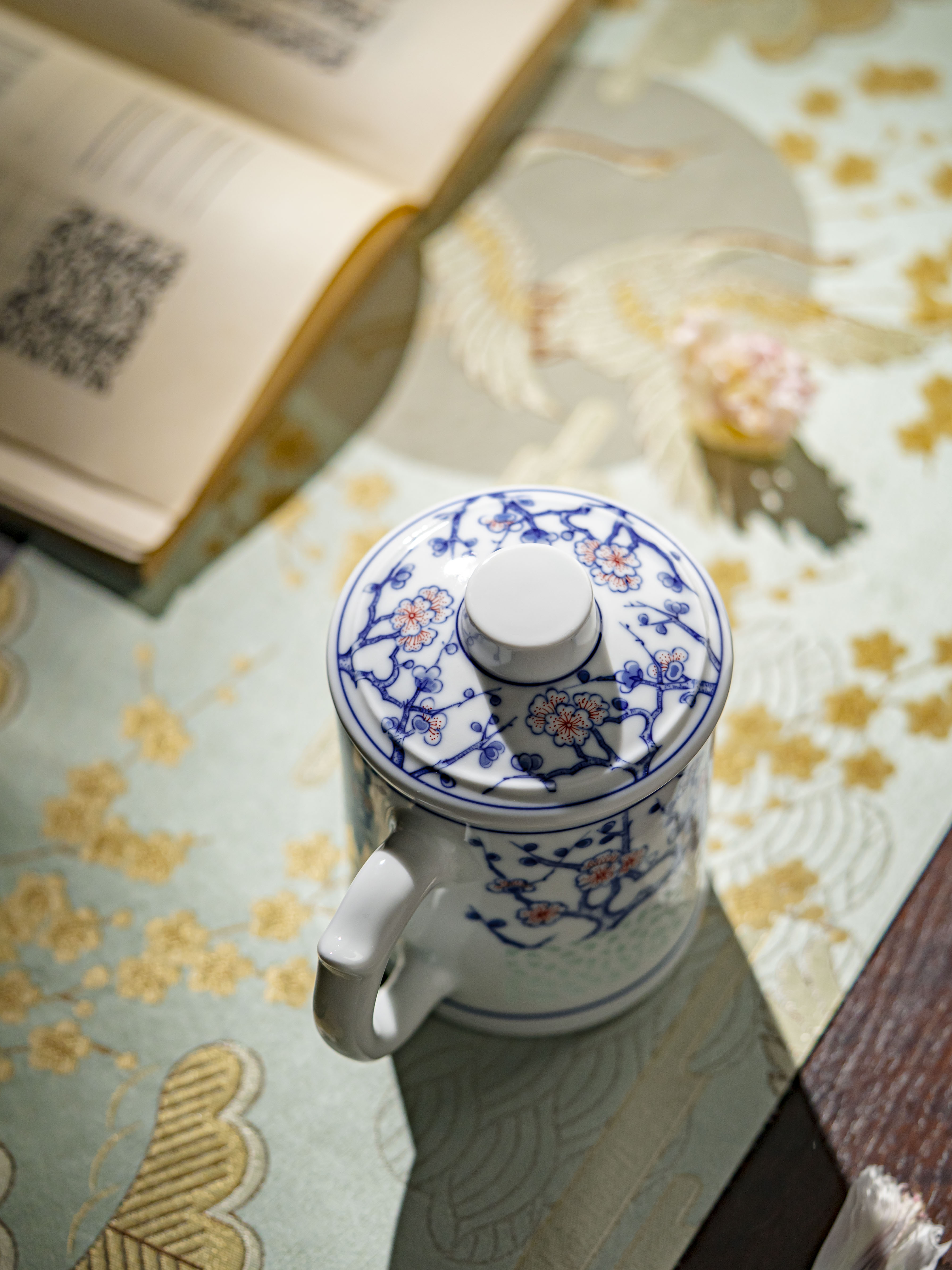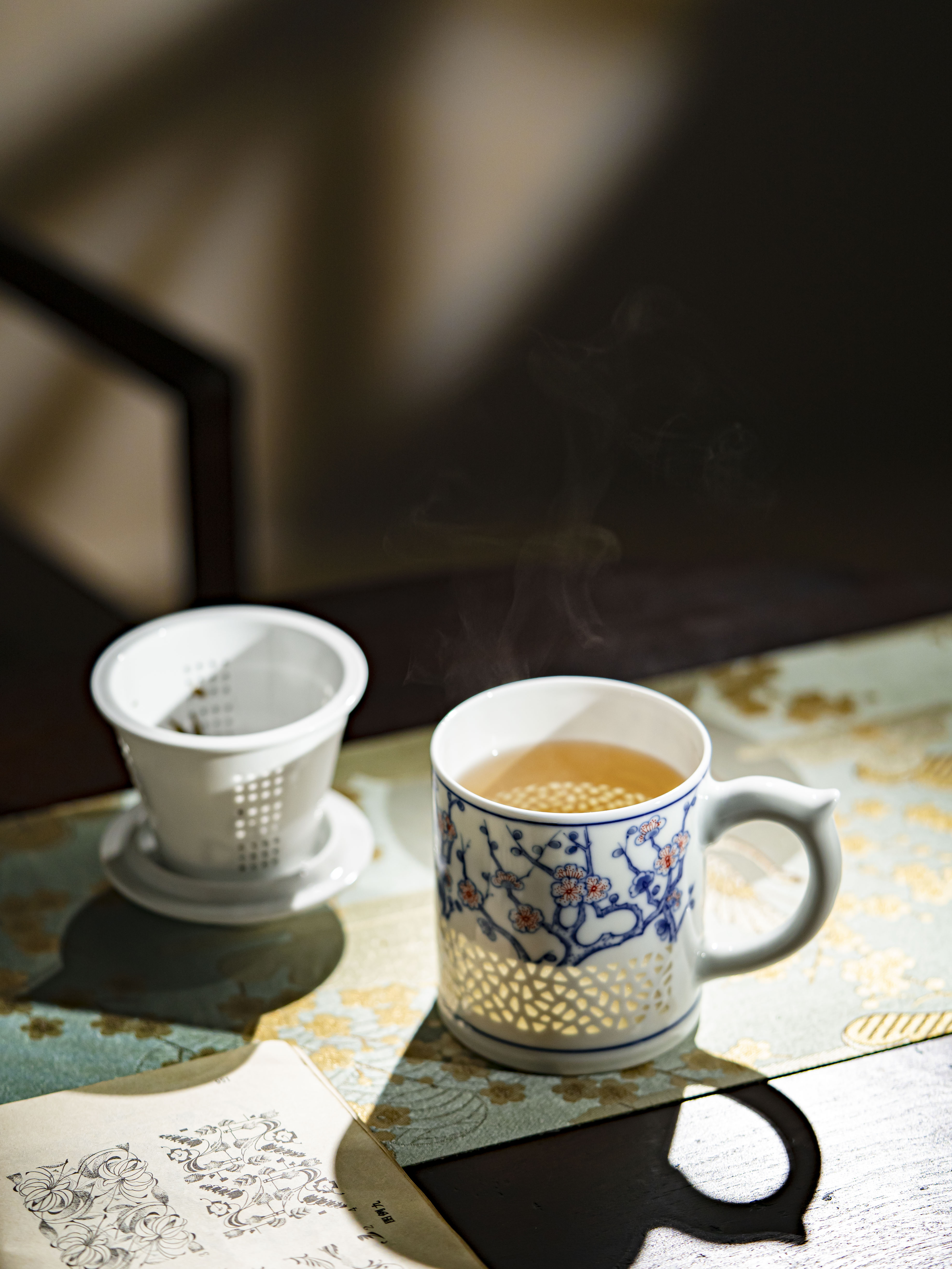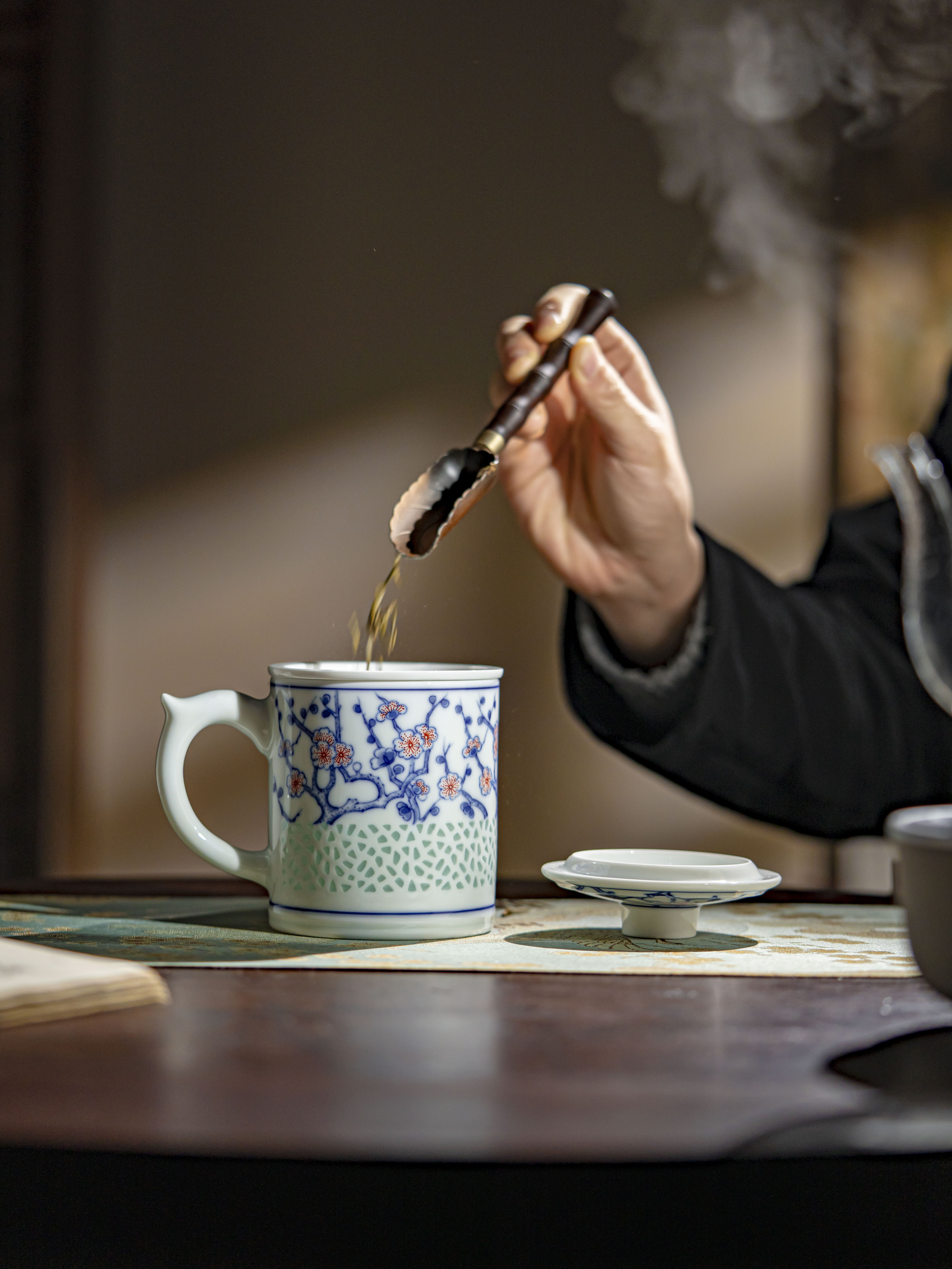 富玉 | 景德镇陶瓷手绘早春茶漏杯大容量水杯带盖水杯