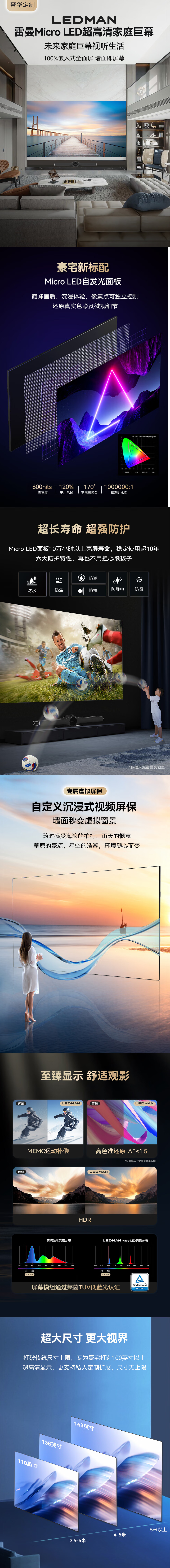 雷曼(13463)家庭巨幕墙micro led 高清防蓝光家庭影院豪宅别墅智慧屏雷曼光电COB全面屏 138吋4K豪宅别墅标配Micro LED自发光