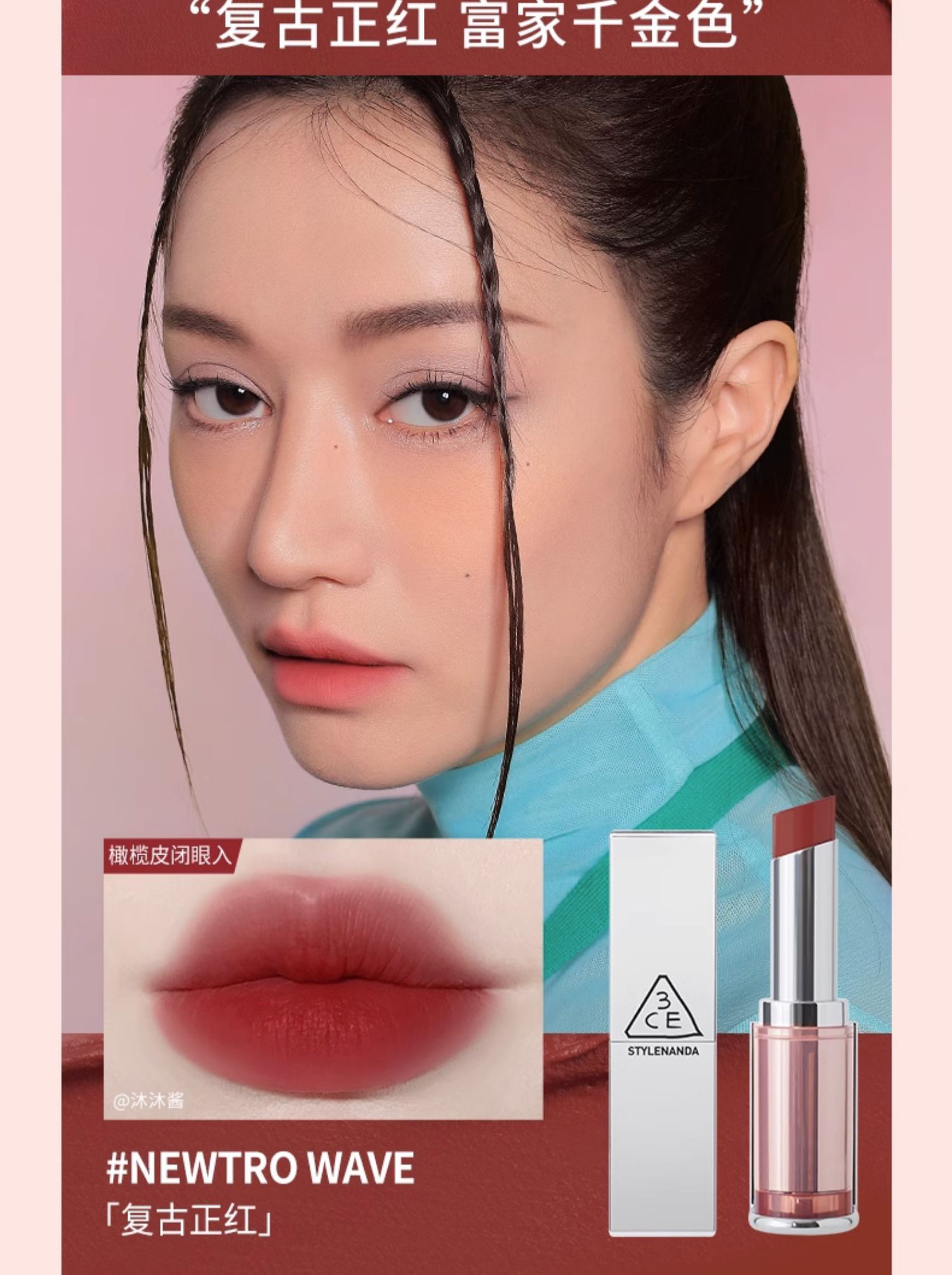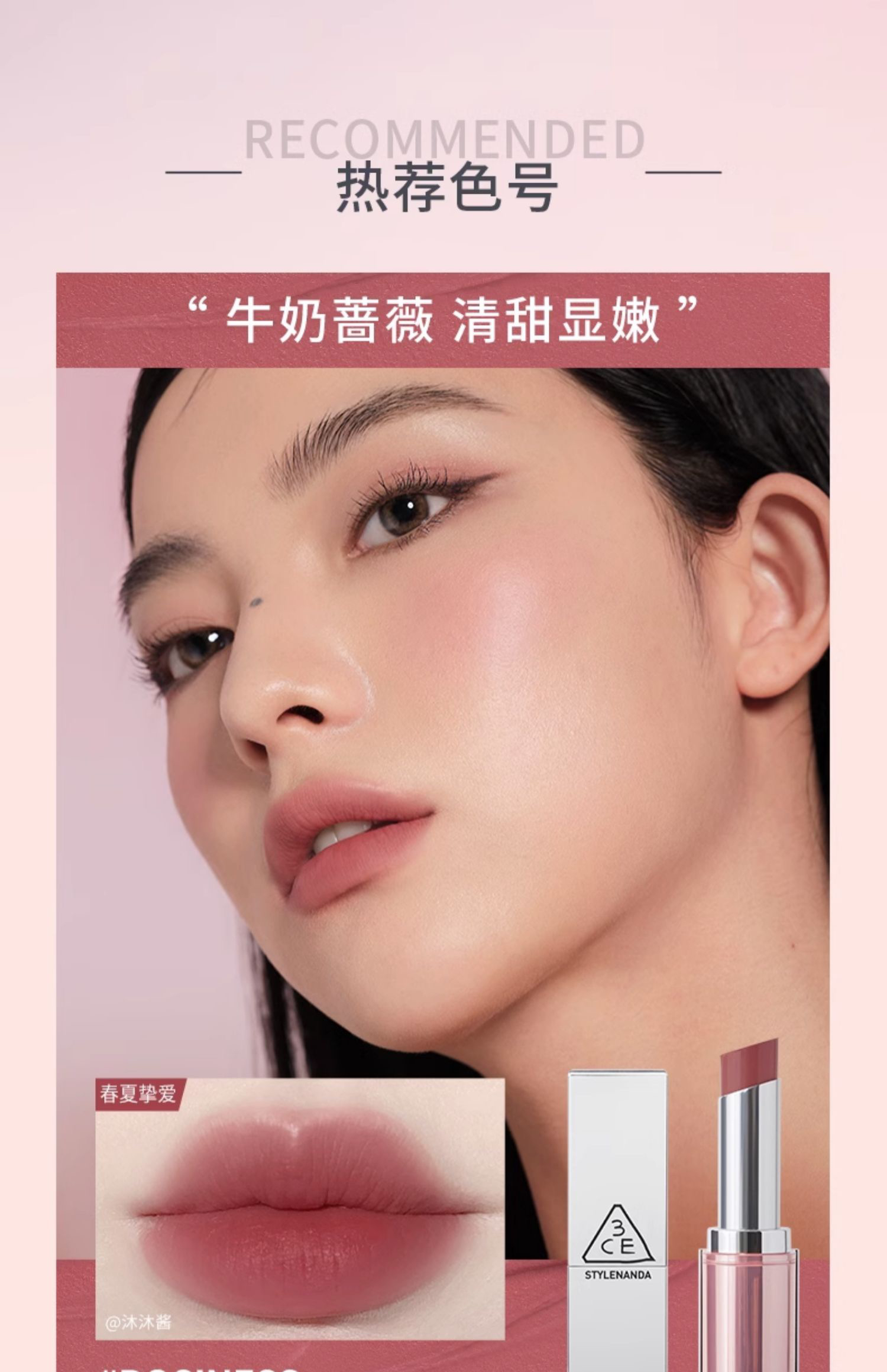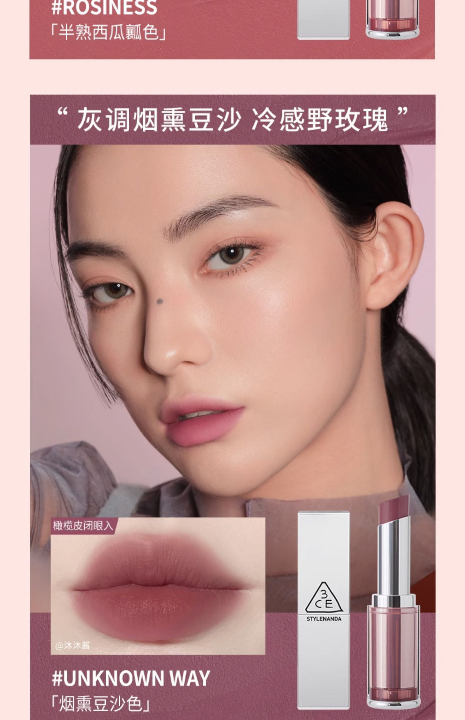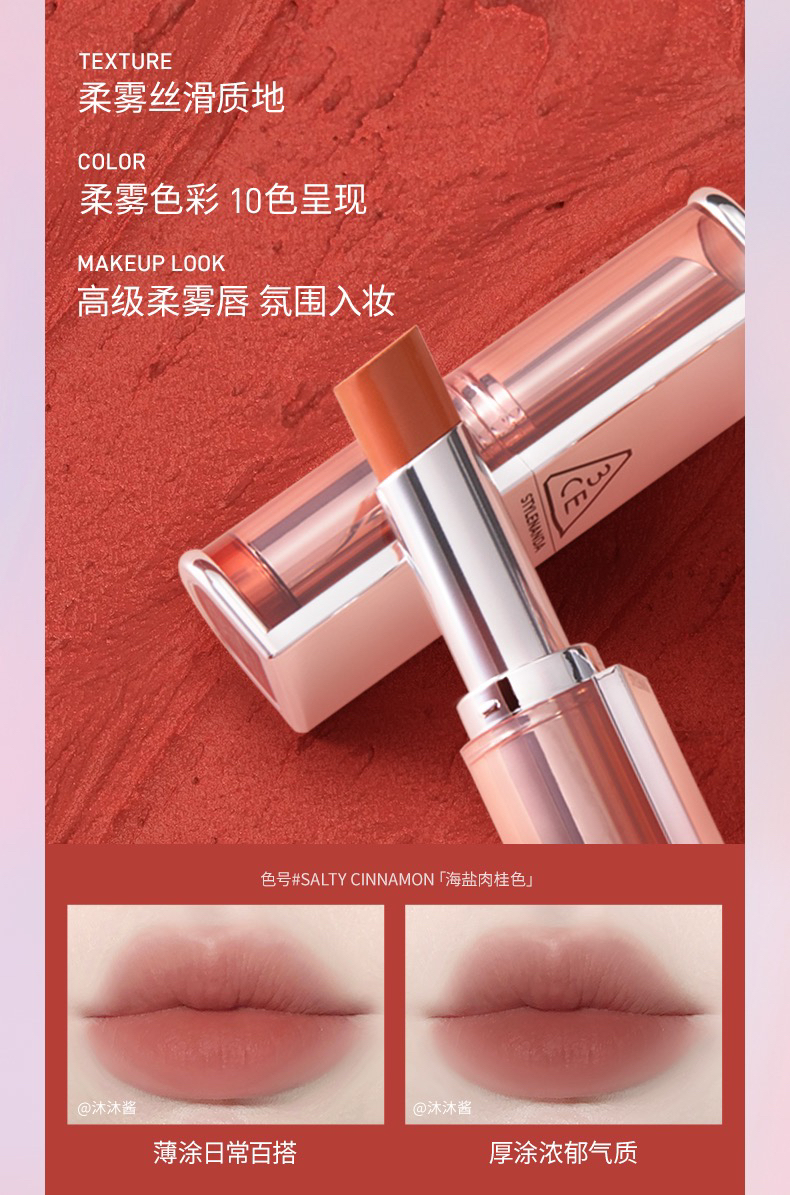 韩国 3CE三熹玉 柔焦丝绒口红 柔雾管 4g