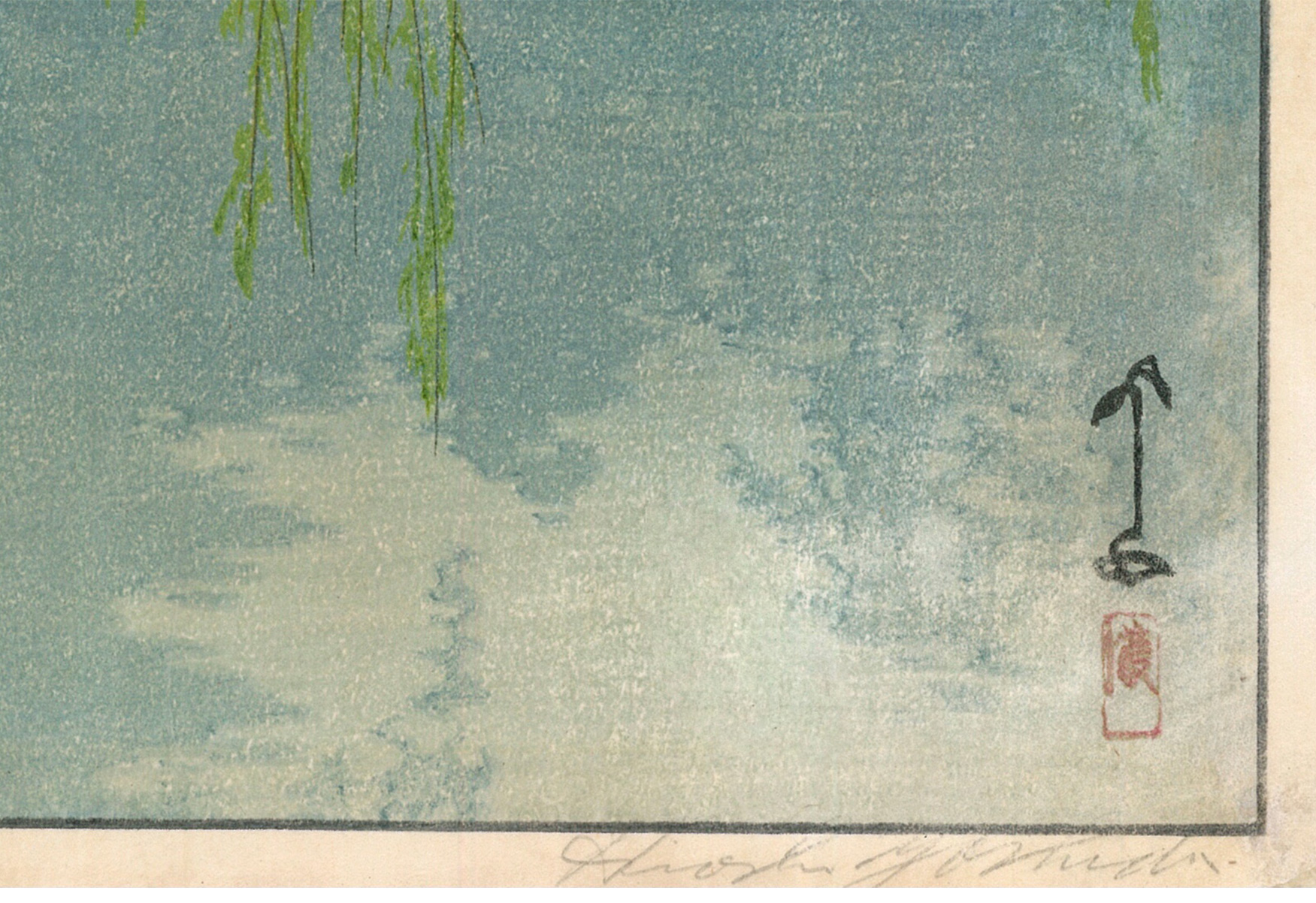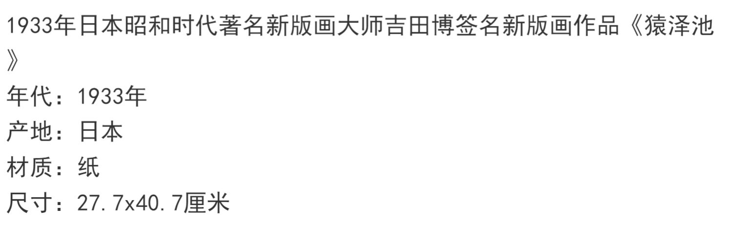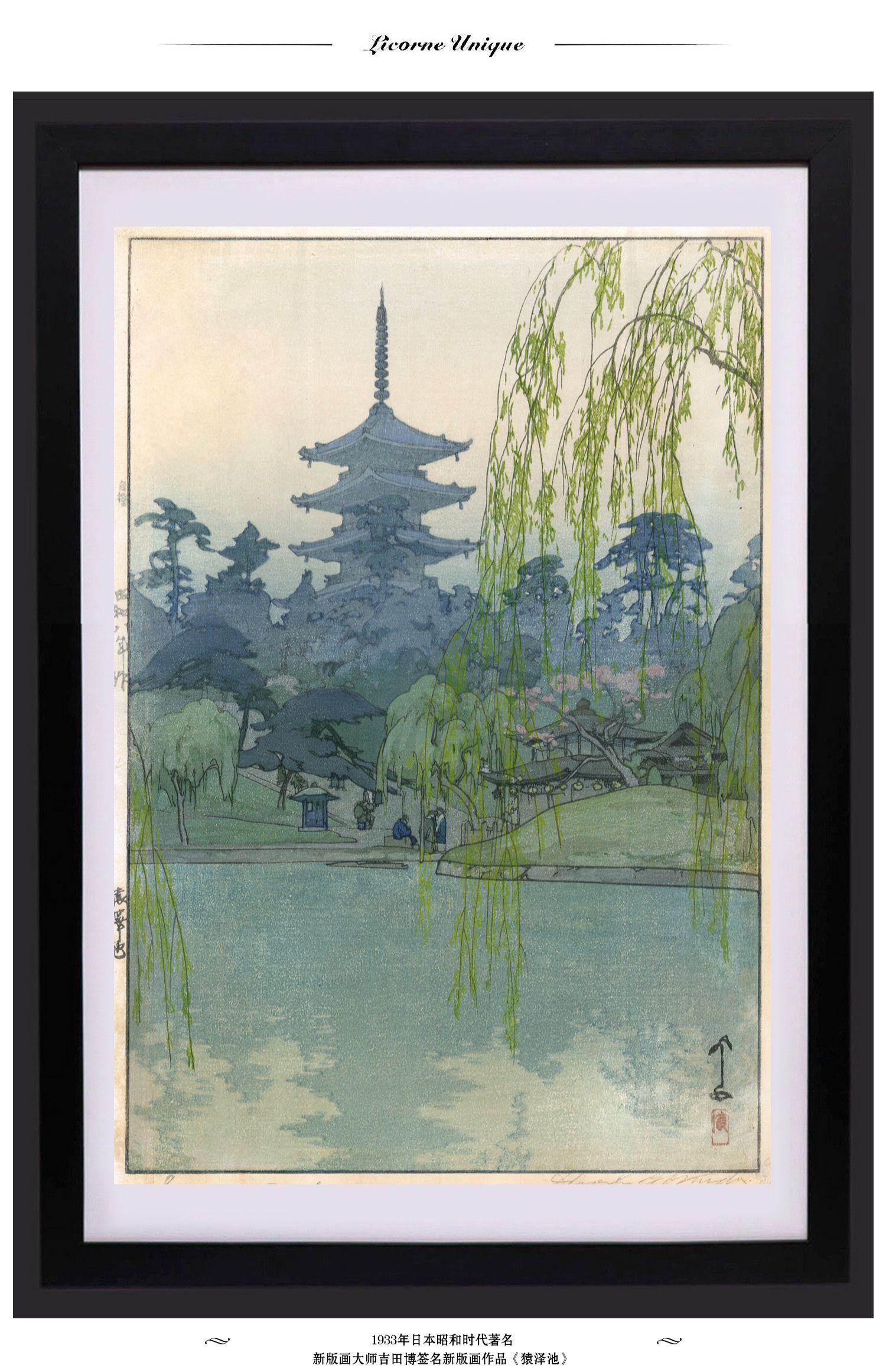独角鹿西洋古董日本昭和时代吉田博签名新版画《猿泽池》