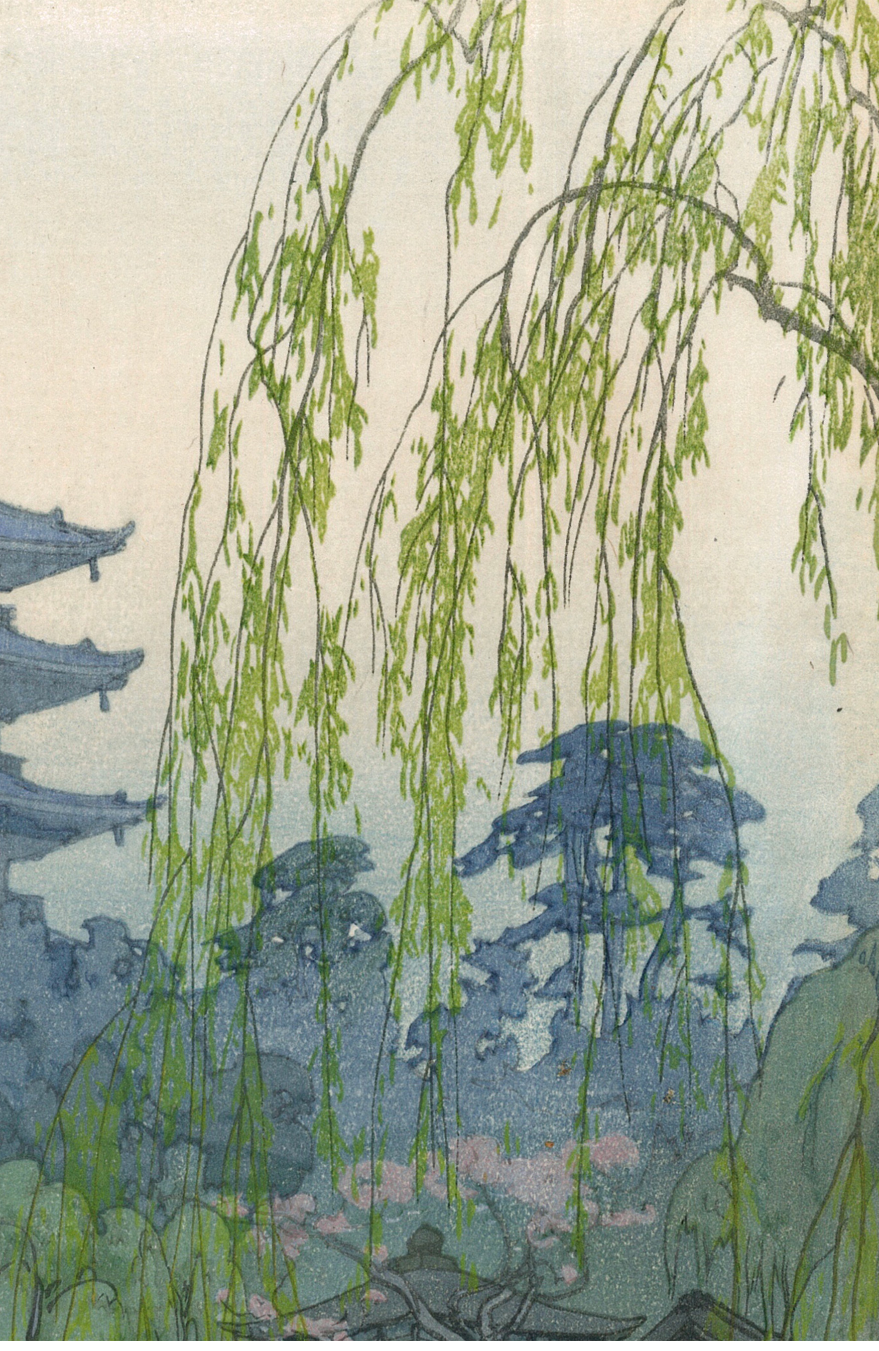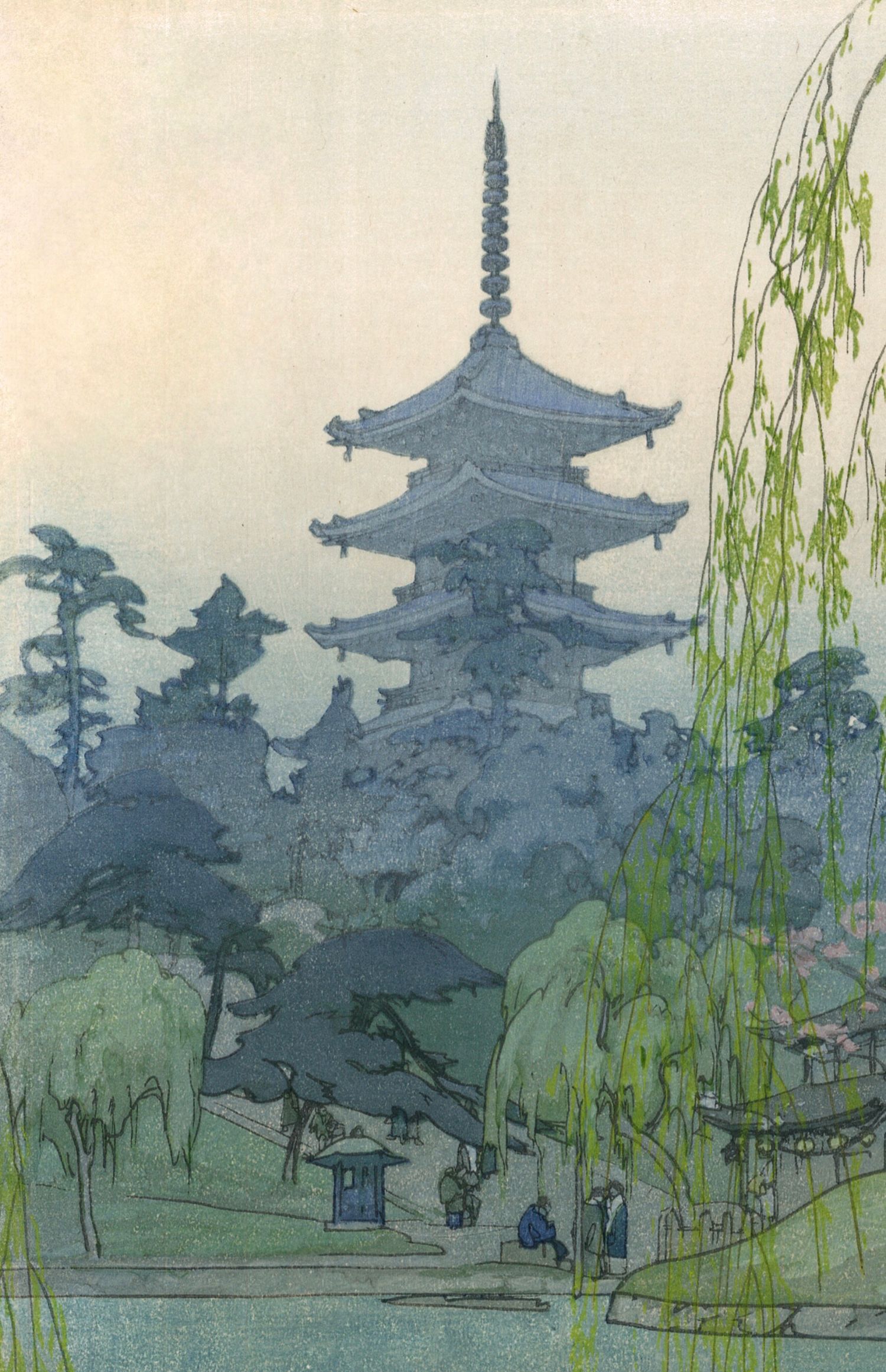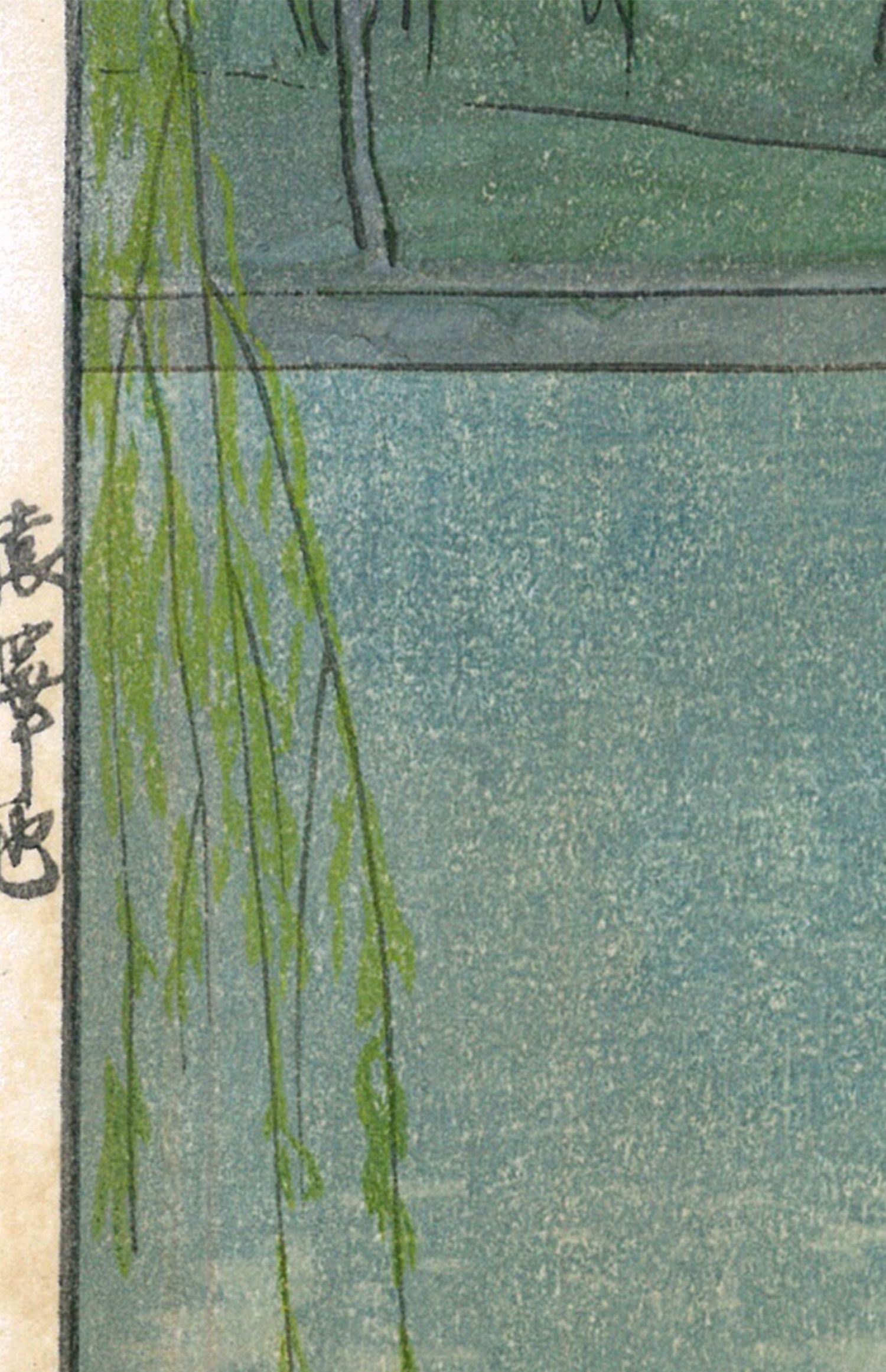 独角鹿西洋古董日本昭和时代吉田博签名新版画《猿泽池》