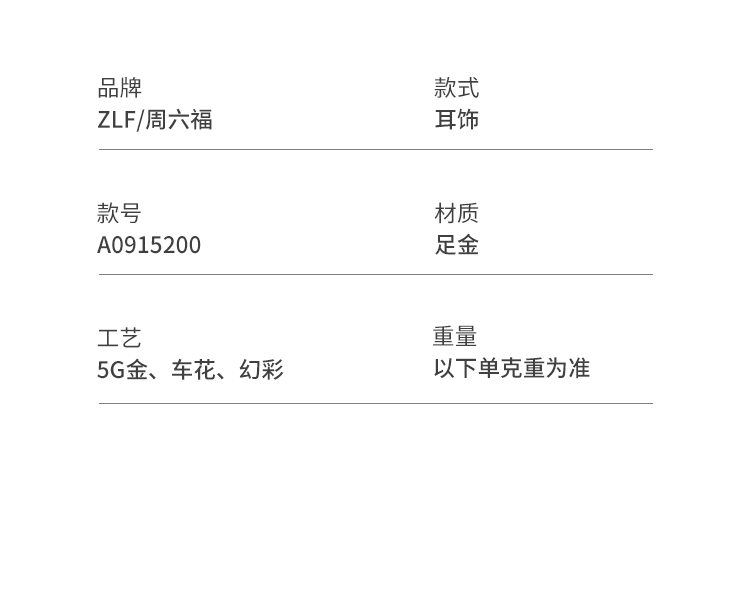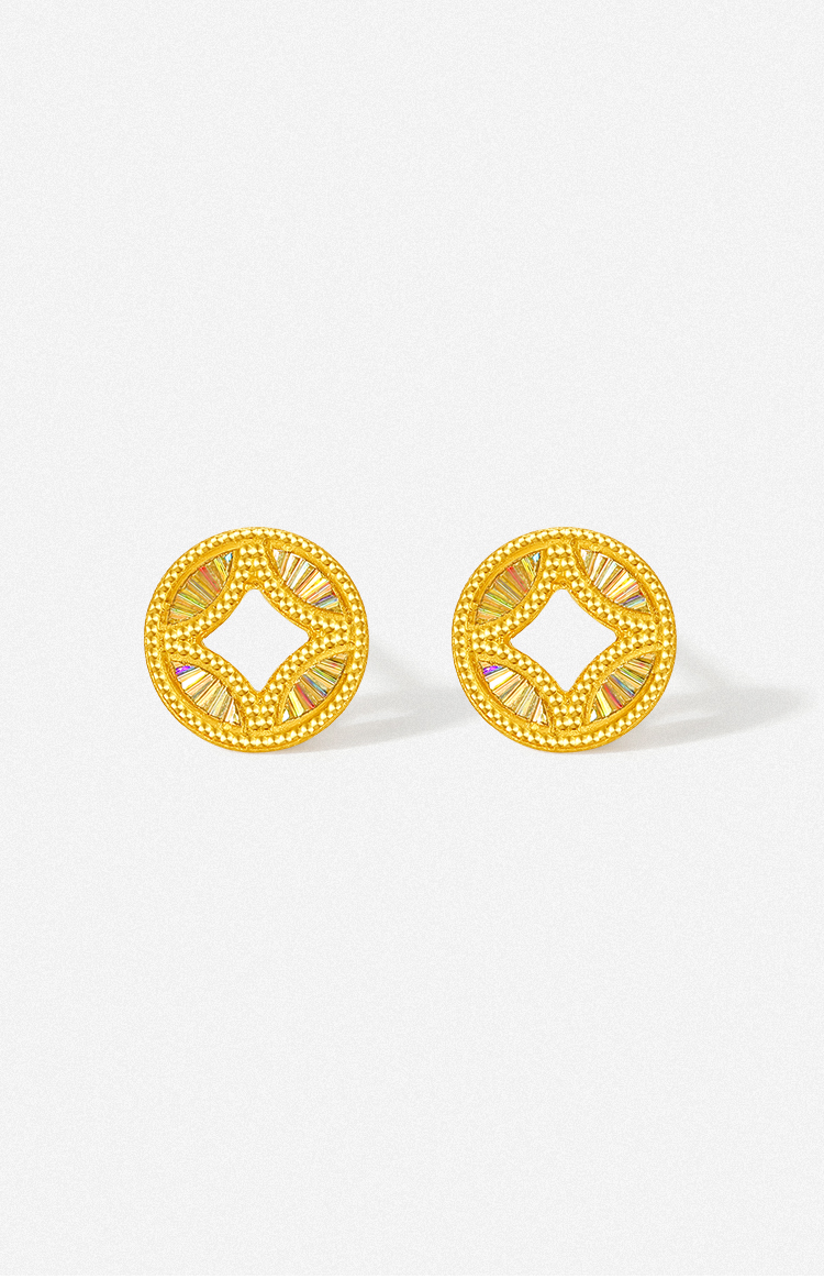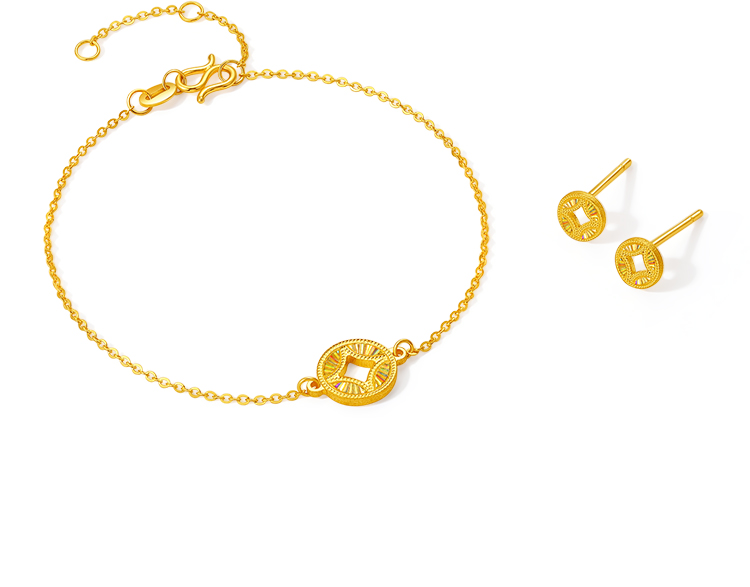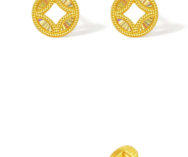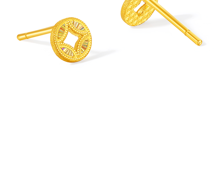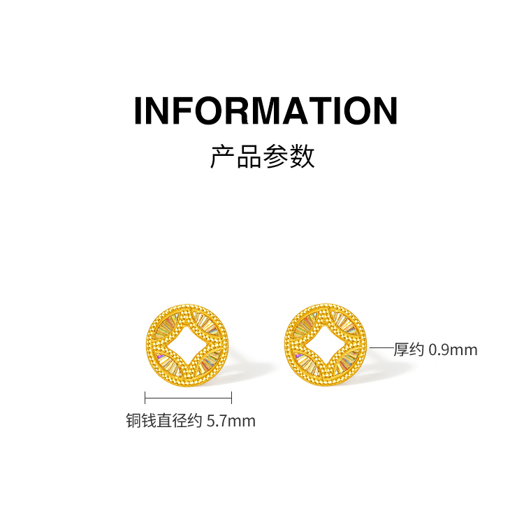 周六福5G足金黄金计价耳饰有钱必应爆闪炫彩碎碎铜钱耳钉节日礼物