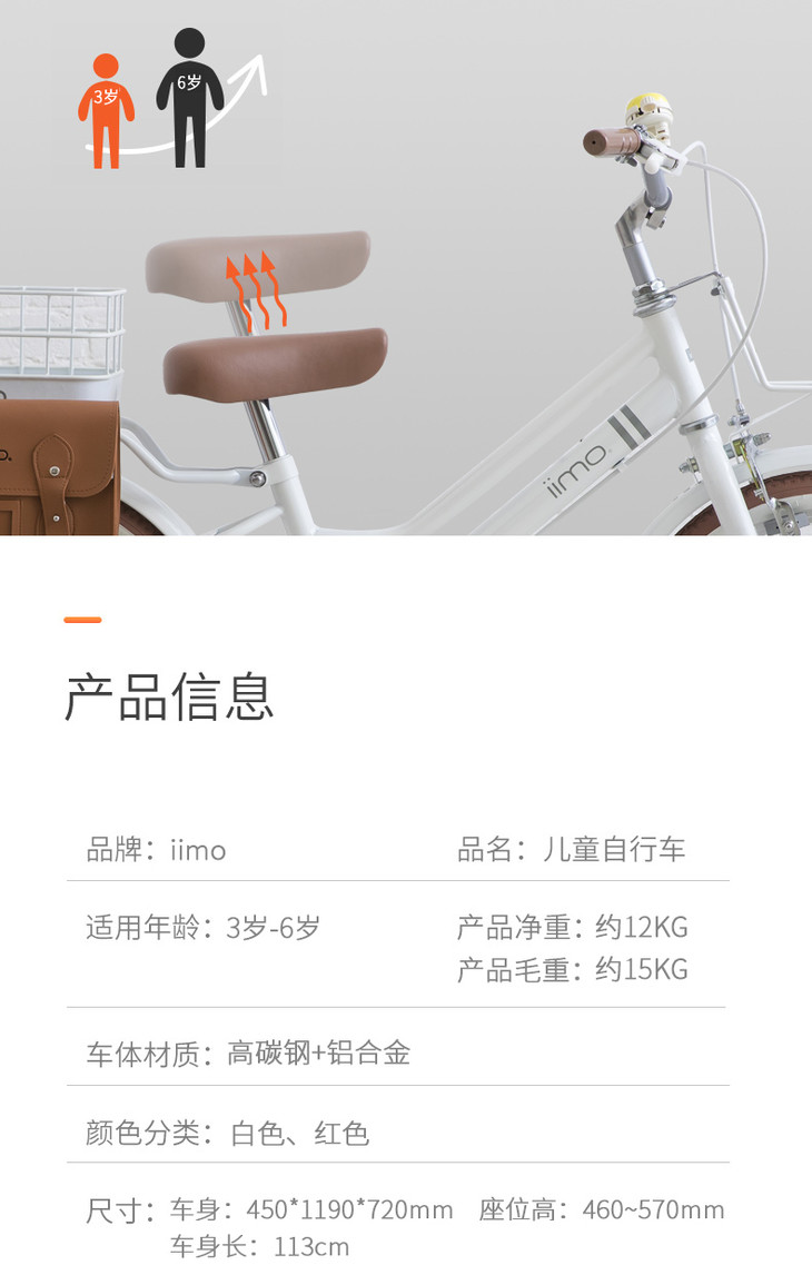 (超值)日本iimo儿童自行车三轮车脚踏车16寸,18寸