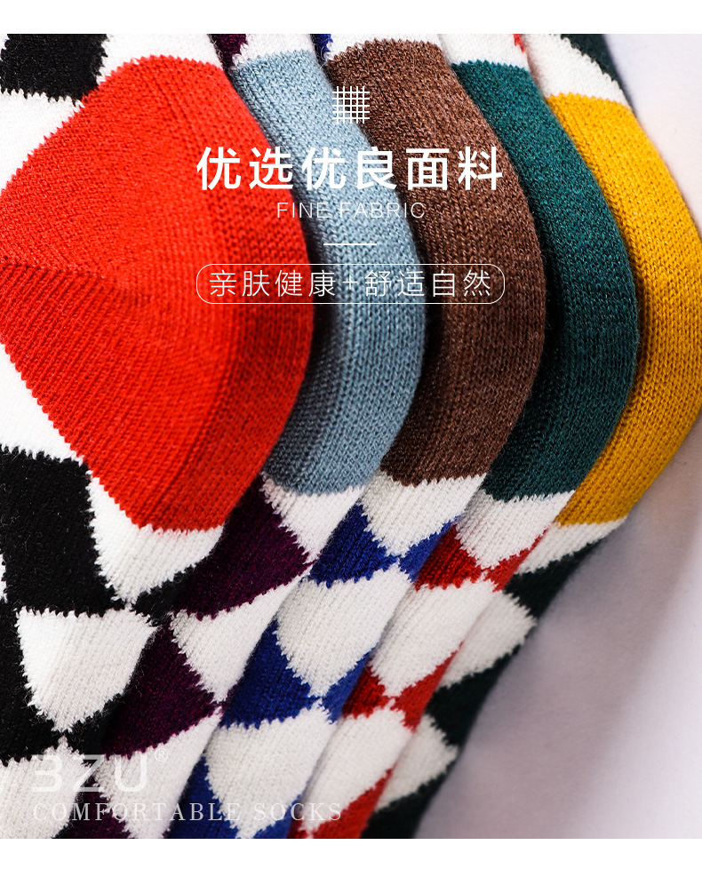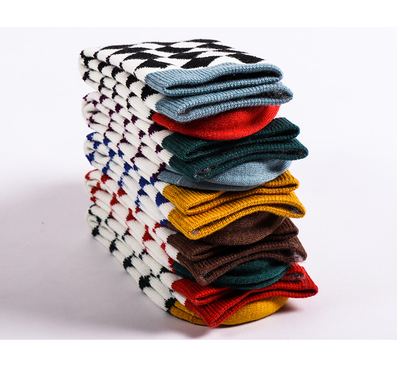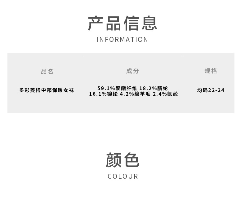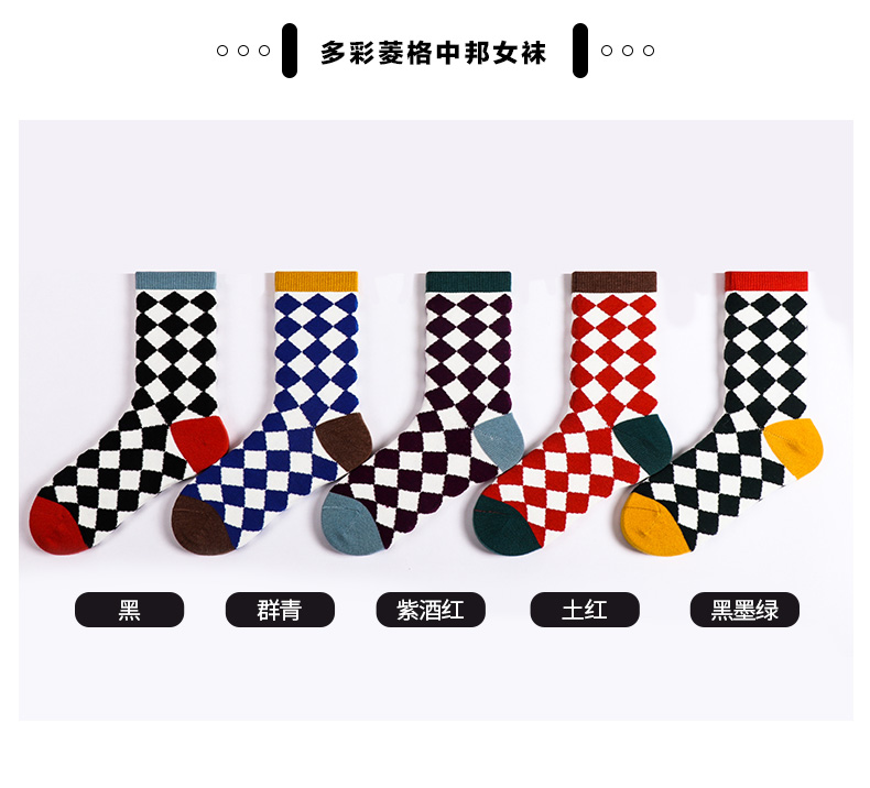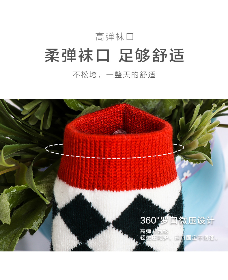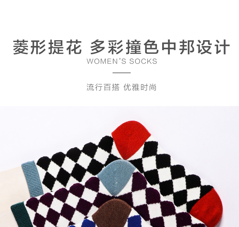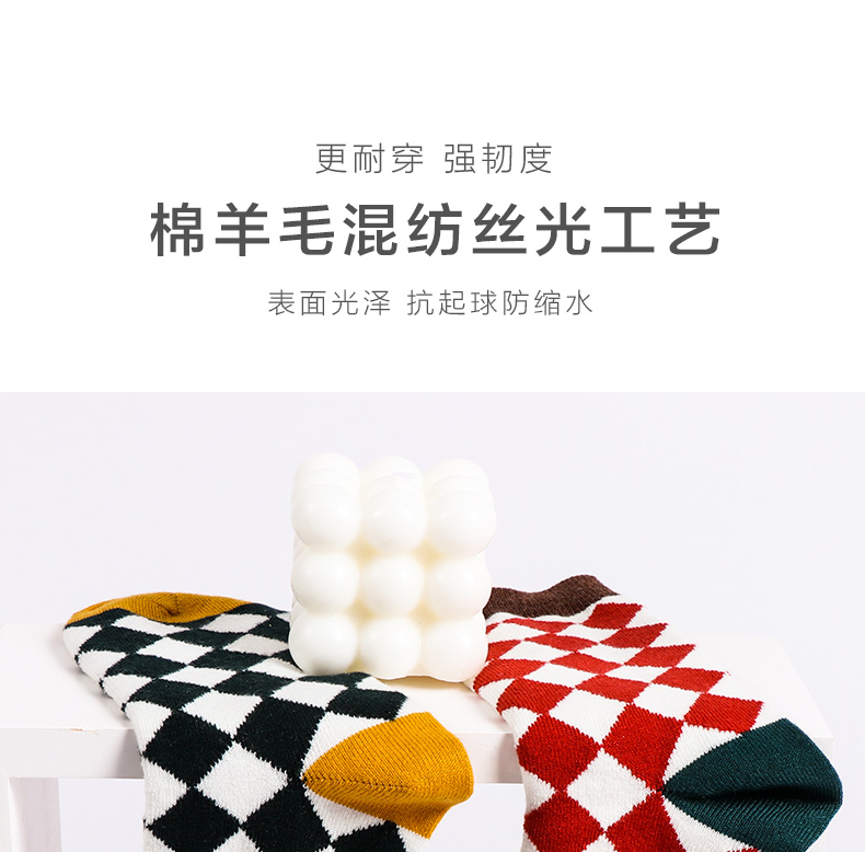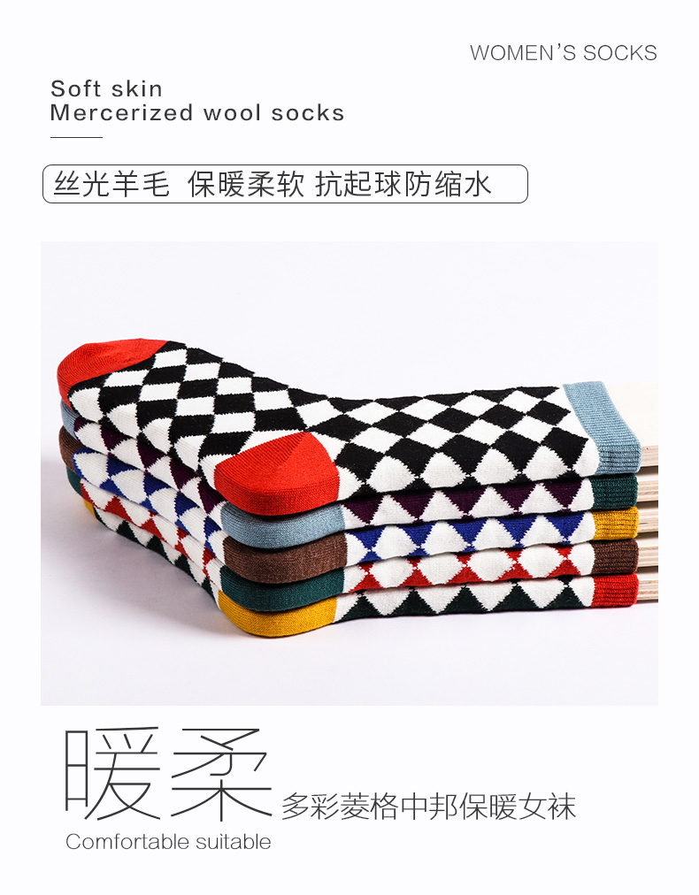 【任选6双99.5】足装秀秋冬女士春季中筒丝光羊毛保暖柔软多彩菱格中邦女袜