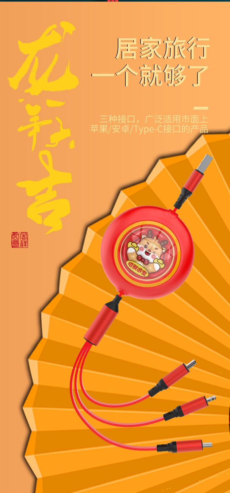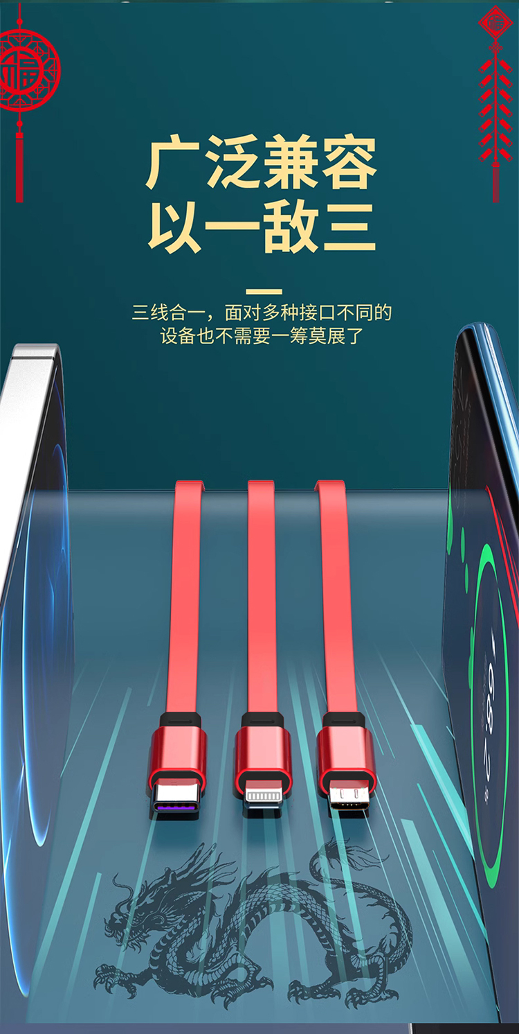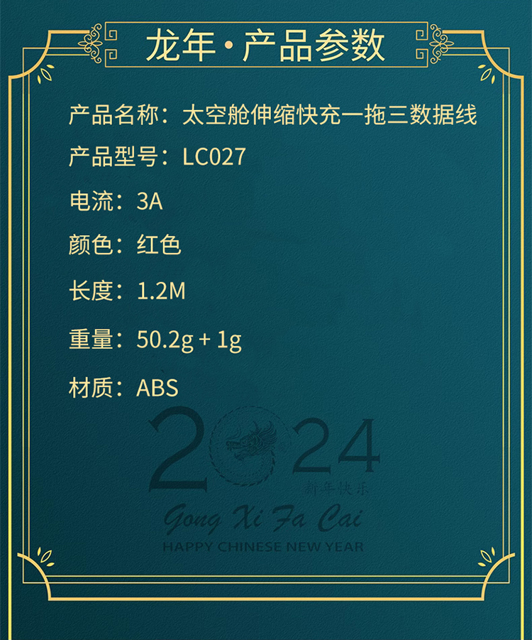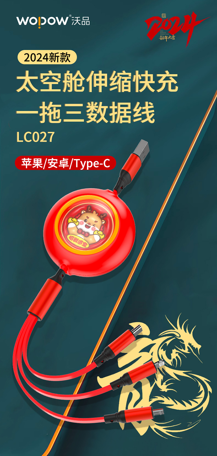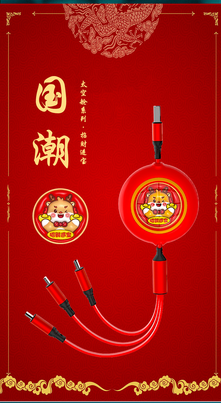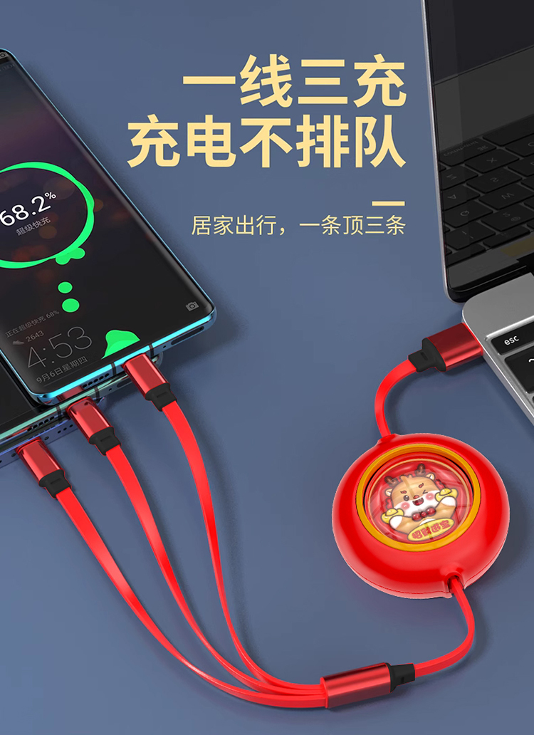 沃品太空舱伸缩快充 一拖三数据线 LC027
