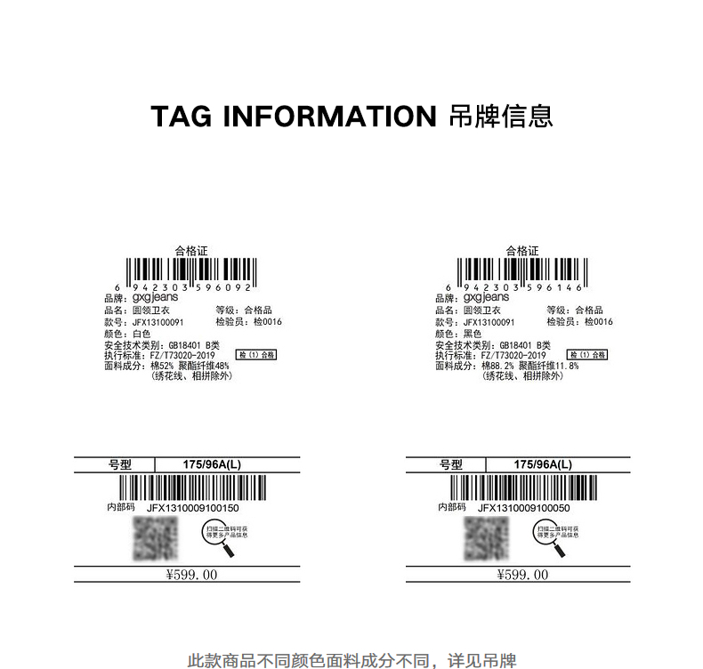 gxg.jeans男装2024年春季新款圆领卫衣JFX13100091