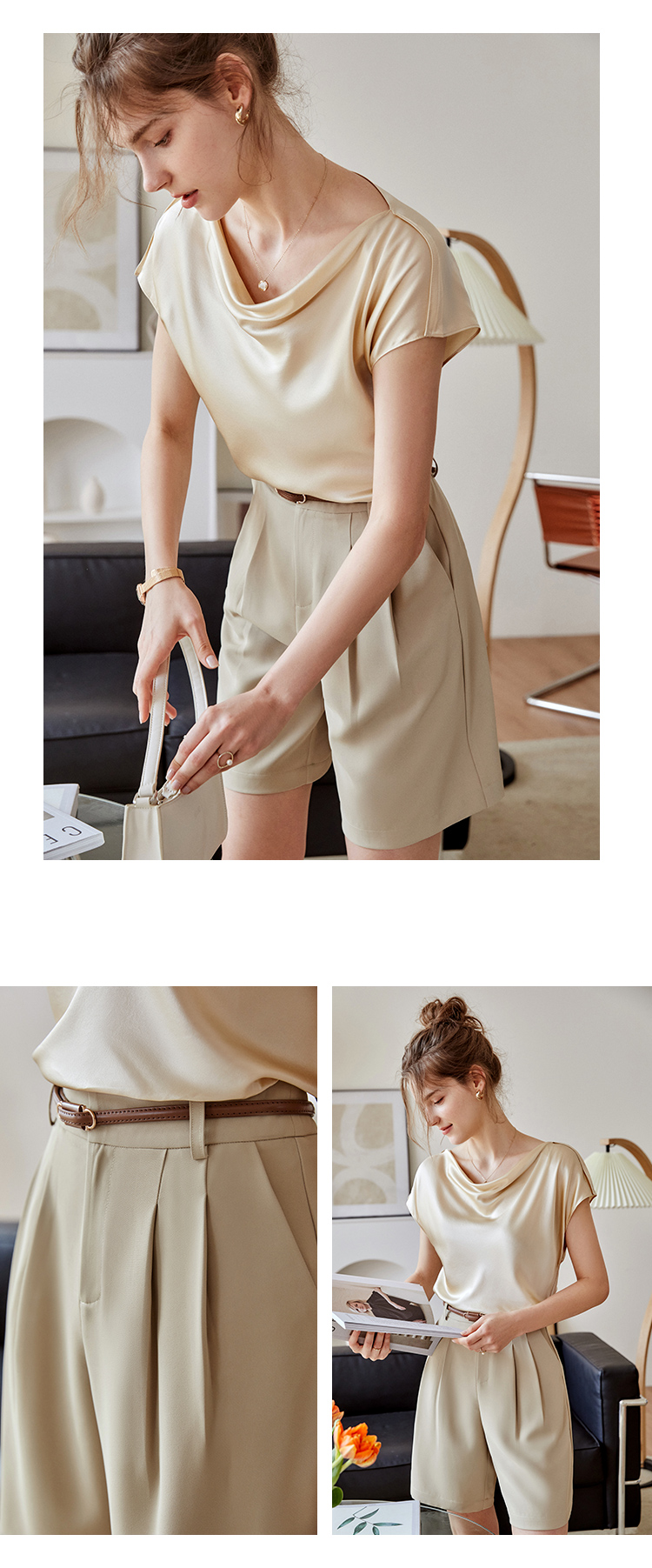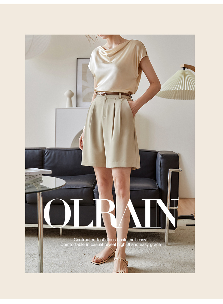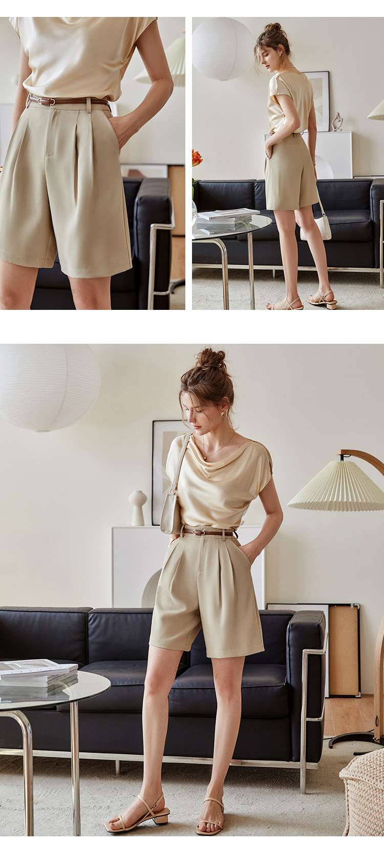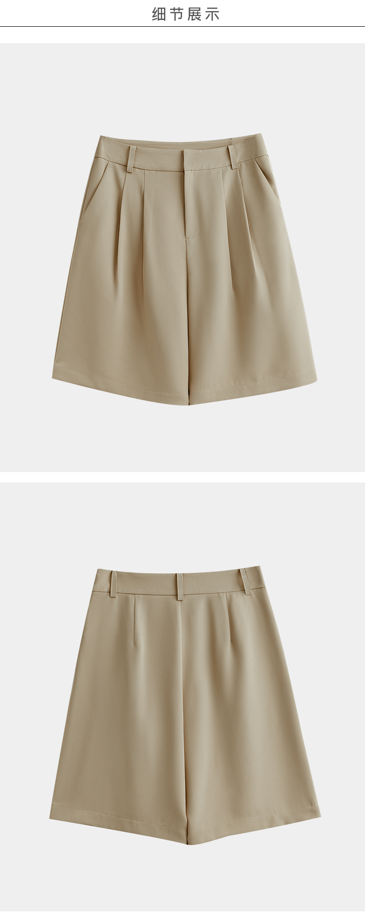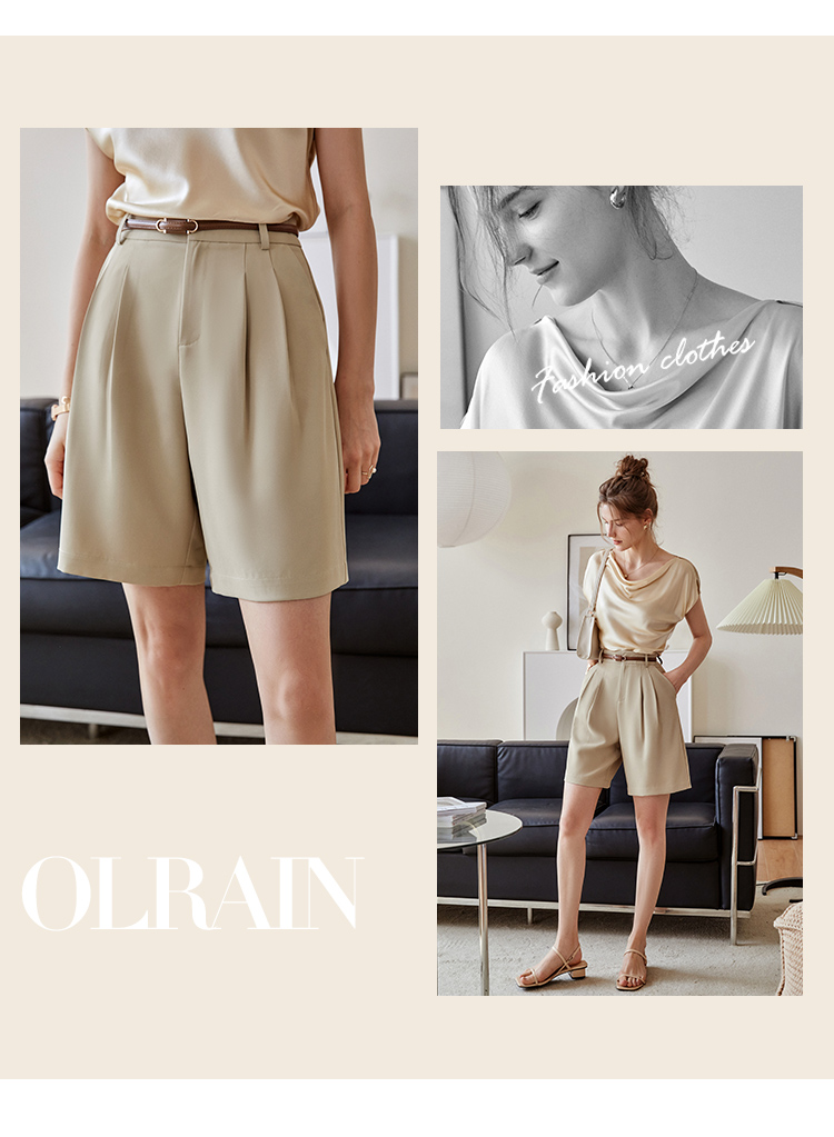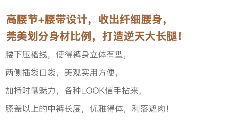 【M码专享】欧芮儿直筒宽松休闲裤女2021新款高腰腰带压褶廓形通勤短裤