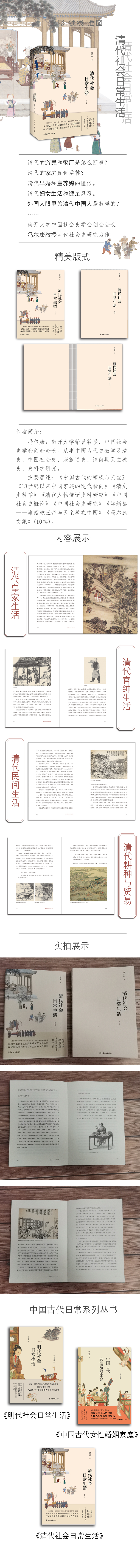 本书杂谈清朝时期人们生活中的某些现象。这些现象,涉及清朝制度、政策、观念、生产方式、社会经济与人们生活的关系、外国人如何看待中国人等,生活中表现出的历史人物的个性、命运,社会生活对历史演变的作用。