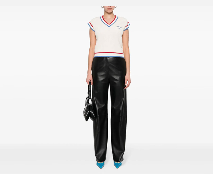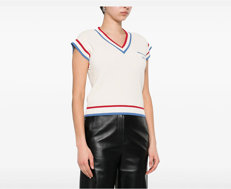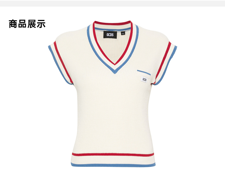 GCDS 女士贴花徽标人字形针织背心 米色 A1CW1400KB115