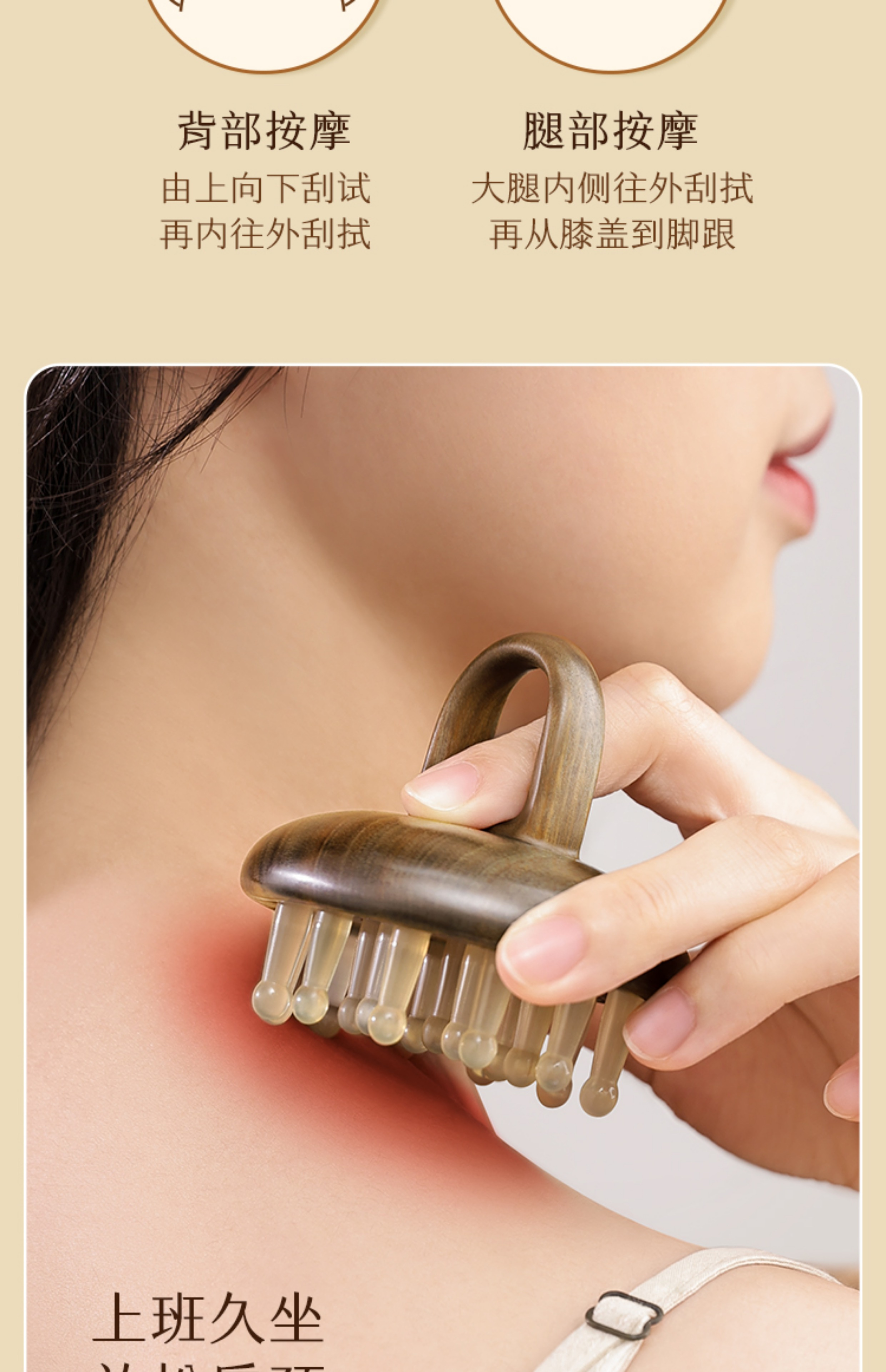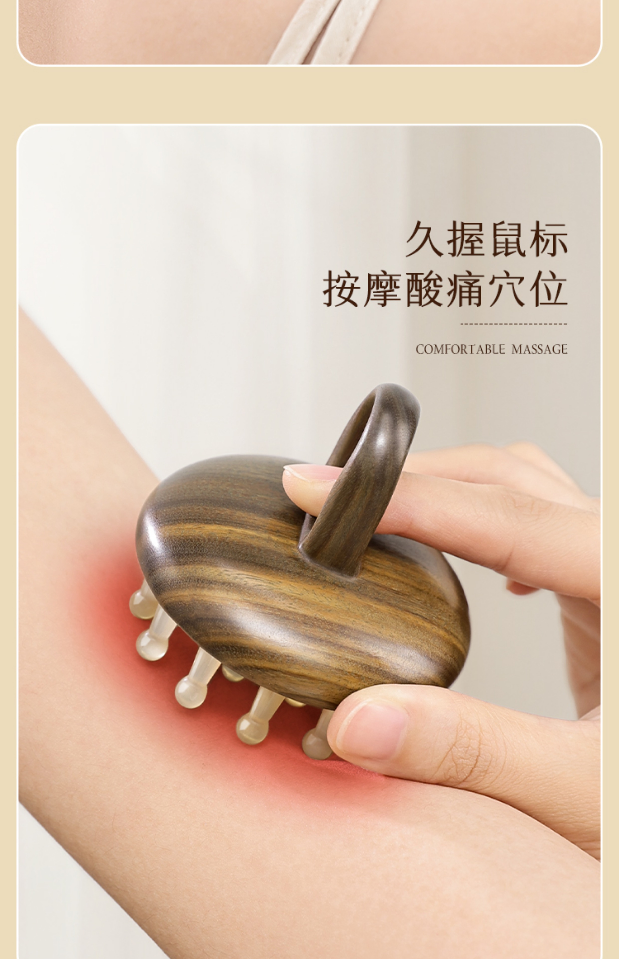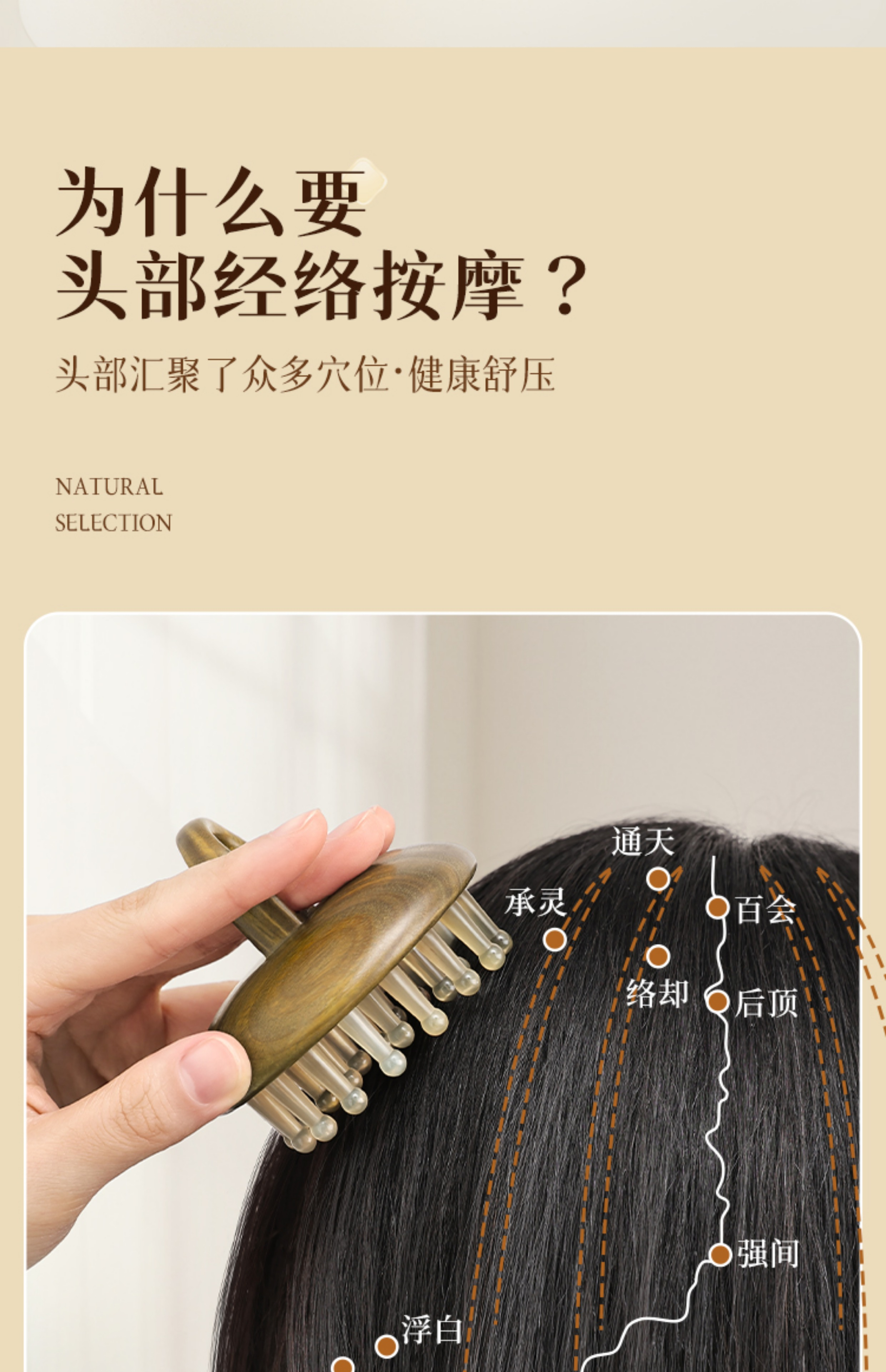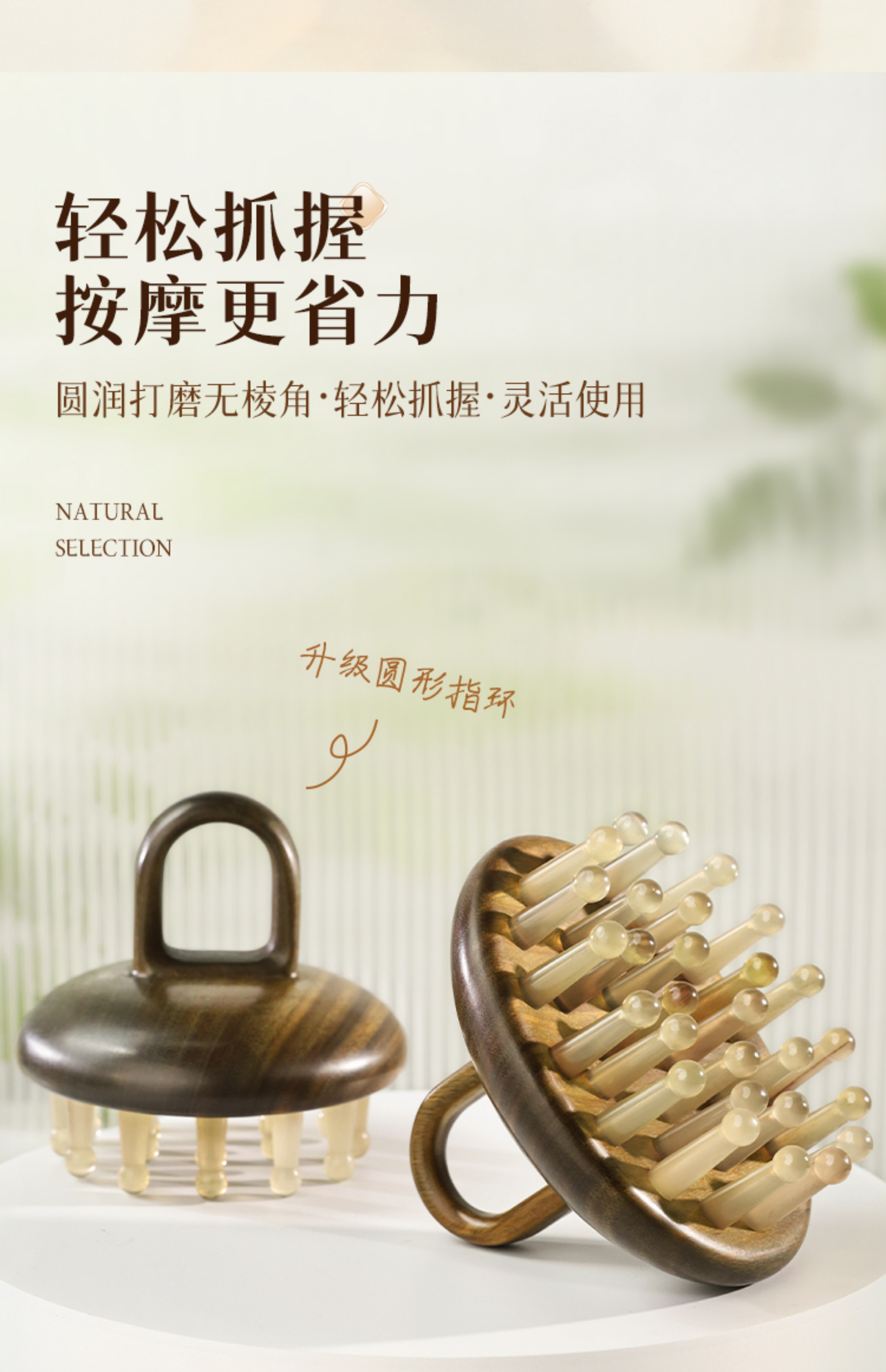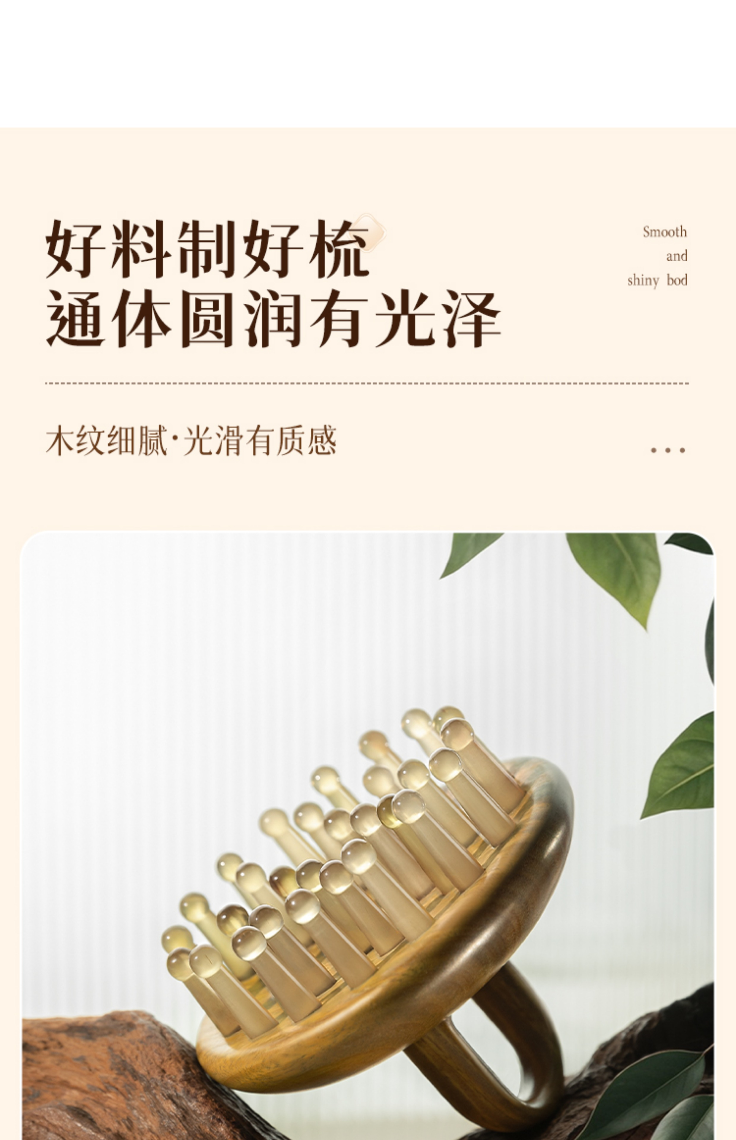 天然绿檀指环圆盘28齿按摩梳羊角头皮头疗养生全身疏通檀木经络梳