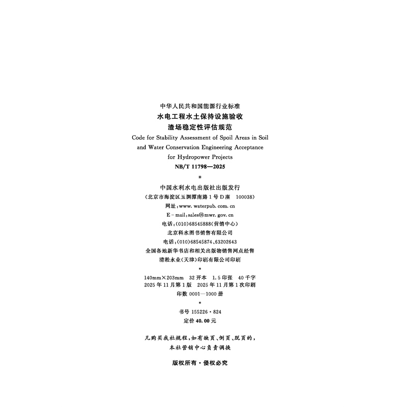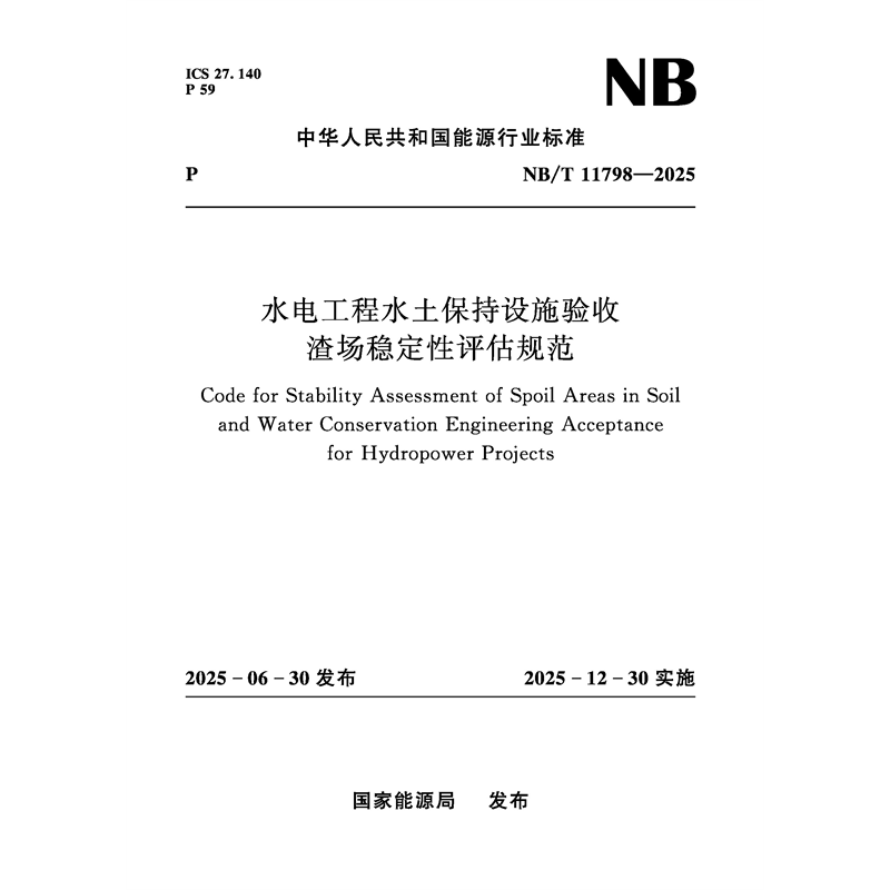 水电工程水土保持设施验收 渣场稳定性评估规范(NB/T 11798—2025)
