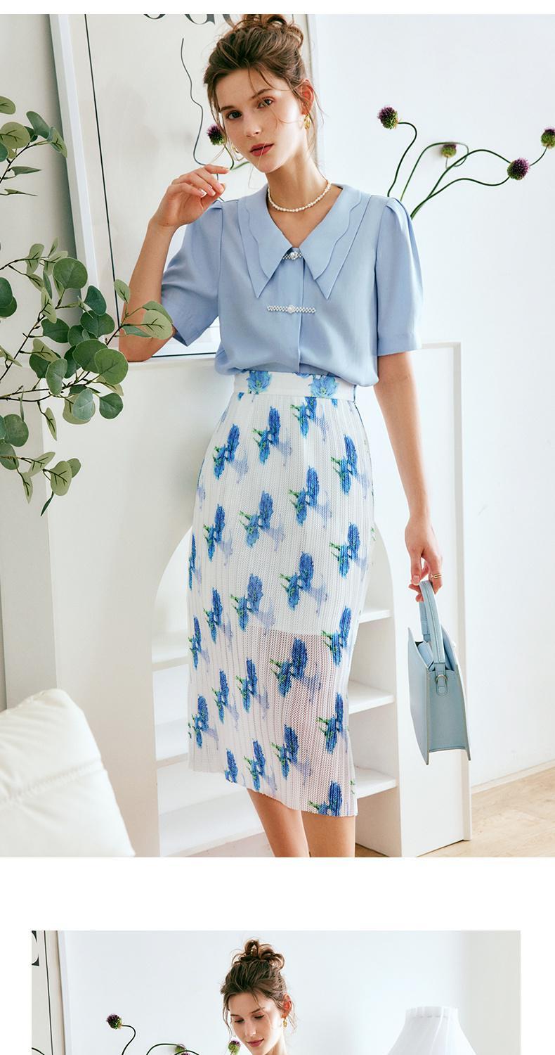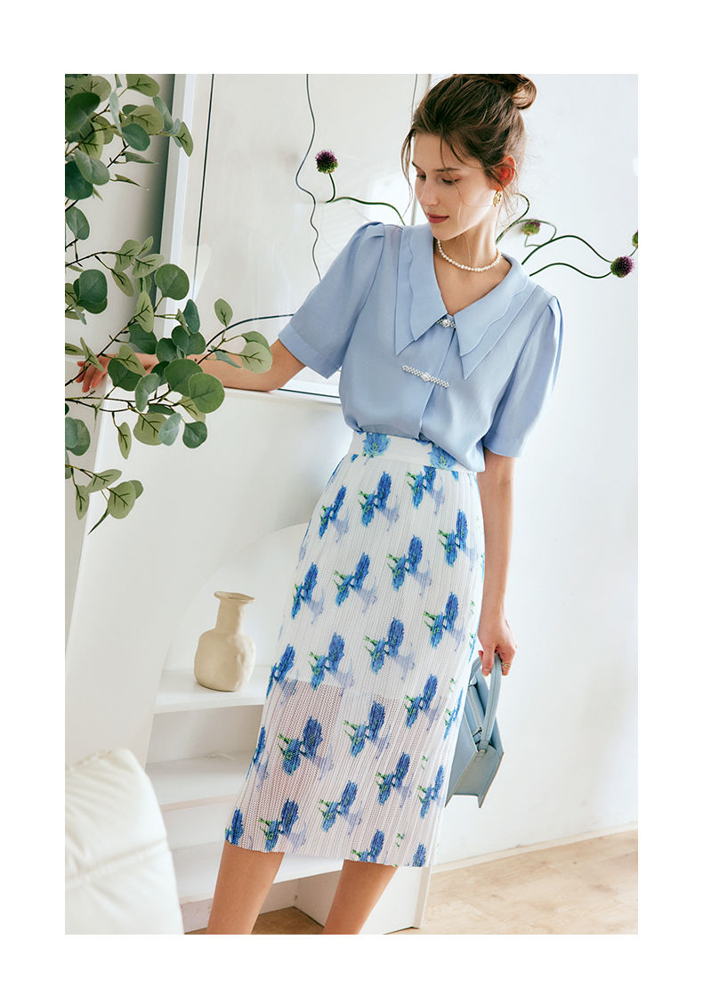 欧芮儿绿色时尚套装女2021夏新款碎花半身裙子法式洋气减龄两件套