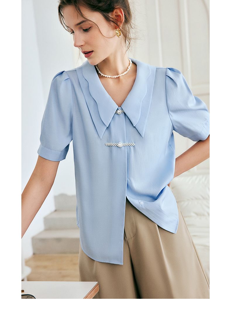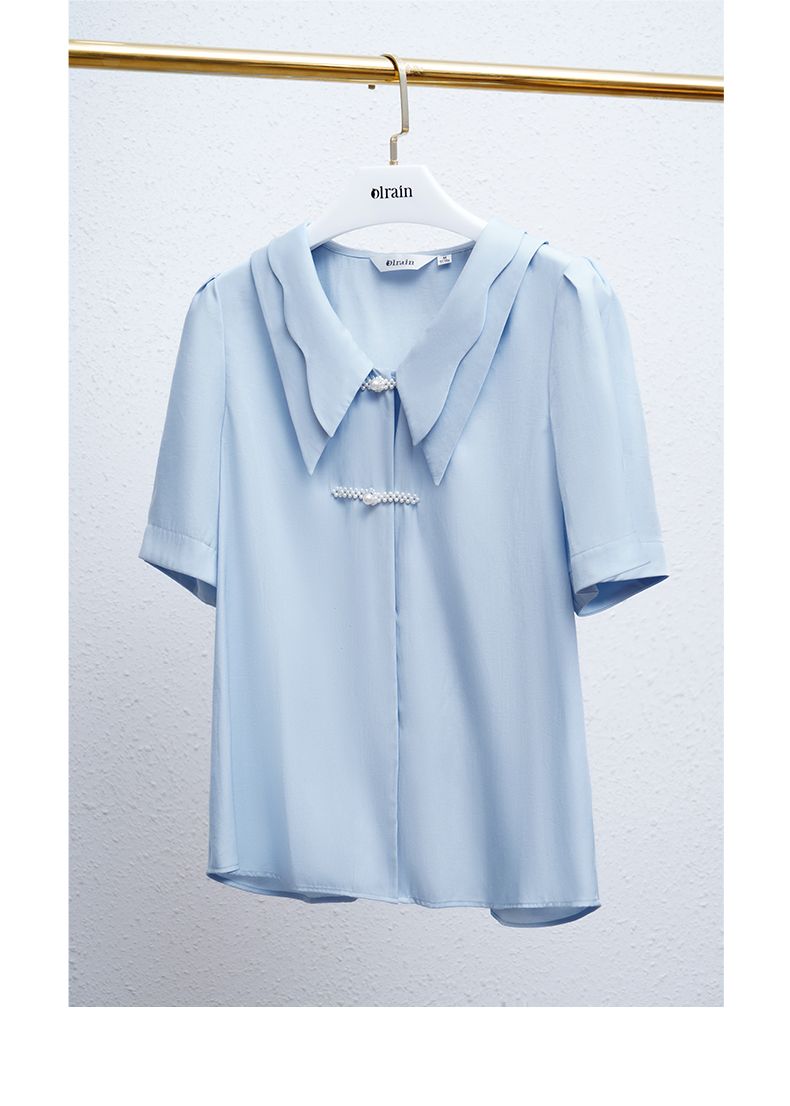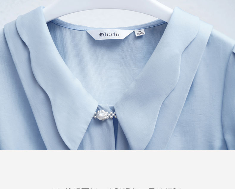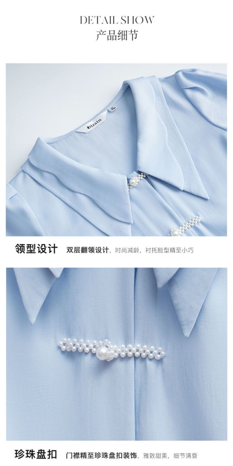 OLrain法式高级穿搭翻领衬衫女夏季2022年新款时尚宽松泡泡袖衬衣
