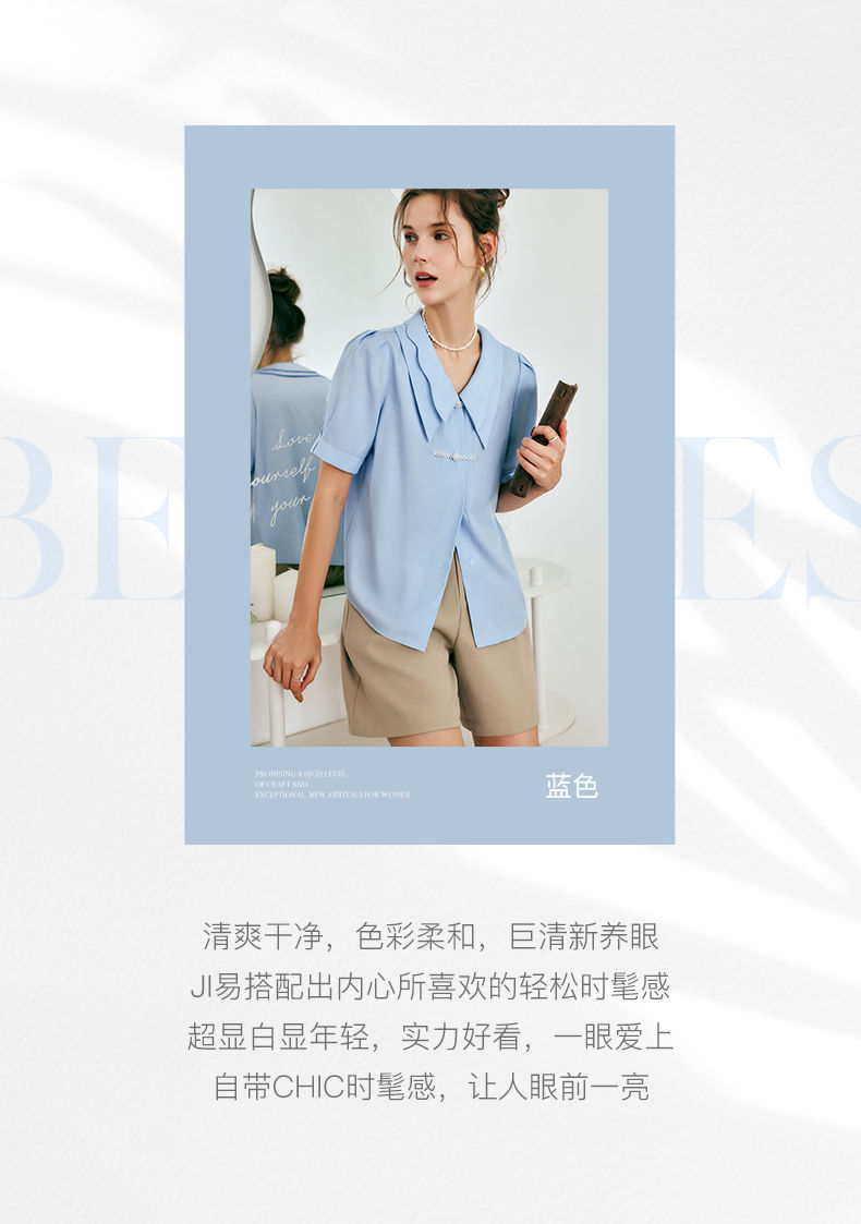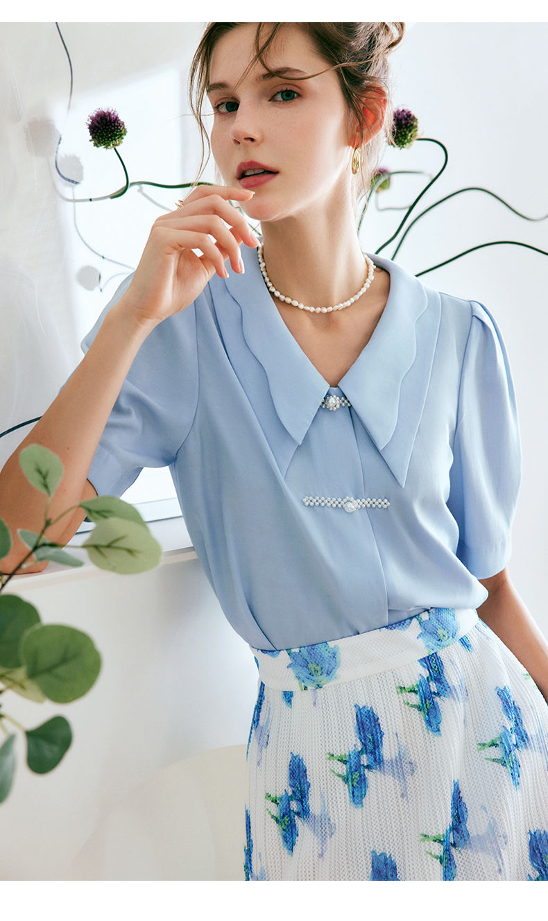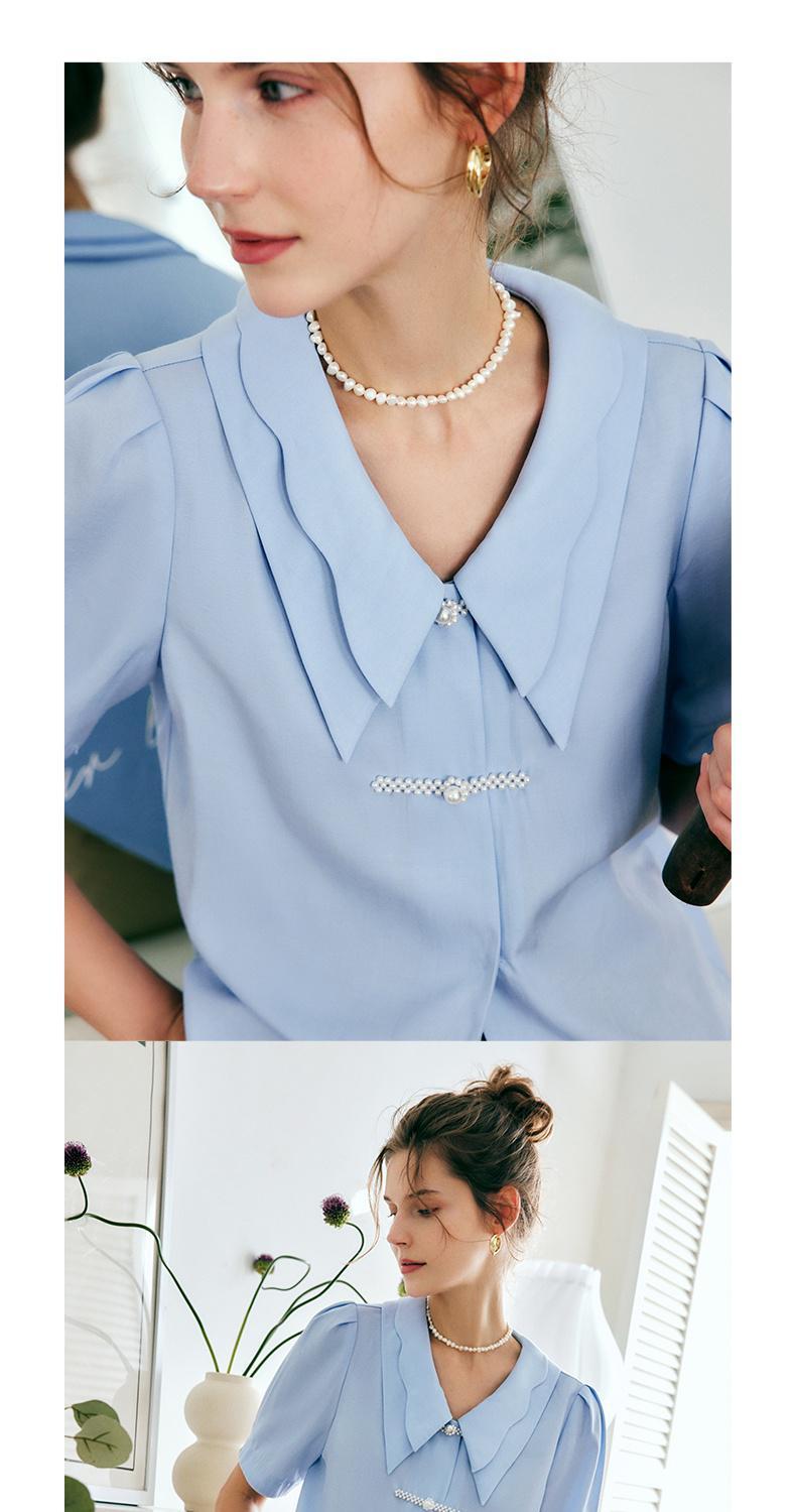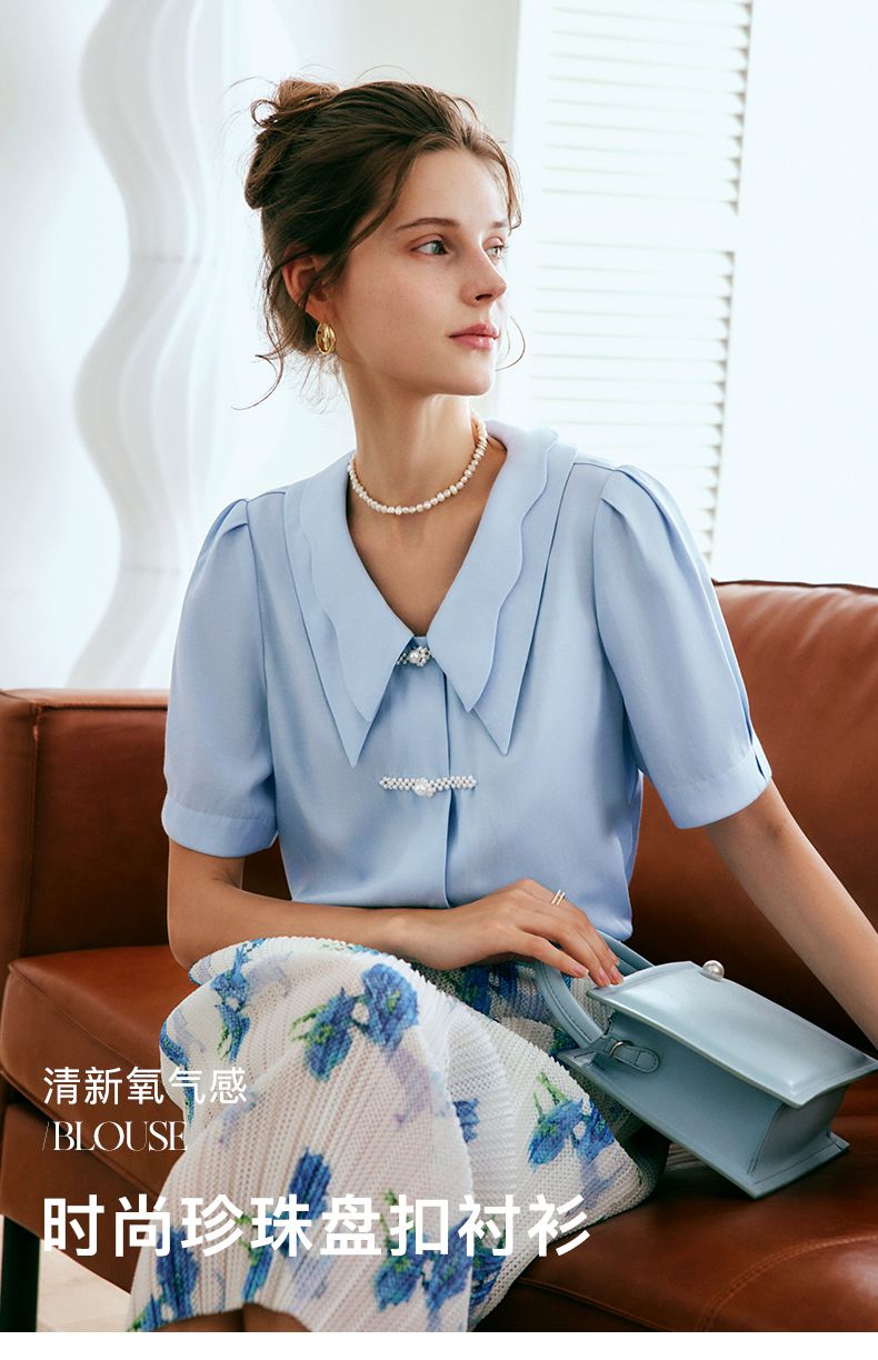 OLrain法式高级穿搭翻领衬衫女夏季2022年新款时尚宽松泡泡袖衬衣