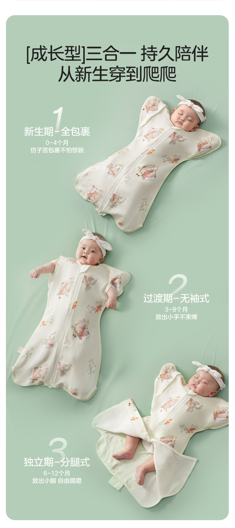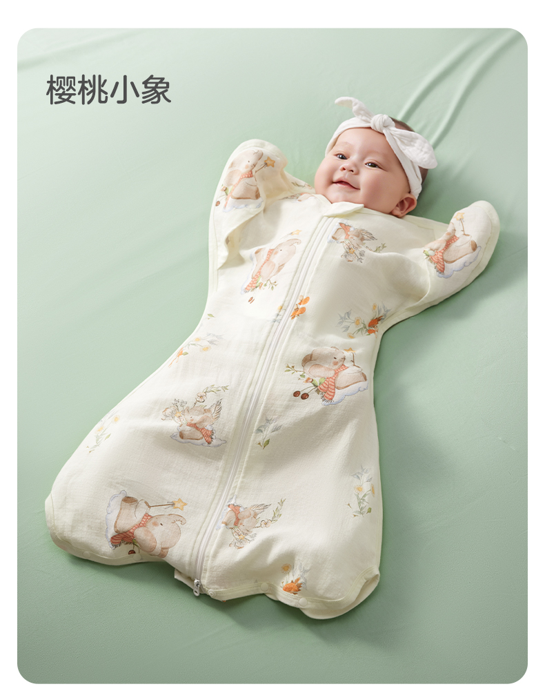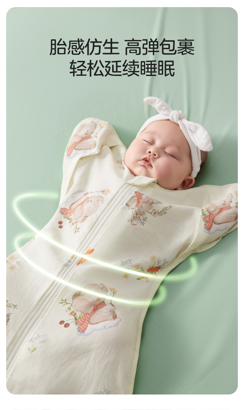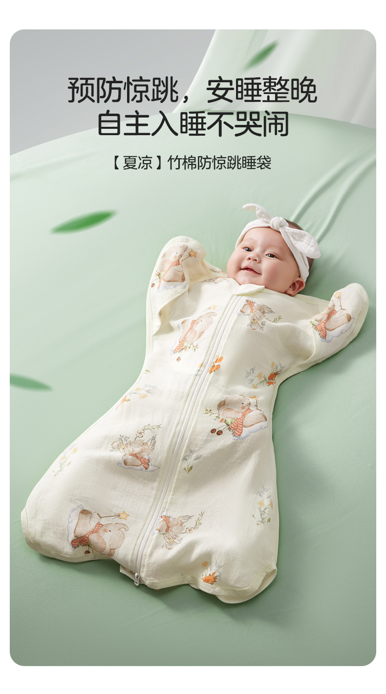 婴儿防惊跳睡袋新生儿投降式竹棉小月龄襁褓神器透气夏季