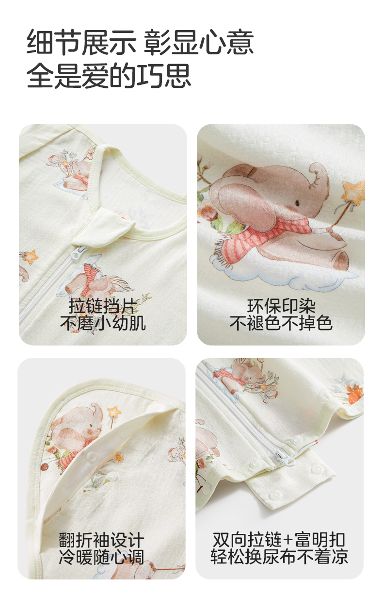 粒粒阳光宝宝睡衣连体衣夏季婴儿凉感连体衣防蚊一体睡衣